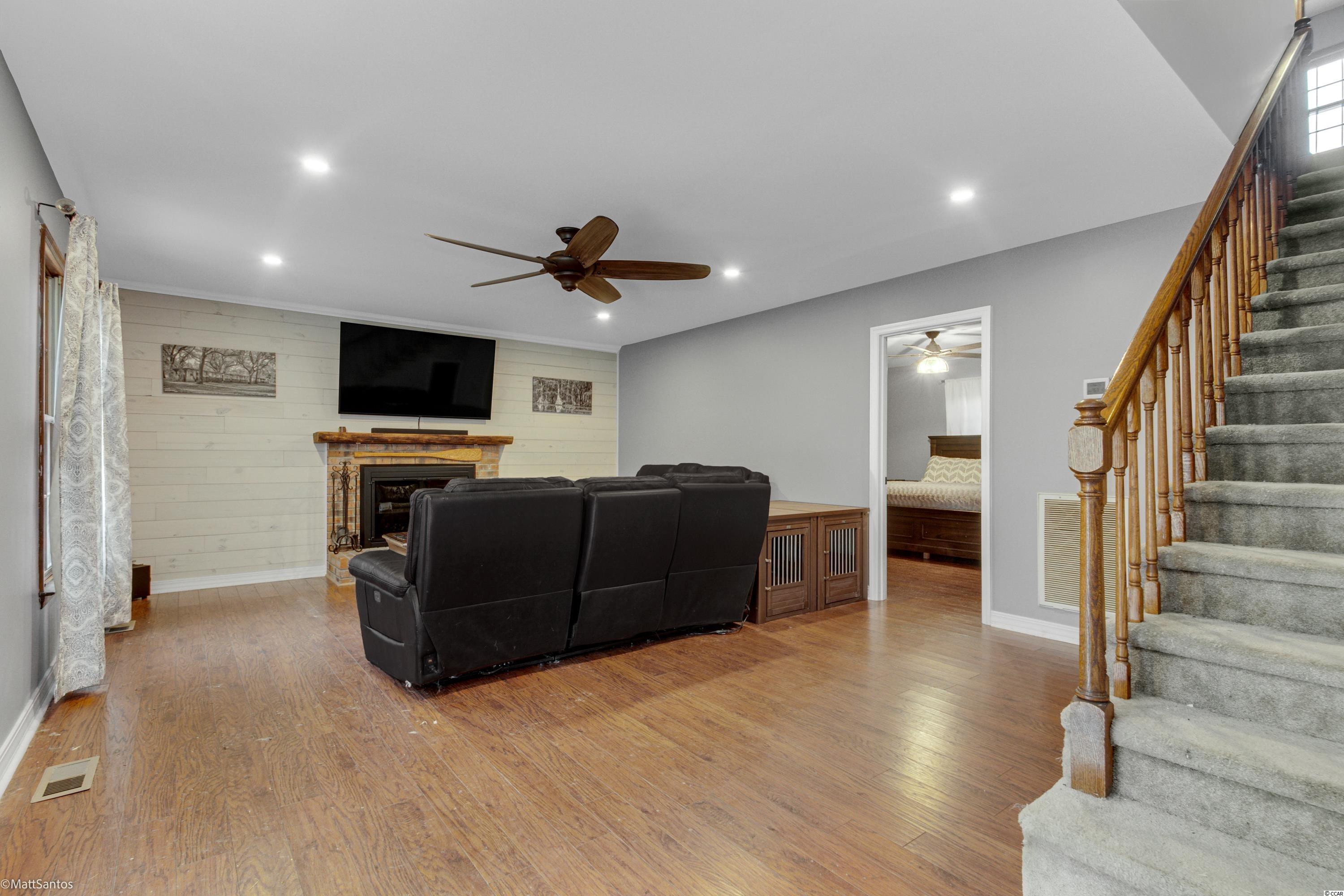 Welcome to 124 Wicklow Way! This 3 bedroom home with a FULLY HEATED and COOLED garage is located at the end of a cul-de-sac on a sizeable lot in the highly desired and coveted Hagley Estates neighborhood, this one is sure to have you smitten with excitement. Standout features of this home include a warm yet sleek living room design accented by recessed lighting. The Livingroom features a fireplace; hallmarked by a fully ship lapped wall. In the kitchen area you will find matching and new stainless steel appliances as well as a sizeable eat in kitchen. Additionally enjoy, knowing that your master bedroom is on the first level. Upstairs you will find 2 additional bedrooms that are incredible sizes, along with a recently updated bathroom. On the exterior of the home feel free to pick your favorite of the 3 porches, all which make for excellent relaxation. Making your way over to the garage area...you will have a RARE FIND ALERT! This oversized garage is fully heated and cooled with a brand new HVAC system. This garage space is perfect for any hobbyist, DIY'er, or anyone looking to store their belongings in a temperature controlled environment. In the yard you will have plenty of room to roam, with ample parking for whatever your heart desires. The yard also includes a large firepit for those perfect bonfire evenings.