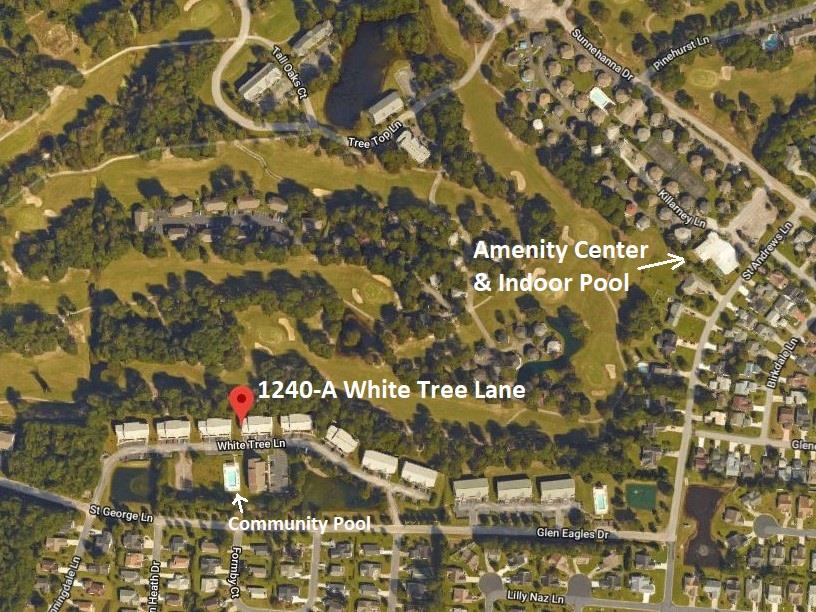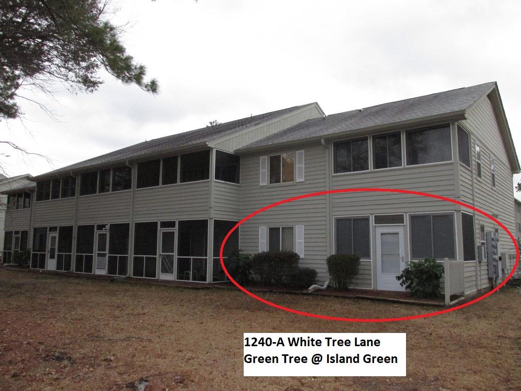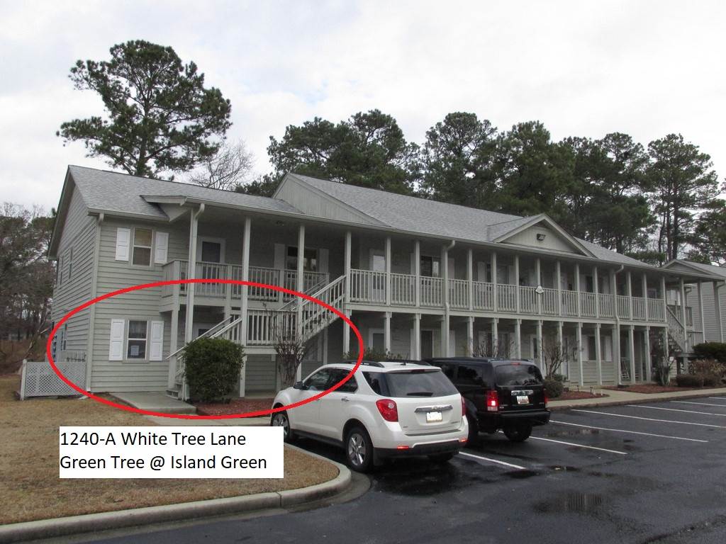 From SC Hwy 707 turn west onto Bay Road at the Traffic Light. Turn left onto Freewoods Road. Turn Right onto Sunnehanna Drive to enter Island Green. Turn left onto St Andrews Lane. Turn right onto St. George Lane. Turn right onto White Tree Lane. Building on right-hand side of the Parking Lot. 1240-A White Tree Lane in the Green Tree Section of Island Green South. Bottom floor, end unit on the left side of the building. GPS 33.639968, -79.059973Courtesy of Re/max Southern Shores Gc - Cell: 843-450-8760
