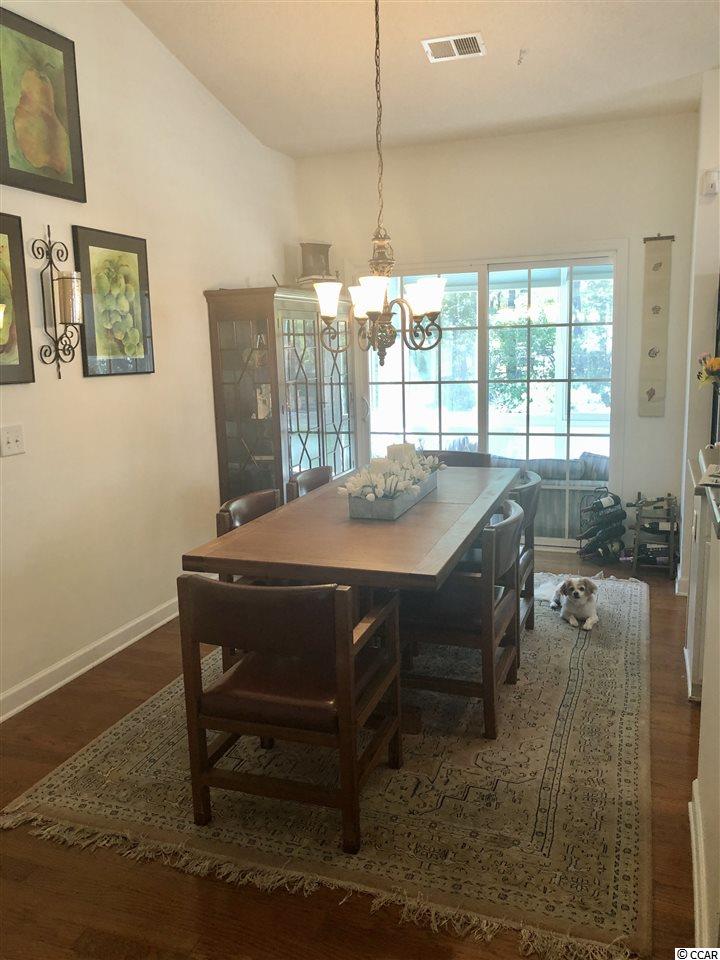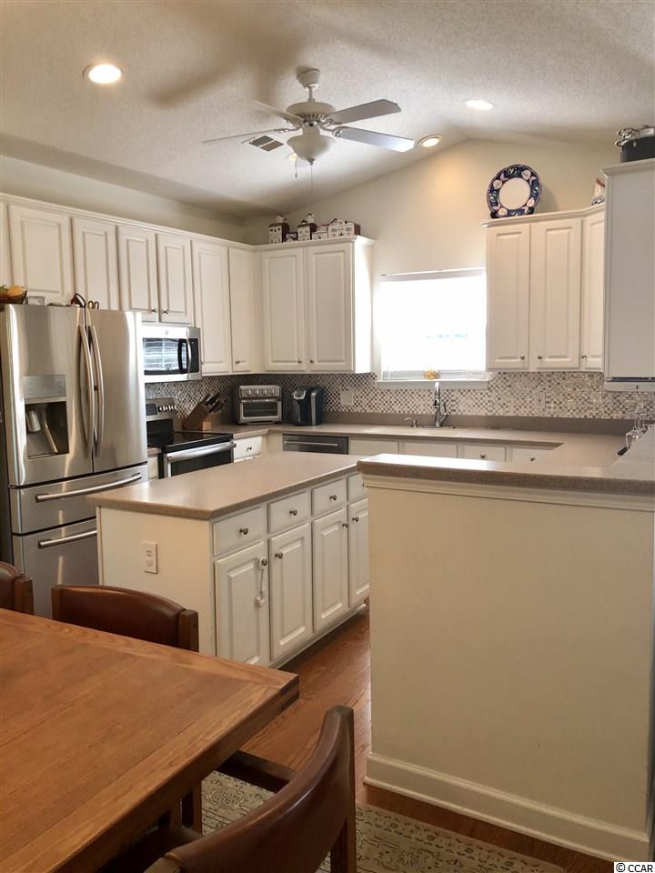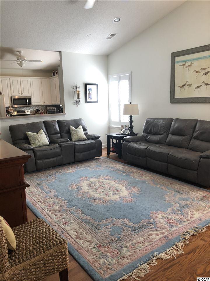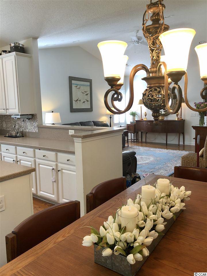 Welcome to Pawleys Islands Kings Creek community. A 3 bed / 2 bath paired-ranch home with a beautiful lakeside view. From here, youll be a short bike or car ride to Pawleys Islands historic beaches, golf courses, fine dining and attractions. As you enter the home, youll notice a bedroom to your right that can also be used as a home office. The foyer leads into a spacious living room with hardwood flooring and an open-concept kitchen with recently upgraded stainless appliances, modern white cabinetry and hard surfaced counter tops. The kitchen also has a large pantry and a laundry area. If you like to cook and entertain, theres plenty of room to prepare food and serve company from the kitchens center island or host formal dinners in the large dining area. From the kitchen, move out to the heated and cooled Carolina Room for wonderful views of the back yard and lake. Theres also a paved patio area out back thats great for relaxing in a rocking chair or for outdoor grilling or gardening. Owners are sure to enjoy their spacious master bedroom with vaulted ceilings and views to the back yard and lake. The recently updated master bathroom features new flooring, a double-sink vanity and a beautiful tiled shower with glass slider doors. The other guest bedroom is also well-appointed with a full bathroom. The home also has a 2-car garage that has plenty of space for automobiles and beach equipment. If your goal is to find an extremely well-maintained home close to the beach and golf courses, then this is one you dont want to miss.