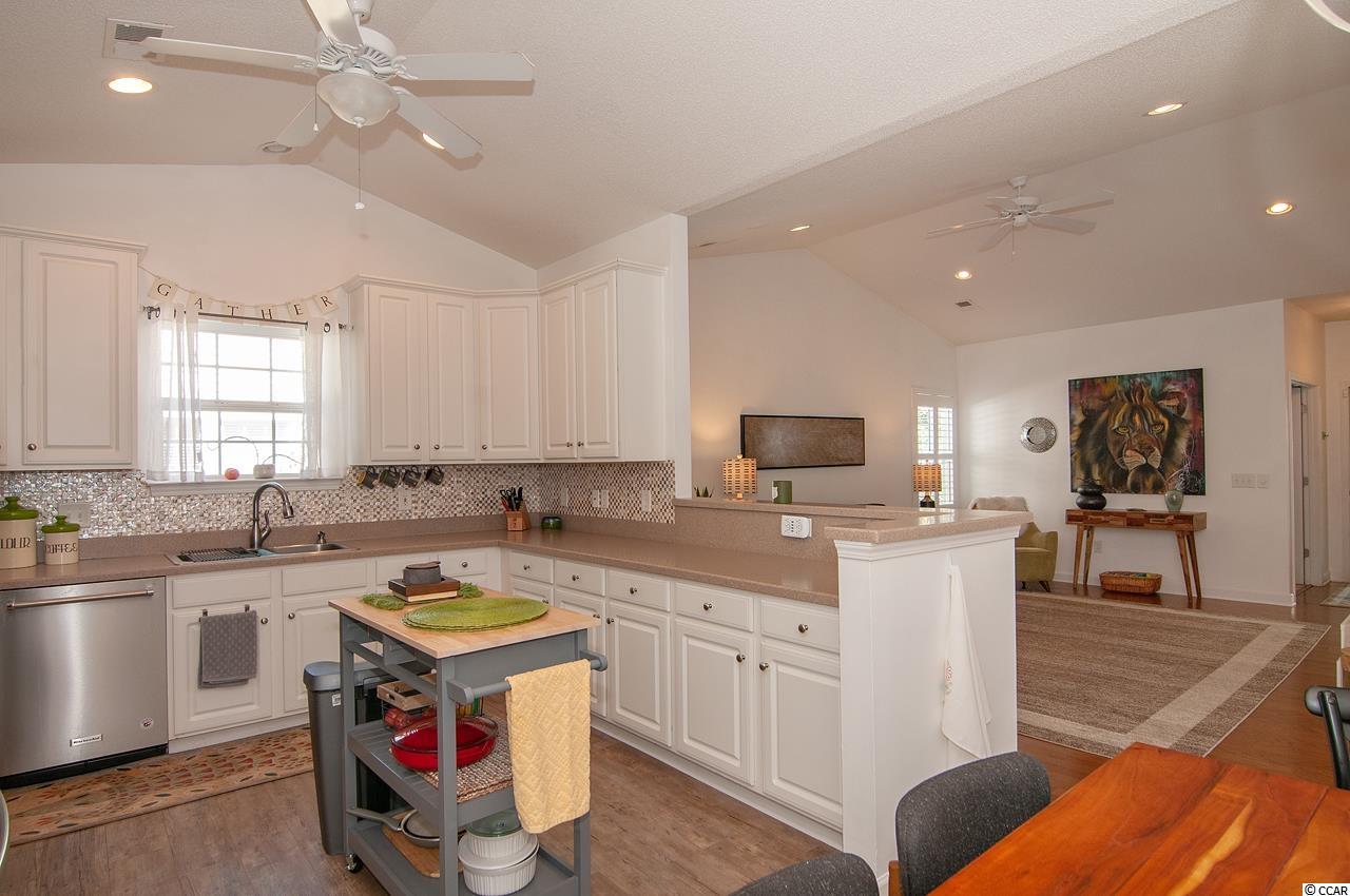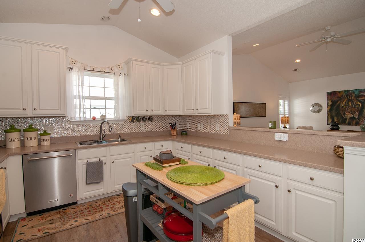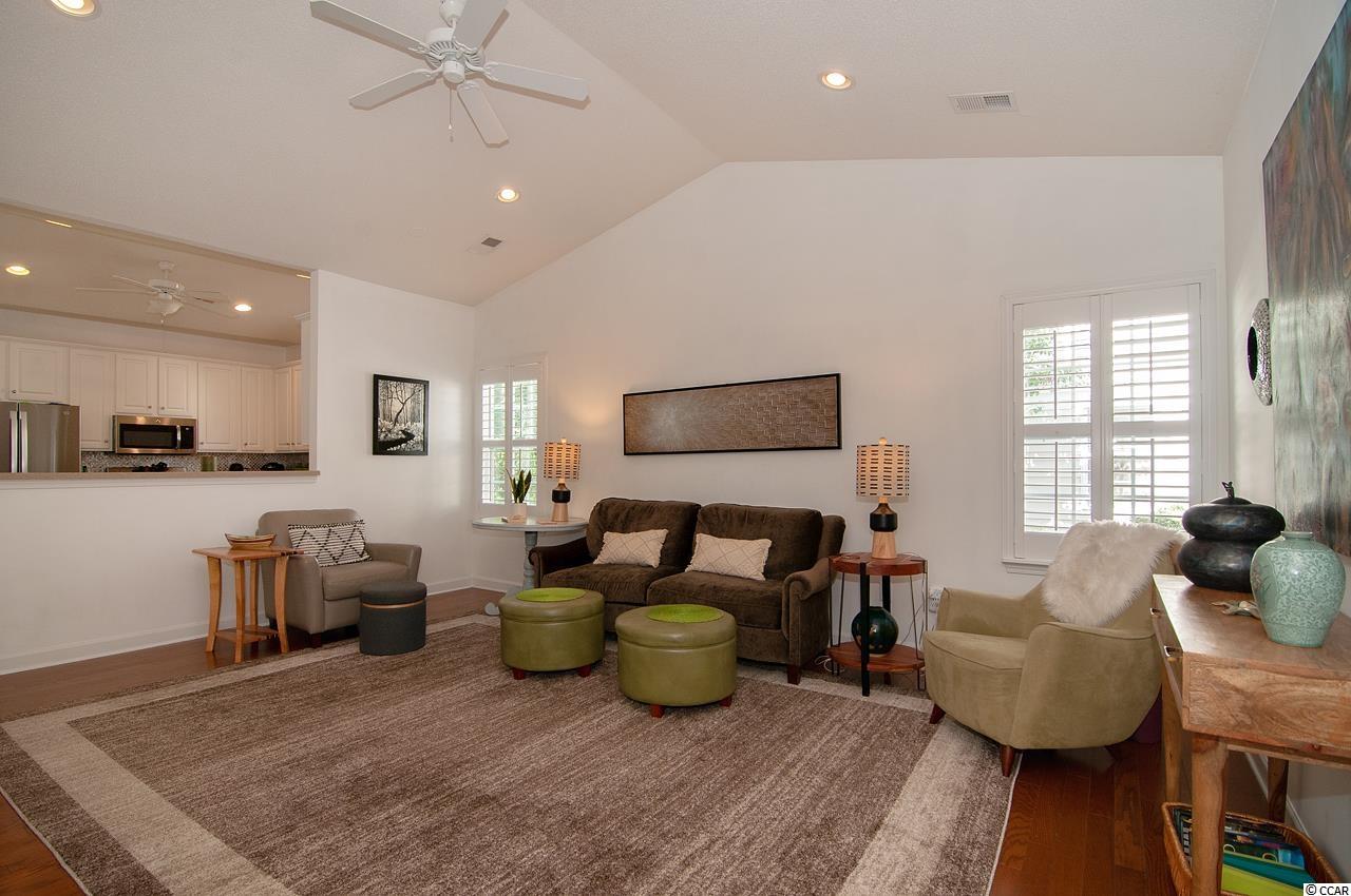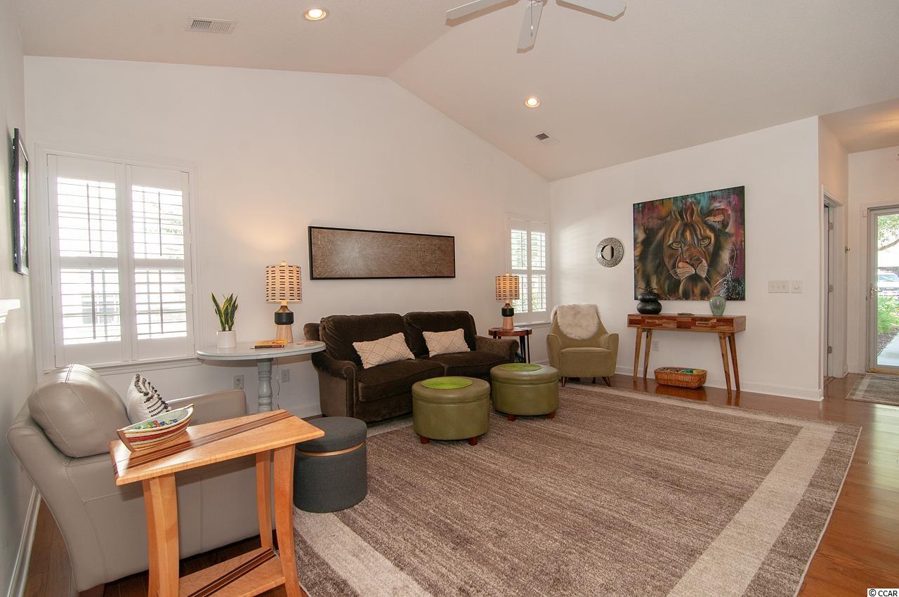 Kings Creek home offers carefree single-level living! Perfect for full-time or second home. Tucked within a quiet paired-ranch subdivision along Kings River Road in Pawleys Island. Enjoy direct access to the Waccamaw Neck Bikeway and close proximity to award-winning golf courses and some of the finest beaches on the east coast. Climate-controlled all-seasons porch and patio boast beautiful lakeside view. Lovely home additionally offers upgrades, open-concept floor plan with vaulted ceiling, three bedrooms (one currently used as a den), two full baths and private garage. Community pool is only steps away. Convenient to schools, medical facilities, shopping and local fine dining.