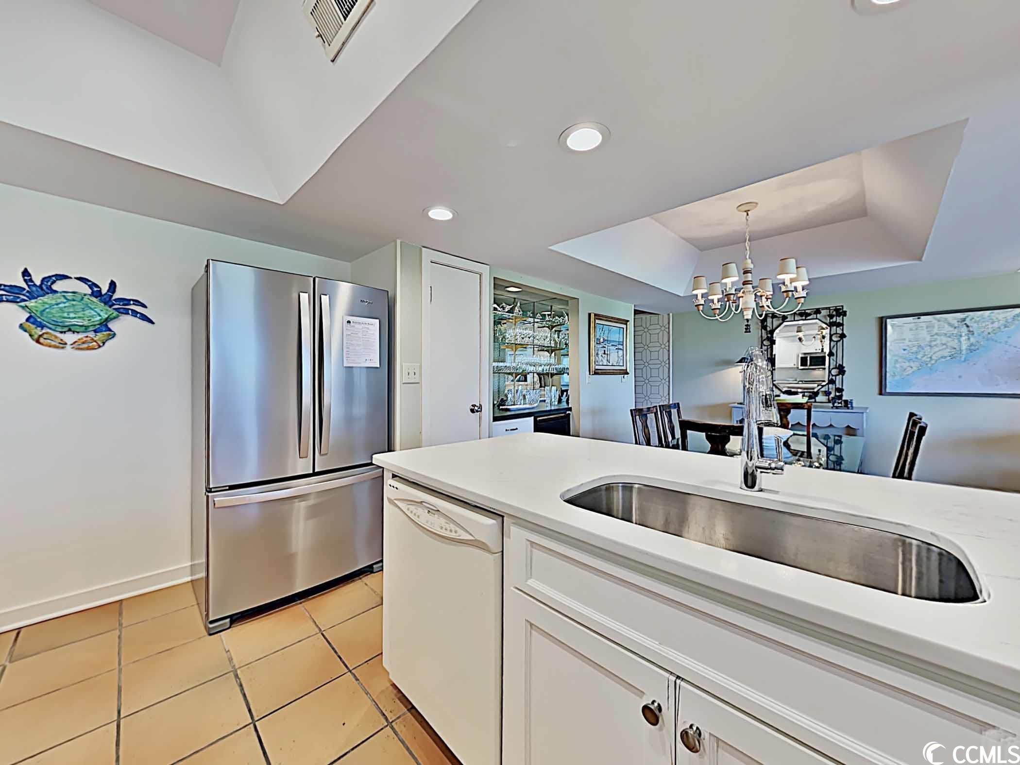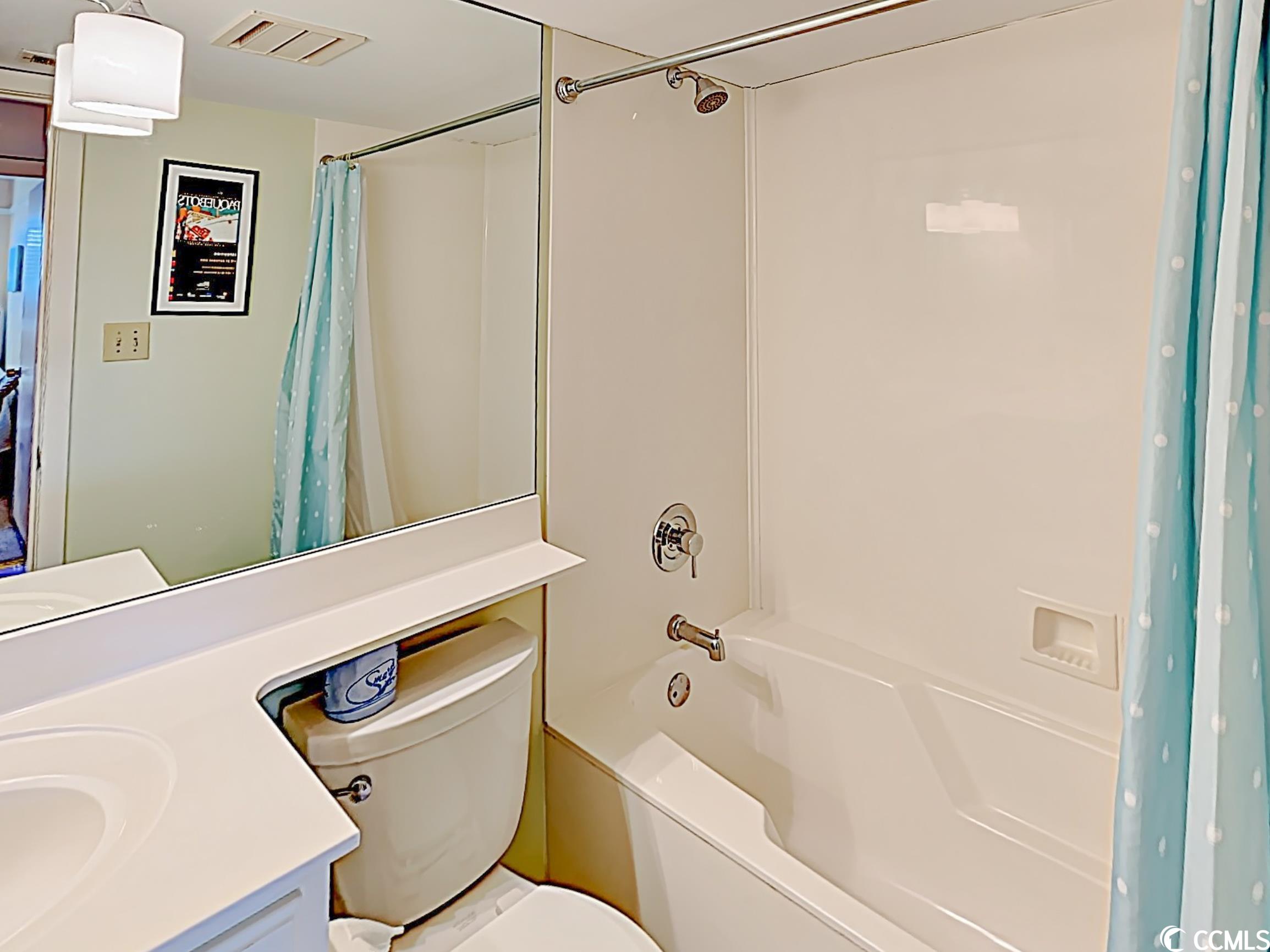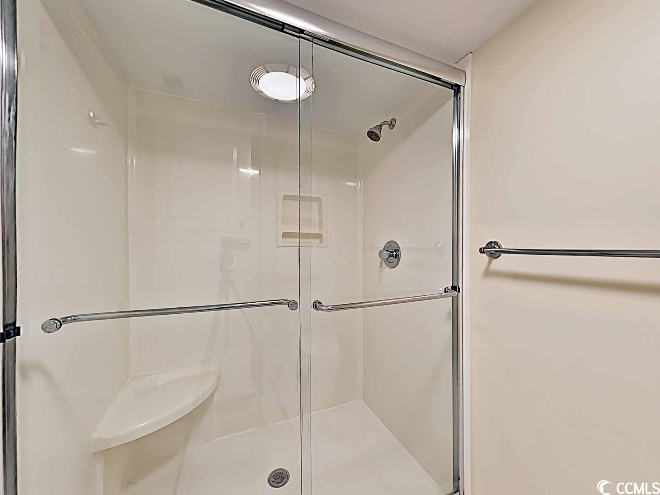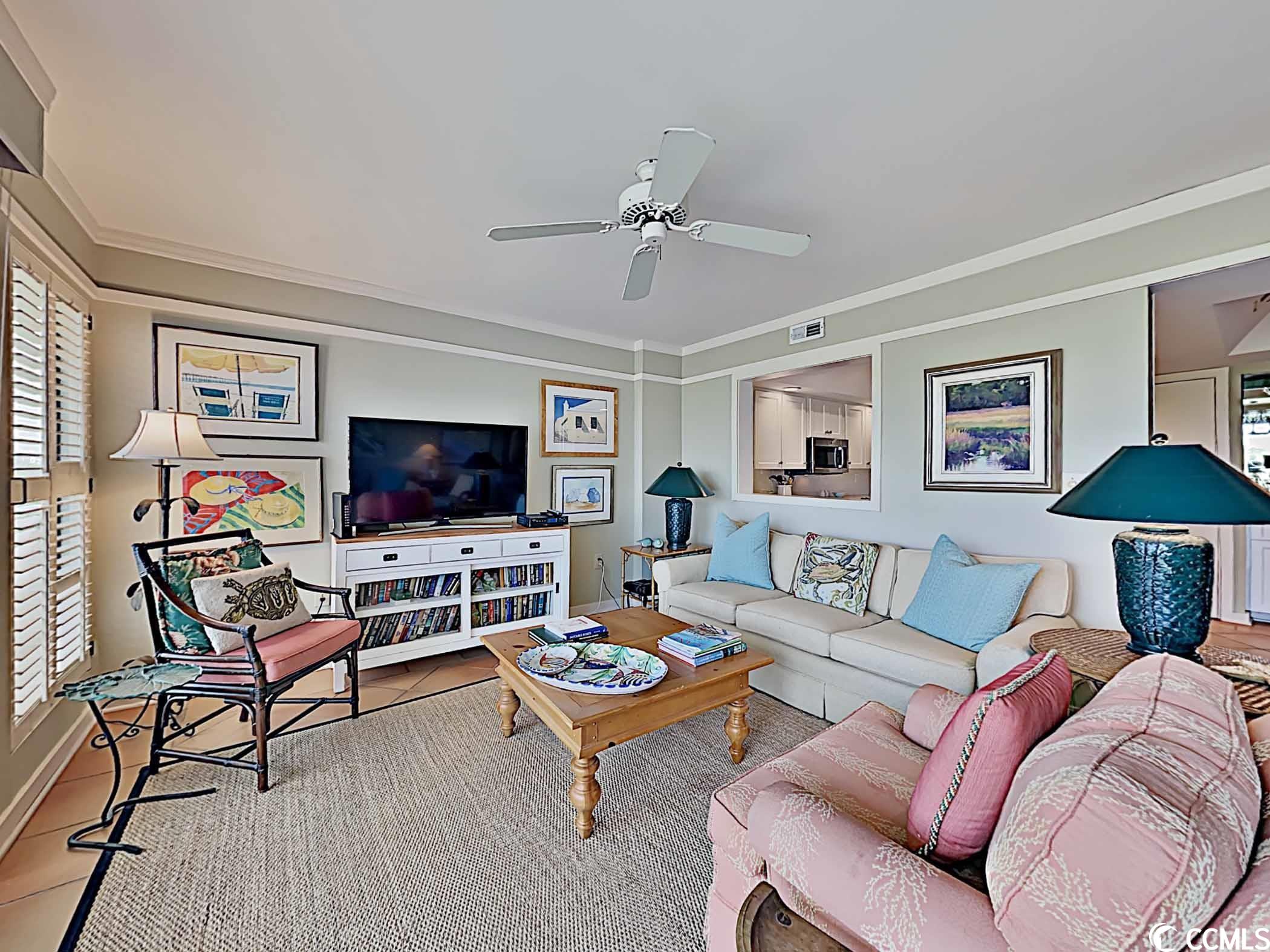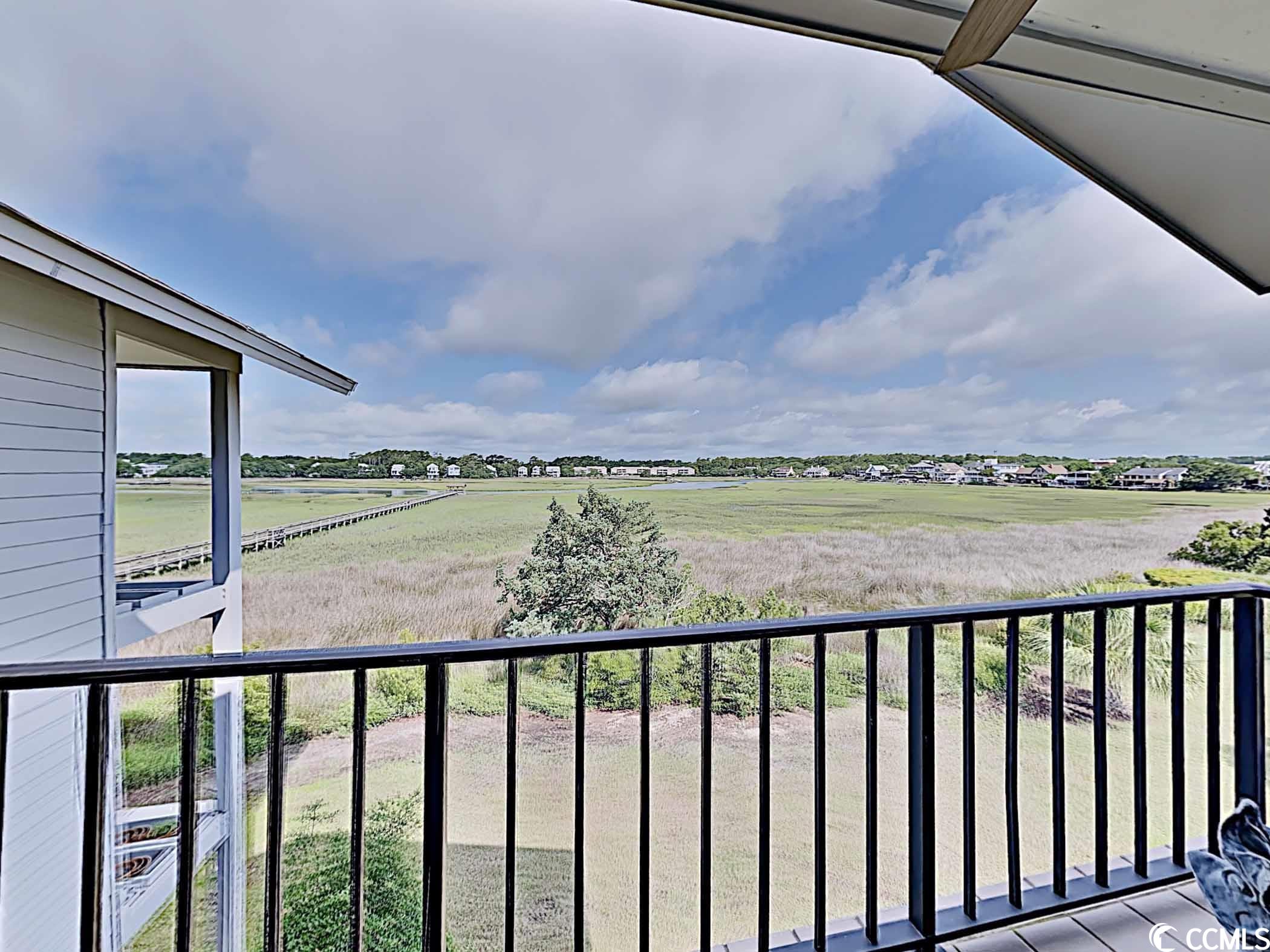 Inlet Point at Litchfield is an oceanfront and creekfront community of condominiums offering two pools, a crab dock on the creek and gated entrance. Unit 14E is located on the creek side, and is a 2 minute walk to the beach. Featuring 2 bedrooms, 2 baths. The living area has a wall of glass windows and a door opening to a balcony with gorgeous views of the marsh and creek. The kitchen is updated with quartz counter tops, tile backsplash, stainless appliances. Nicely decorated and furnished throughout. The master bedroom has a King bed and private bath has a walk-in shower with bench seat. The 2nd bedroom has 2 singles. The hall bathroom has a tub/shower combination. For additional sleeping arrangements, there is a sleeper sofa in the living room. This building has an elevator and there is reserved covered parking under the building. Enjoy life at the beach and enjoy the view of the ever changing scenes of the salt marsh and creek.