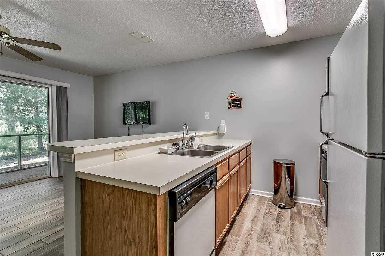 Nestled in nature, this 1st floor one bedroom condominium is the perfect spot to call home. Beautiful wood style tile flooring runs throughout. Natural lighting fills the living area. The kitchen is well equipped even offering a pantry for additional storage. Relax on your private screened porch with cool glass of iced tea or step out to the community pool and enjoy the sun with friends. The amenities center is a wonderful gathering spot and in addition to the outdoor pool, offers an indoor pool, fitness room and activities center. Just off of the beaten path this community offers respite from the hustle and bustle but is close to shops, entertainment, restaurants, golf courses, the waterway, water sports, the Murrells Inlet Marsh Walk and just minutes to the beautiful blue Atlantic Ocean and white sandy beaches. This home can be rented long or short term. Find your beach getaway today! Square footage is approximate and not guaranteed. Buyer is responsible for verification.