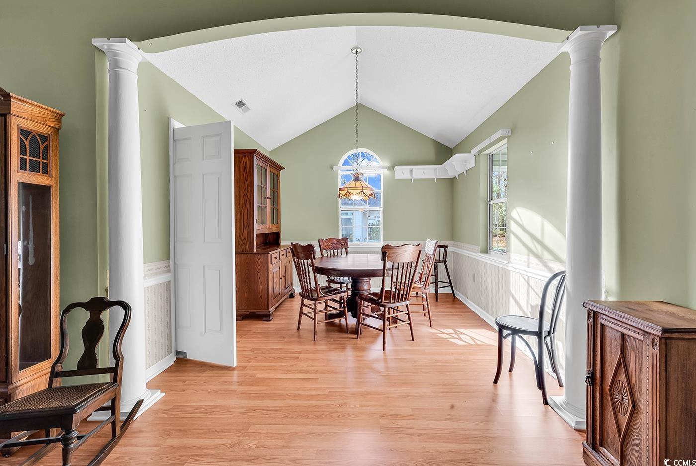 Welcome to this stunning home, ideally situated on one of the most coveted lots in The Lakes community. Nestled at the end of one of the largest lakes in the neighborhood, this three-bedroom, two-bathroom home offers breathtaking views right down the tranquil waters. All bedrooms are conveniently located on the first floor while the second floor boasts a versatile bonus room and an optional bedroom, perfect for guests or a home office. The open and spacious layout features a formal dining room, a Carolina room, a screened porch, all offering picturesque views of the lake. Enjoy outdoor living at its finest with a spacious deck that overlooks the serene backyard and lake beyond. The Lakes has access to Highway 17 S as well as Holmestown Road, providing convenience to nearby shopping and restaurants.