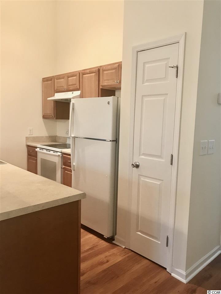 This immaculate 1 Bedroom/1 Bath 2nd Floor condo is located in the beautiful Island Green Community. It features cathedral ceilings throughout, screened porch with storm windows, breakfast bar, pantry,upgraded wood laminate flooring, tile bath and carpeted bedroom. Rebuilt in 2016 after a fire completely destroyed entire building, it was rebuilt entirely from ground up to current building codes with new appliances, HVAC, cabinets, flooring. light fixtures and sprinkler system. The low HOA includes water, sewer, trash pick up, outdoor pool, landscaping, pest control, Spectrum Bronze TV service, and Internet home enabled WiFi with modem, common area maintenance/electrical, exterior insurance, security guard gated after 7pm, and two parking spaces in front of unit. There is an R&B Amenities Center that has an indoor pool and jacuzzi, fitness center, and activity center for owners, who can join for a membership fee. This condo is a perfect starter home, vacation home or investment property, close to shopping, restaurants, medical facilities and short car ride to the beach. All measurements are approximate and should be verified by buyer .