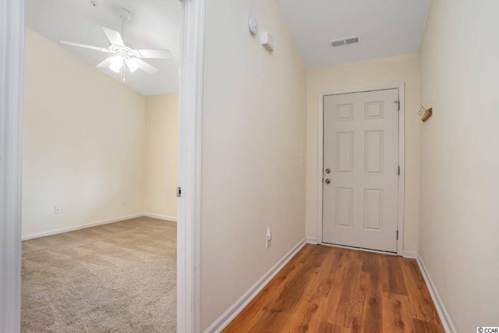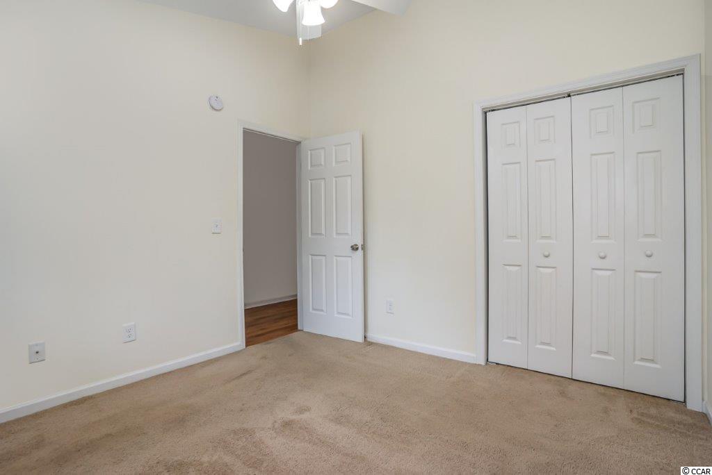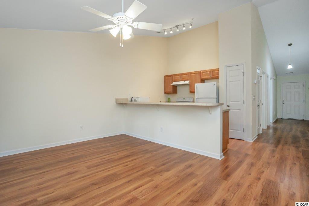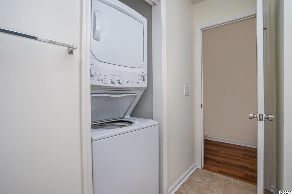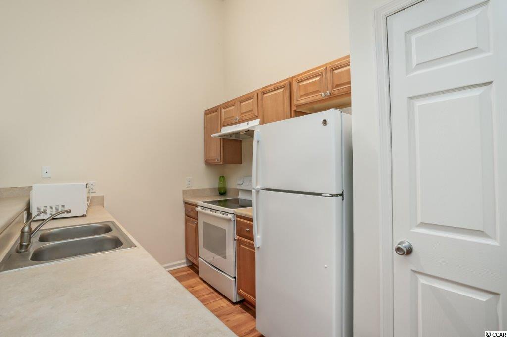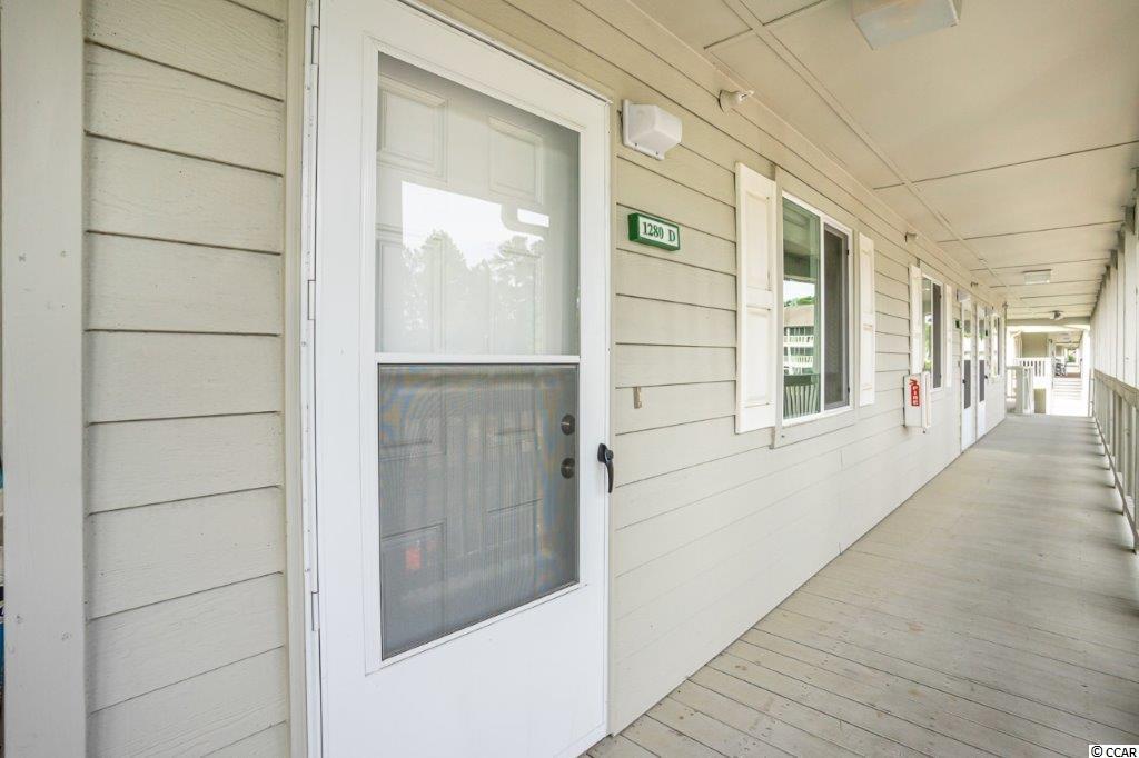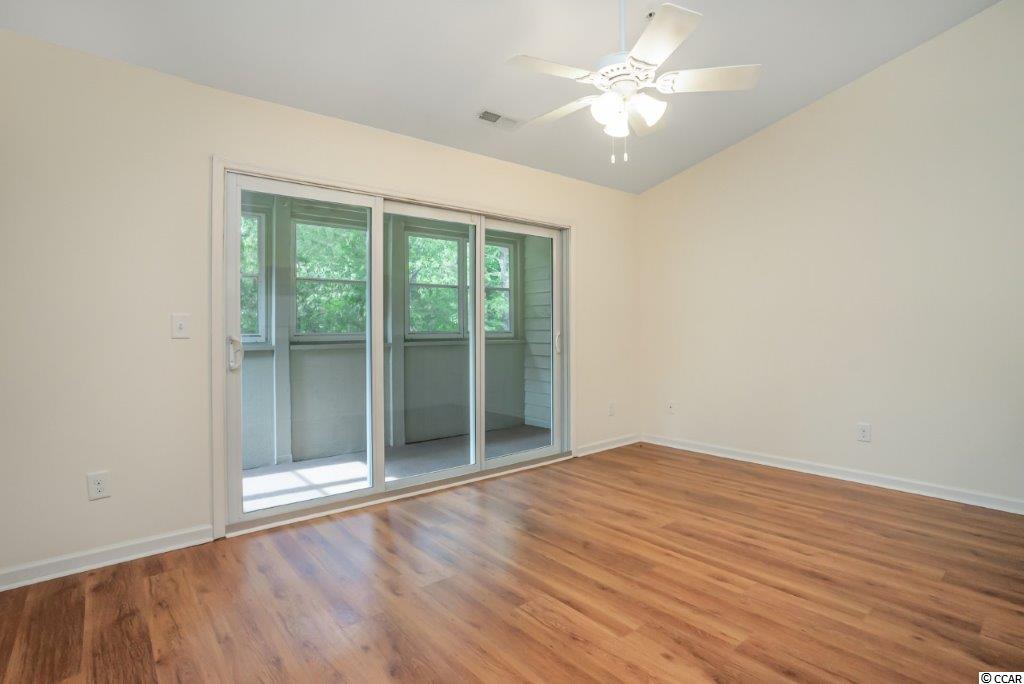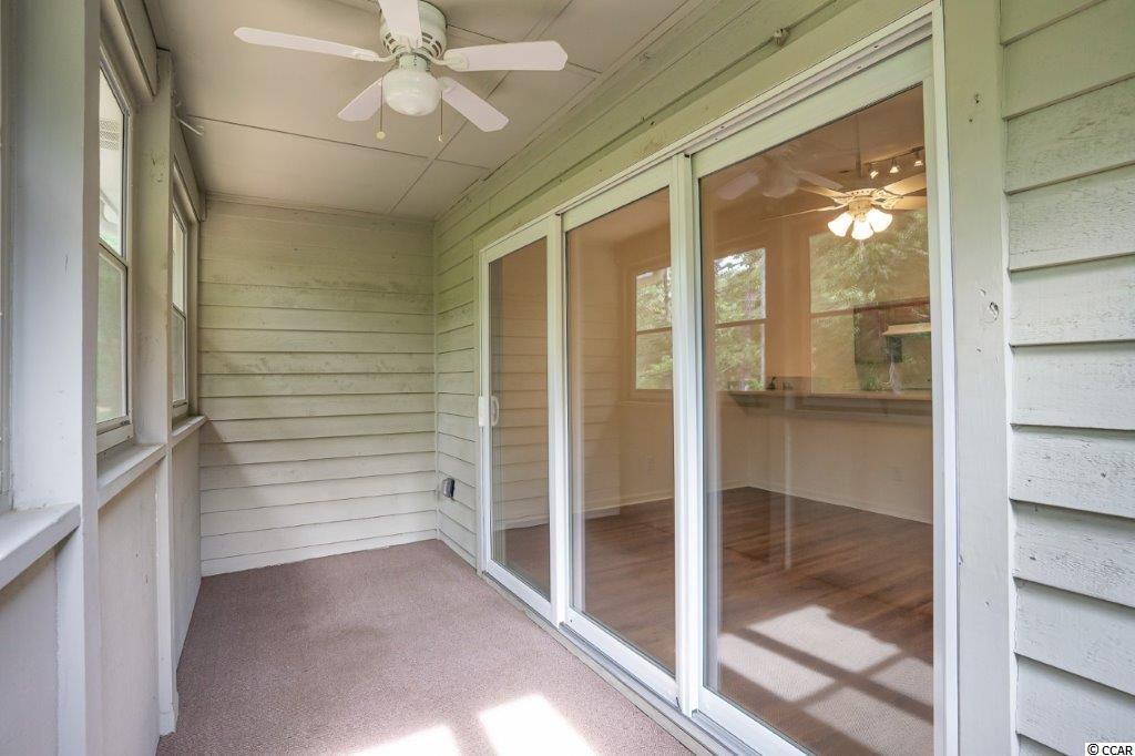 Looking for your dream vacation getaway? This is it! Located in the popular Island Green community, this immaculate 1 bed 1 bath condo has so many great features and is move in ready! Rebuilt from the ground up in 2016 to current building codes after building was destroyed in a fire, the unit was updated with new appliances, HVAC , cabinets , flooring and sprinkler system. Wonderful open floor plan boasts vaulted ceilings throughout that give the unit an open and airy feel, laminate floors in the living room and kitchen and ceiling fans in the living room , bedroom and screen porch. The spacious living room and dining area has direct access to the rear porch and is adjacent to the fully equipped kitchen that boasts abundant cabinet and counter space, double sink, an extended breakfast bar and a pantry. The nice sized bedroom has plenty of closet space and the bath has tile floors, a vanity, tub/shower and wall cabinet for additional storage . There is also a stack washer and dryer in the unit. The expansive screen porch with storm windows overlooks a serene wooded area and is the perfect spot to enjoy your morning coffee or relax with cocktails at the end of the day. HOA dues includes water/ sewer, trash, outdoor pool, landscaping, pest control, Spectrum cable/internet , exterior building insurance, and the community is gated after 7 PM with a security guard . Wonderful location just minutes from shopping, dining, golf , the airport, Market Common, and best of all the beach and everything the Grand Strand has to offer in amusements and entertainment! Perfect as a primary home, private beach retreat and would also be a great investment property as both short and long term rentals are permitted. This is a fantastic opportunity! Don't miss it! Make an appointment today to view this delightful condo!