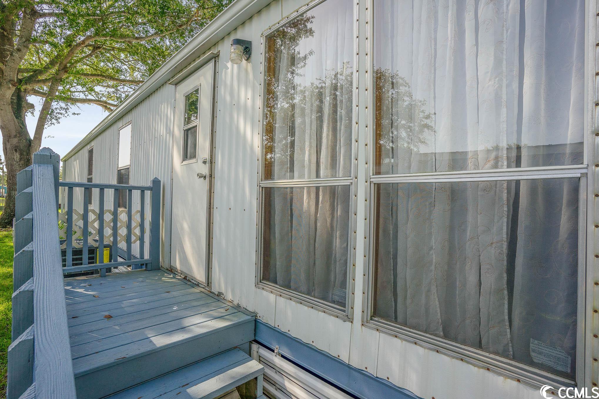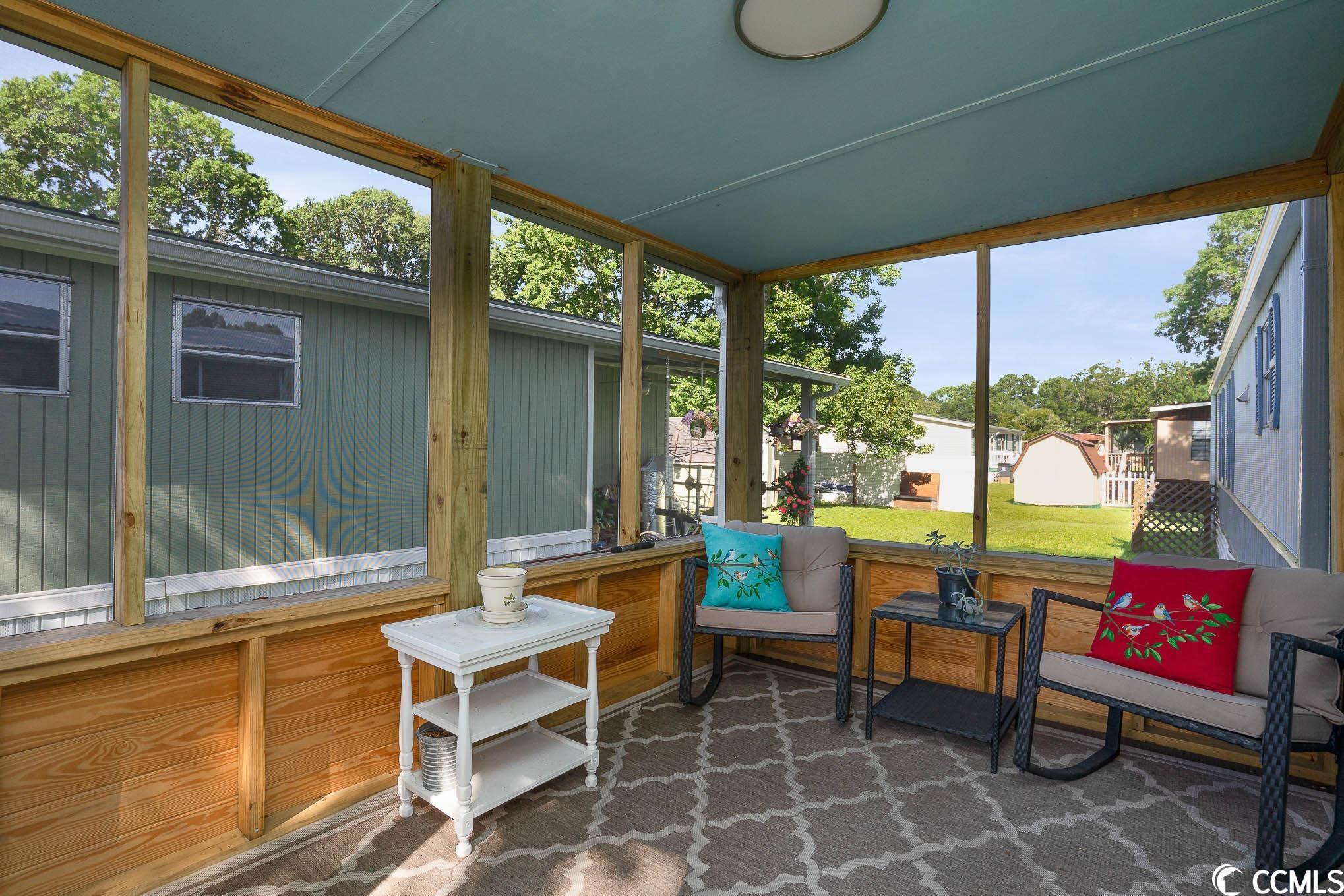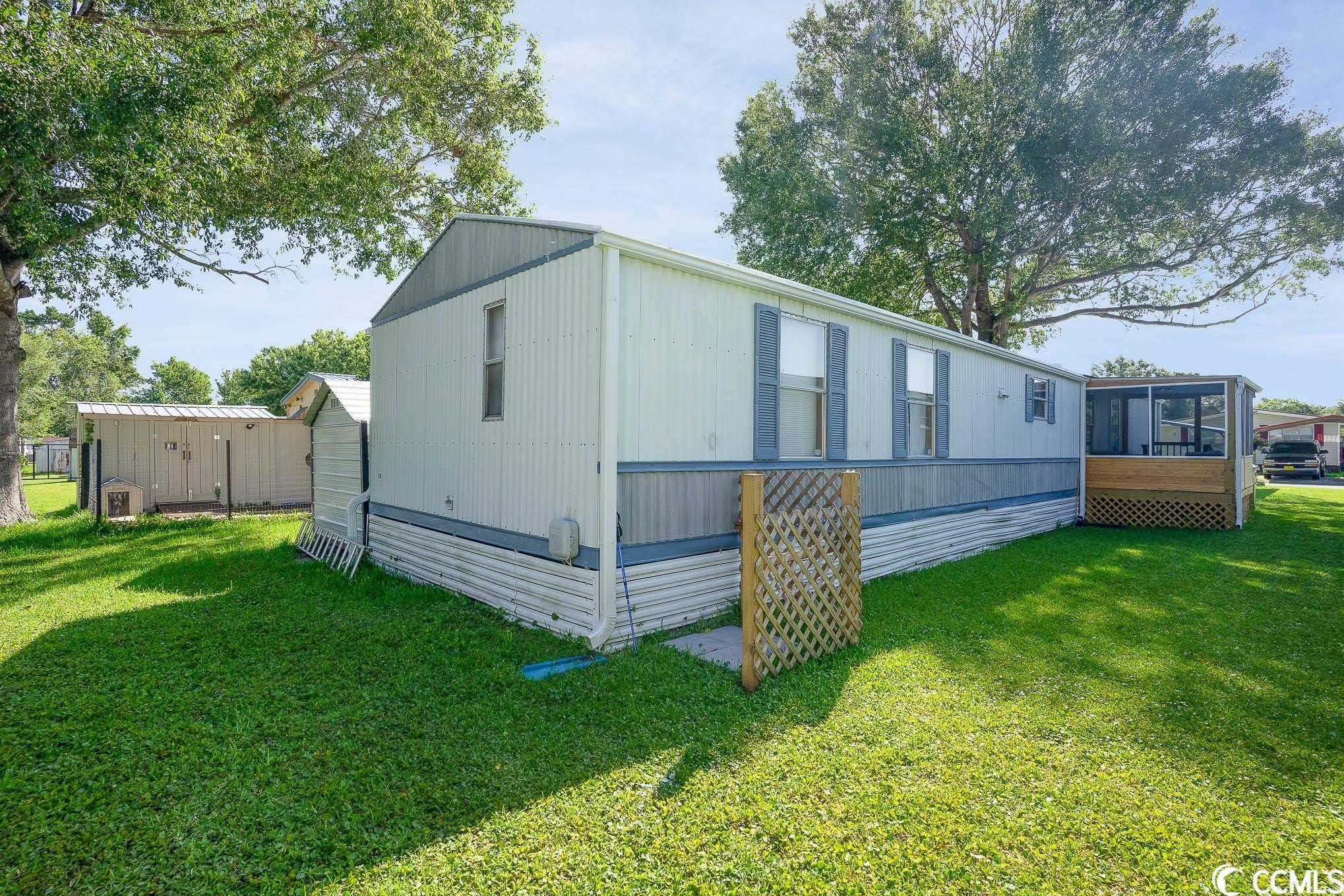 Charming and completely furnished 2 bedroom, 2 bath in the 55+ community of Oceanside Landing! Featuring a spacious split bedroom floor plan, this home has had a complete make over within the last year to include new LVP flooring thoughout, new hot water heater, new front loading washer and dryer, new AC unit, new fridge, new front door, new toilets, new shower heads and new screened in front porch. The eat in kitchen is bright and sunny with ample space for family dining. Just off the kitchen is a separate laundry area that has additional pantry item storage. The master suite is private with its own full bath that has a walk in shower. Outside you will find a handicap accessible walkway, two car carport and landscaped flower bed. There is also a storage shed around back. Schedule your showing today! (Home is on leased land, Buyer(s) must apply to and be approved by park). Oceanside Landing offers a community pool and clubhouse with various events/activities for residents. No short or long term rentals are permitted. MOTIVATED SELLER!!