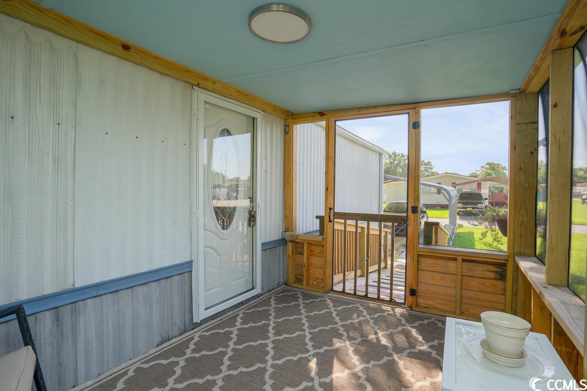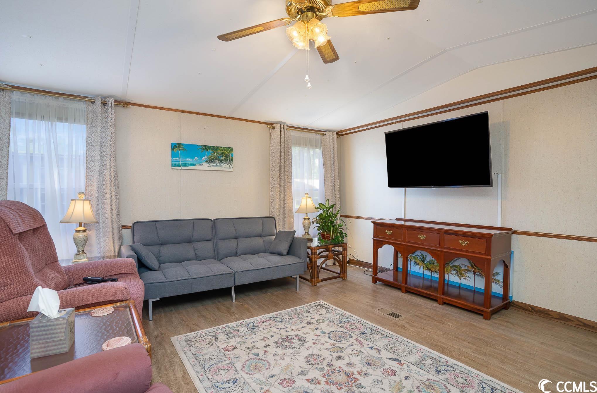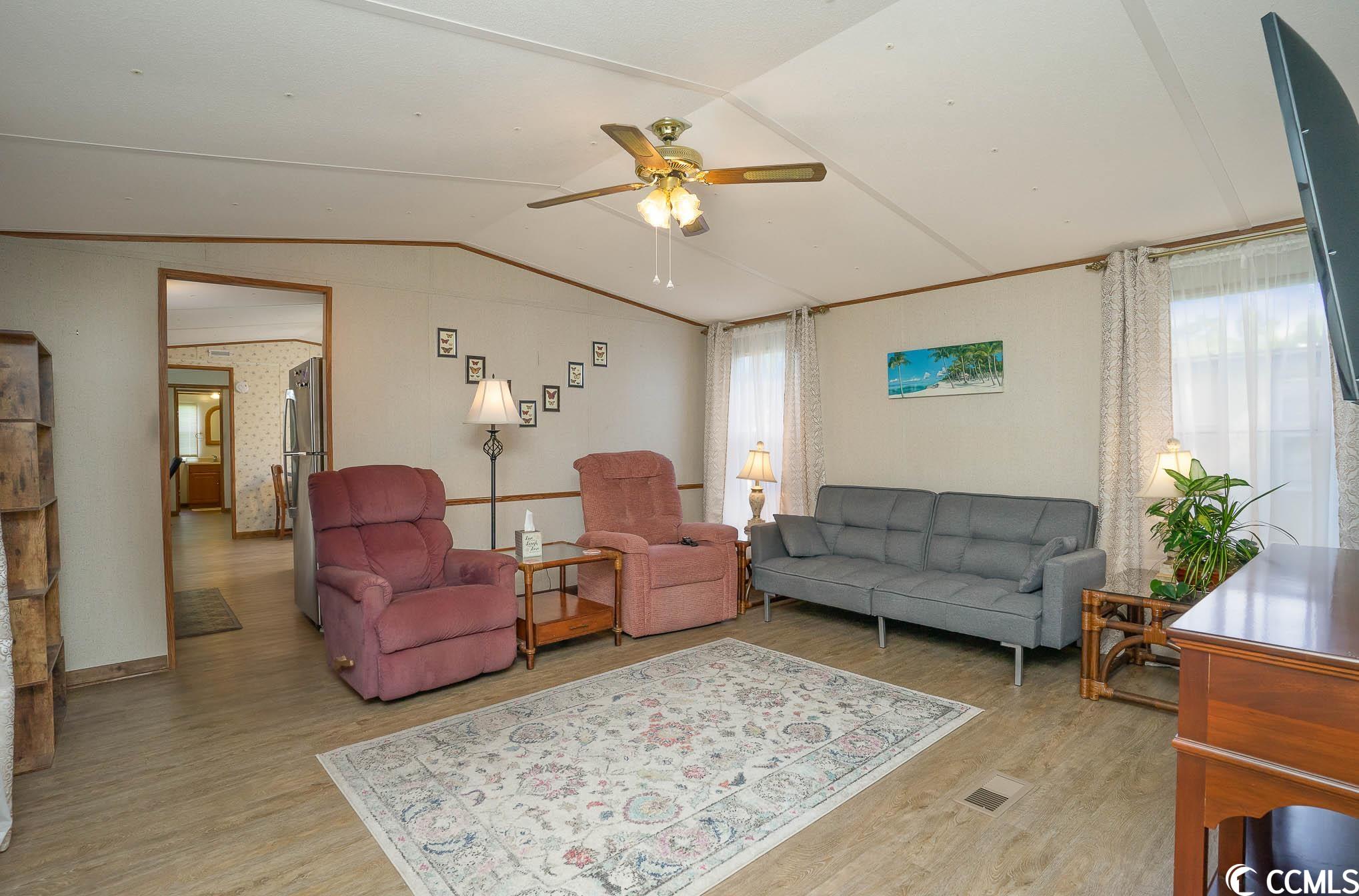 Charming and completely furnished 2 bedroom, 2 bath in the 55+ community of Oceanside Landing! Featuring a spacious split bedroom floor plan, this home has had a complete make over within the last year to include new LVP flooring thoughout, new hot water heater, new front loading washer and dryer, new AC unit, new fridge, new front door, new toilets, new shower heads and new screened in front porch. The eat in kitchen is bright and sunny with ample space for family dining. Just off the kitchen is a separate laundry area that has additional pantry item storage. The master suite is private with its own full bath that has a walk in shower. Outside you will find a handicap accessible walkway, two car carport and landscaped flower bed. There is also a storage shed around back. Schedule your showing today! (Home is on leased land, Buyer(s) must apply to and be approved by park). Oceanside Landing offers a community pool and clubhouse with various events/activities for residents. No short or long term rentals are permitted. MOTIVATED SELLER!!