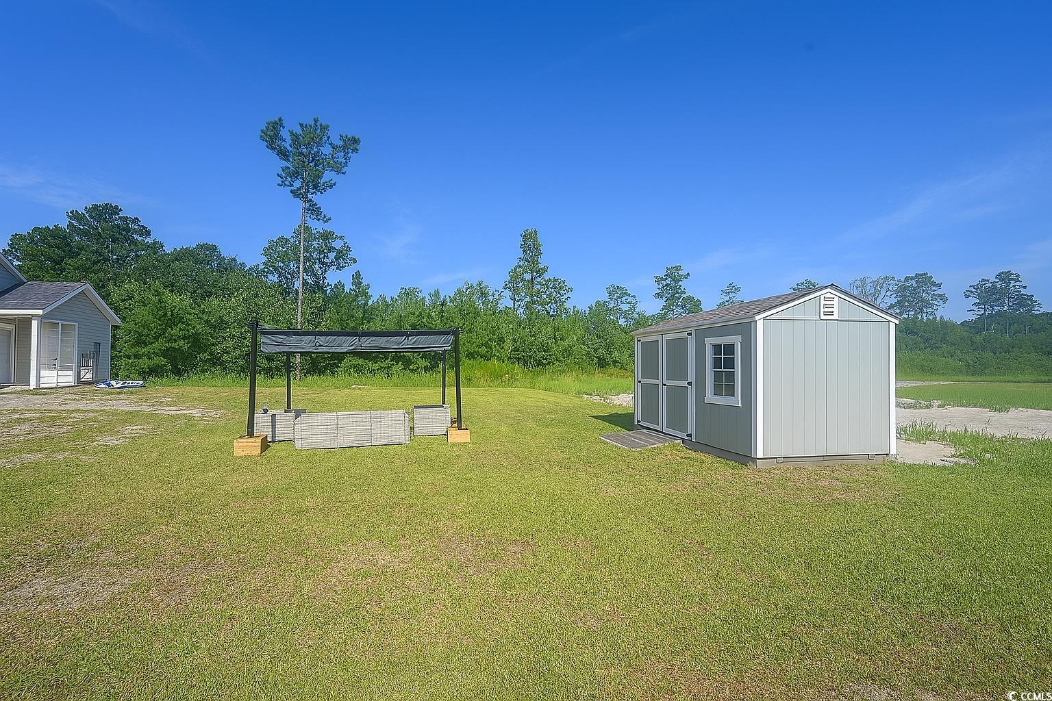 This charming three bedroom and two full bathroom home in the Aynor School District. No HOA's! Situated on an estimate of .50 of an acre! This beautiful home offers spacious living in a serene country setting, but estimated at 50 minutes from Myrtle Beach, SC attractions, fine dining, entertainment, and the beach! The open-concept floor plan features a generous living room, nice size bedrooms, and multiple storage closets. The upgraded kitchen is equipped with granite countertops, stainless steel appliances, and a breakfast bar, perfect for casual dining. There's also a sizable dining area for more formal gatherings. The master bedroom includes a tray ceiling, a walk-in closet, and a walk-in shower. There is a spacious backyard, and an attached storage room along with a shed.