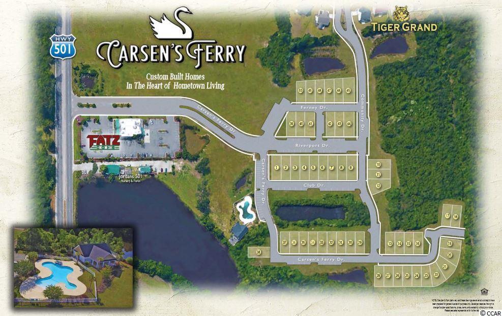 COLORFUL, CHARMING & CUSTOM BUILT WITH LOADS OF UPGRADES!! For those seeking the best of both worlds, discover the historical quaint town of Conway located 20 miles of the beach and excitement. Discover why Carsen's Ferry is the perfect fit for you and your family. Located just off 501 behind a scenic lake, this master planned community features attractive well-lit streets and sidewalks, beautifully designed streetscapes with lush landscaping. This park like setting is ideal for early morning jogs or afternoon strolls. These finely detailed, Low Country Cottage has a gas range, on demand gas hot water, gas heat, brick accents, bright coastal color palettes,and front porches perfect for that fine old lost art of visiting with neighbors.