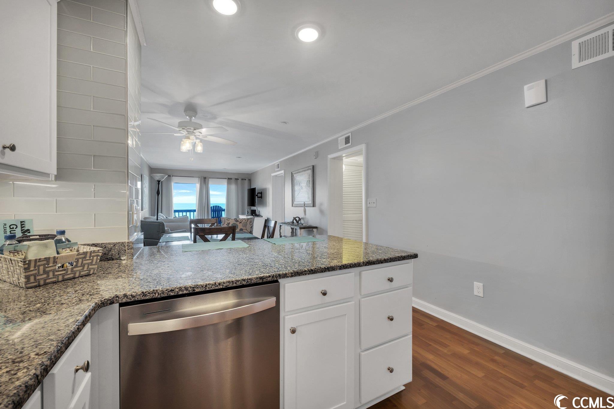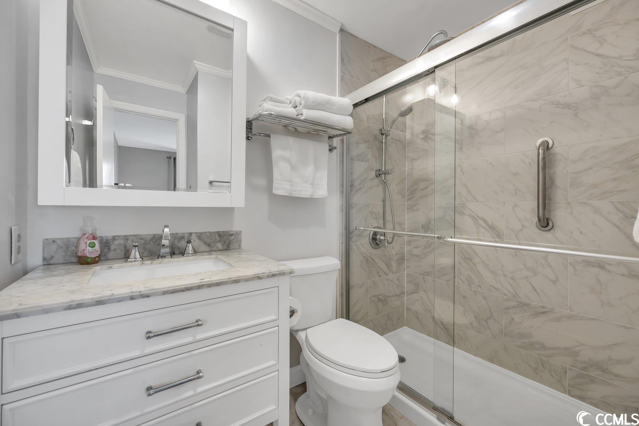 This condo is truly a must see! Upon entering the front door youll be captivated by the breathtaking views. This Beautiful 2 bedroom/2 bathroom condo in Garden City, with tons of upgrades!! Upgraded flooring throughout, newer kitchen cabinets, granite counters and stainless steal appliances. Main bedroom has its own entrance to the balcony with beautiful views of the beach to enjoy a cup of coffee as the sun raises. Main bath includes tile shower with a rain shower-head and new glass shower door. The guest bathroom features a shower/tub combo, new tile floors, new vanity & tub fixture. You will notice this unit has easy access to the 2 elevators & on-site laundry facilities. The Condo also features a storage unit on the bottom level and an extra overflow parking lot .This unit is being sold fully furnished. Only minutes away from the Garden City pier, Murrells Inlet Marsh-walk, Brookgreen Gardens, Huntington State Park, & all that Myrtle Beach has to offer