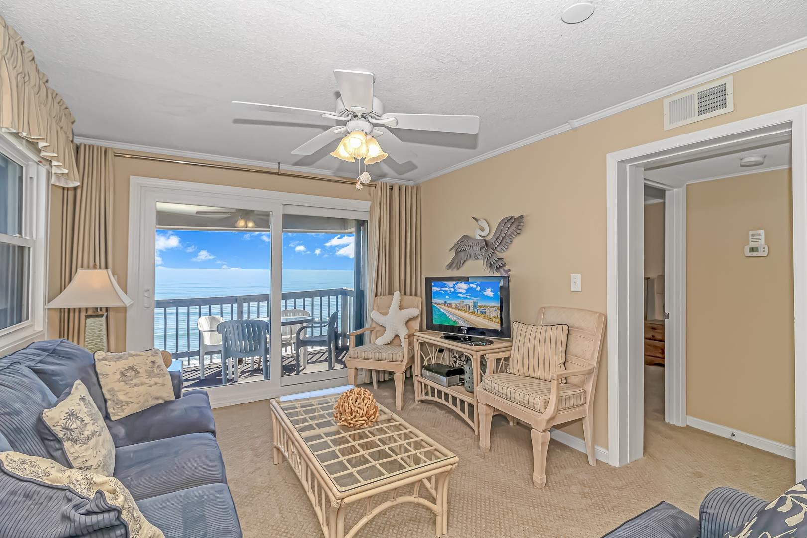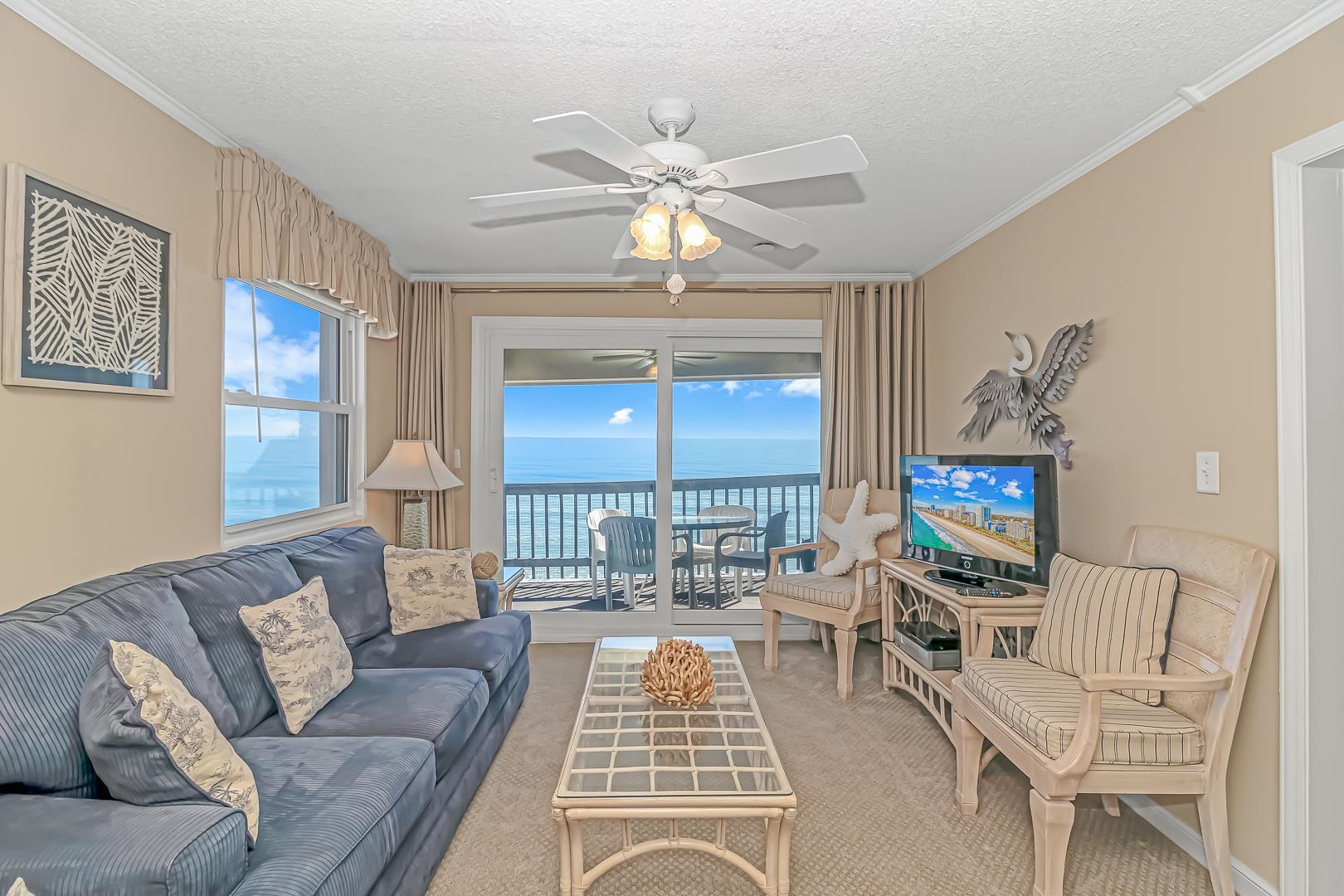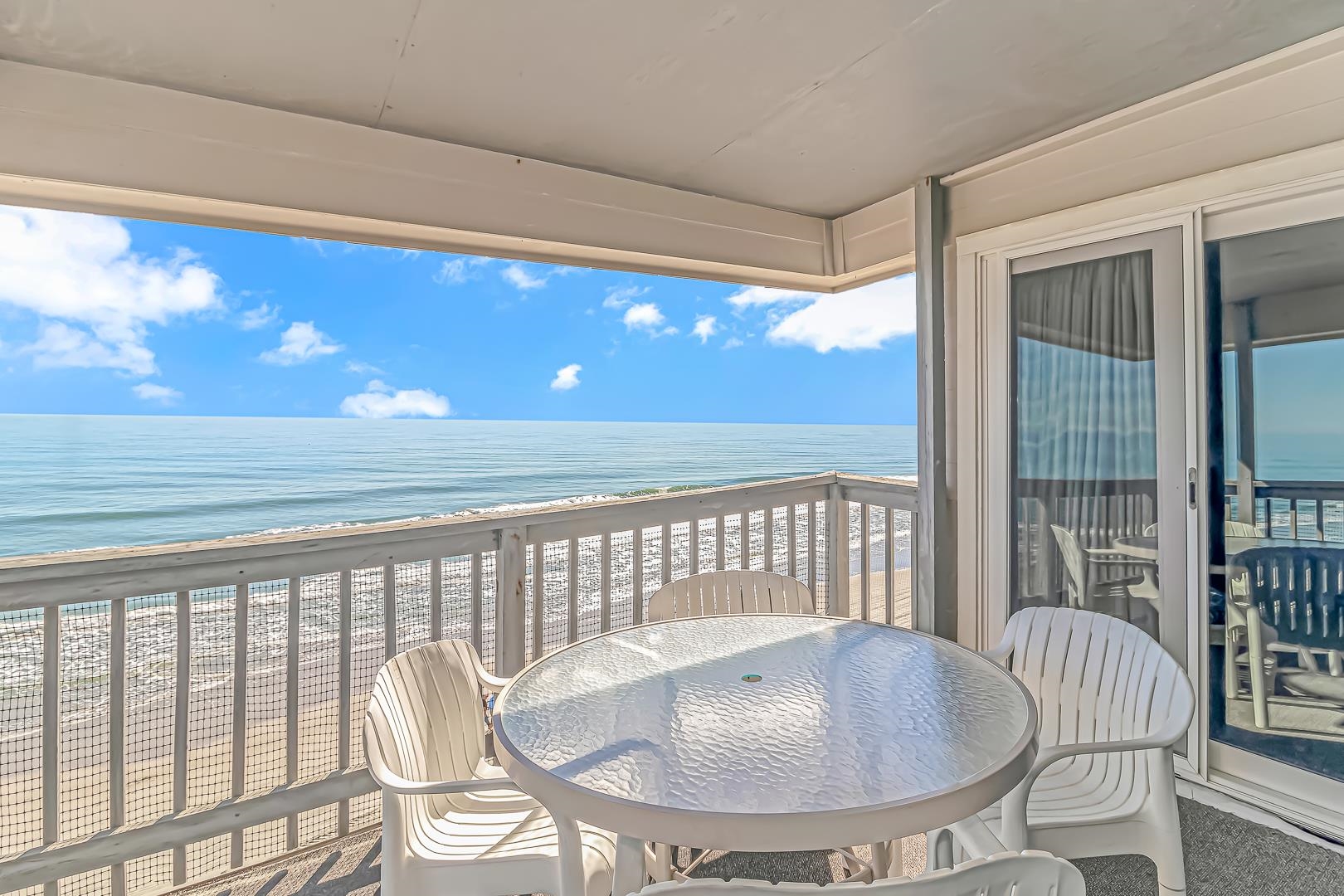 Location, location, location! Welcome to this cheerful direct oceanfront 2 bedroom, 2 full bathroom condo boasting spectacular ocean views from the main living area as well as the master bedroom! From this top floor condo one can enjoy the beauty of the north strand view and extra light only available with an end unit Master suite has direct access to the balcony. Enjoy the sunrise while having that first cup of coffee from the balcony. This furnished home has had many updates in the past few years. New laminate in the kitchen and new carpet throughout the entire condo, Corian countertops in the kitchen, new Heat pump (HVAC) in 2022. Furnished with window treatments. Sea Master is a well-kept building on the ocean in Garden City. It offers elevators, outside storage room and large oceanfront with sundeck.