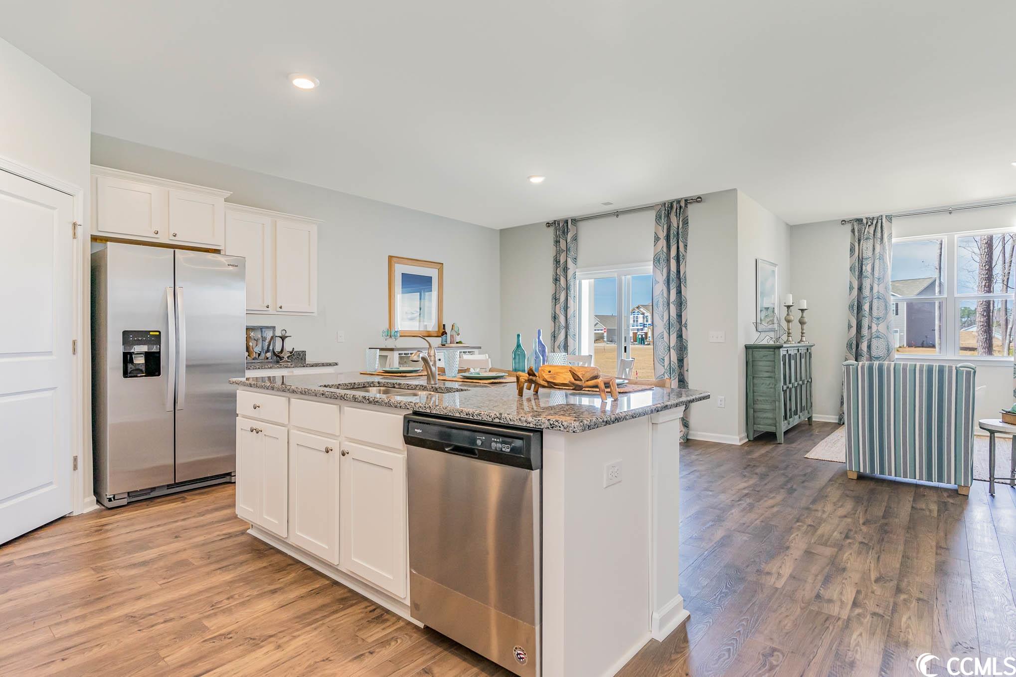 The Reserve at Wild Horse community is conveniently located on Highway 90 just minutes from Downtown Conway, shopping destinations, golf courses, and the beach! Our Cali plan is the perfect one level home with a beautiful, open concept living area for entertaining. The kitchen features granite countertops, oversized island, 36"" cabinets, walk-in pantry, and stainless appliances. The large owner's suite is tucked away at the back of the home, separated from the other bedrooms, with double vanity and 5' walk-in shower in the private master bath. Beautiful laminate wood floors throughout the living areas! Spacious covered rear porch adds additional outdoor living space. Ask about our Home Is Connected package! Home Is Connected smart home package are also included. *Photos are of a similar Cali home. (Home and community information, including pricing, included features, terms, availability and amenities, are subject to change prior to sale at any time without notice or obligation. Square footages are approximate. Pictures, photographs, colors, features, and sizes are for illustration purposes only and will vary from the homes as built. Equal housing opportunity builder.)