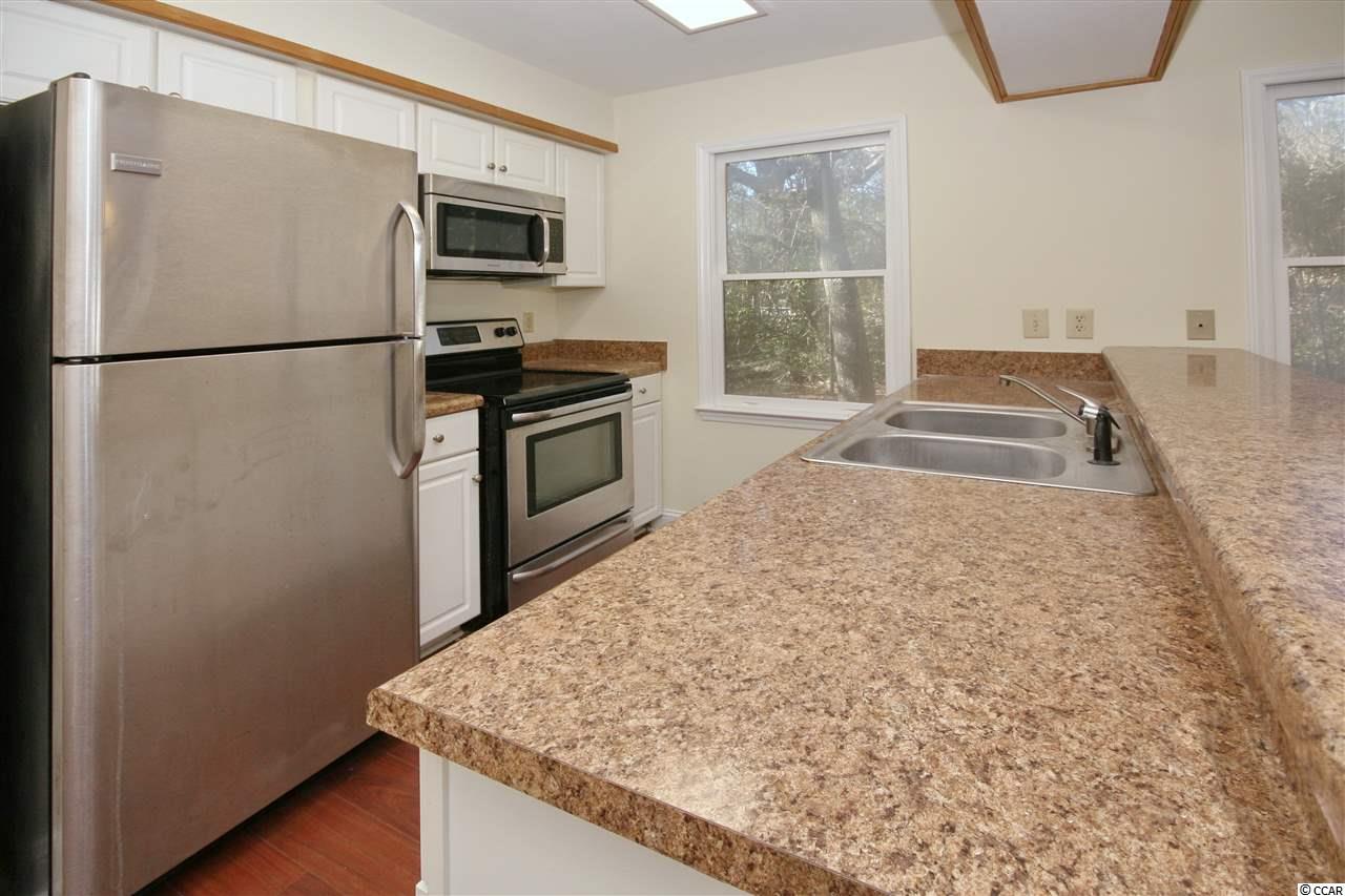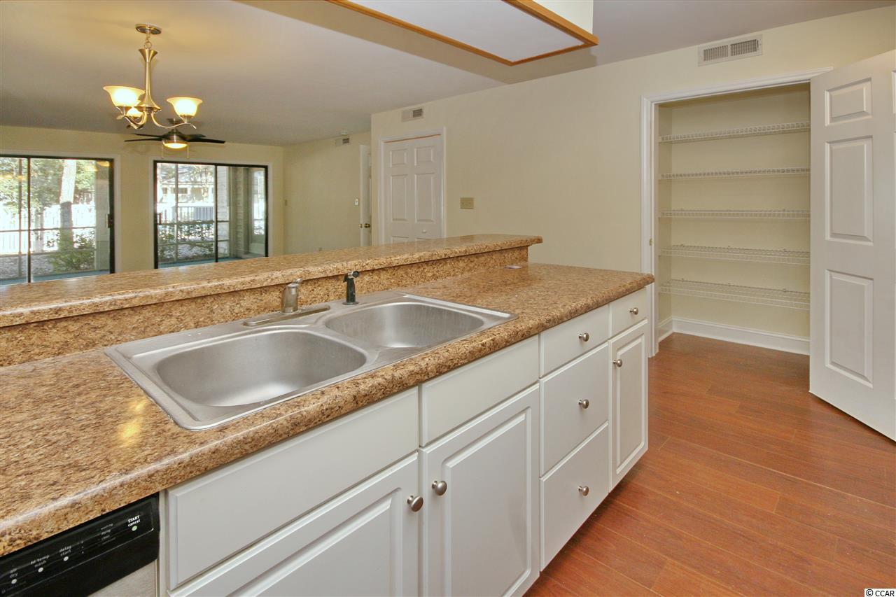 1st floor condo is located in Pawleys Plantation built around a Jack Nicholas golf course. Nice open floor plan with many windows for light. Kitchen boast Stainless steel appliances and washer/dryer is included. The Living room has a dry bar which is perfect when entertaining Views from screened porch onto community swimming pool. A split bedroom plan makes it convenient for privacy. Pawleys Plantation is a gated community which offers golf and tennis courts and convenient to all Pawleys Island has to offer!
