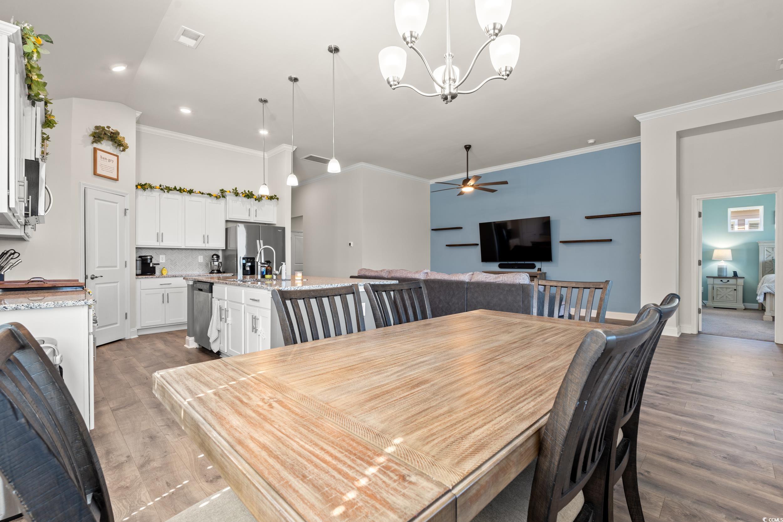 Welcome to 1354 Fence Post Lane, a well-designed single-story home built in 2022. With four bedrooms, two full baths, and over 2,000 square feet of living space, this property combines modern finishes with everyday comfort. The open layout centers around a well-appointed kitchen featuring granite countertops, a large island, stainless steel appliances, and a walk-in pantry. High ceilings brighten the main living area and create an easy flow to the screened porch, where you can enjoy views of the pond. A fenced backyard adds both privacy and usable outdoor space. The primary suite includes a walk-in closet and a double vanity bath. Three additional bedrooms offer flexibility for guests, office use, or hobbies. Located in The Grove at The Farm at Brunswick, residents enjoy amenities including a resort-style pool with kids area, clubhouse, fitness center, and fire pit. HOA services cover lawn care, irrigation, trash, basic cable, and internet, keeping maintenance simple. Conveniently close to shopping, dining, golf, and the beaches of North Myrtle and Sunset, this home delivers the right mix of comfort, community, and location. Schedule your private showing today.