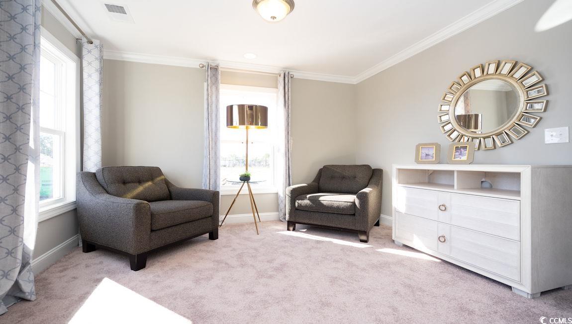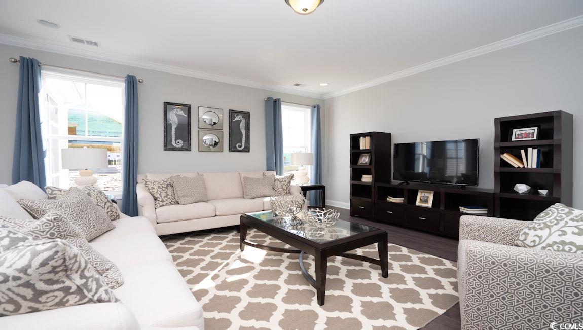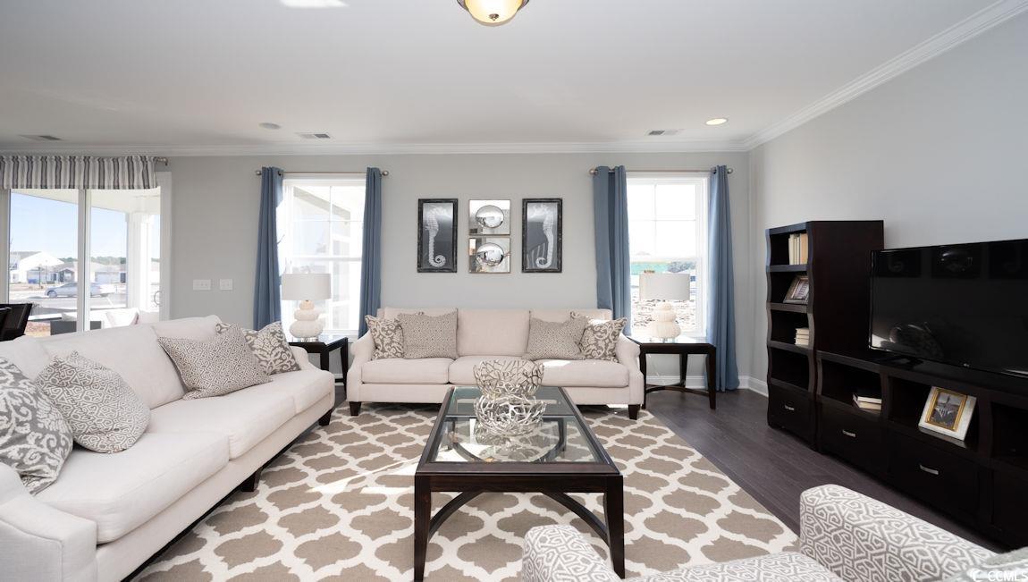 This popular plan brings functionality and style together! Incredible curb appeal is an understatement given the stacked front porches and tall entry door with glass. Once inside, wide plank laminate wood flooring creates an inviting space and numerous windows bring in fantastic natural light. Off the entry is a spacious flex room that would make a great home office or formal dining room. The large gourmet kitchen boasts 36"" cabinetry, quartz countertops, an oversized island, stainless Whirlpool appliances, a walk-in pantry, and a gorgeous Butler's pantry. Sliding glass doors off the dining area leads to the rear screen porch! Spacious bedroom and full bathroom on the first floor is perfect for guests visiting you at the beach. Upstairs you will find the grand primary bedroom suite with a cozy sitting room, huge walk-in closet that connects to the laundry room, and en suite bath with large separate vanities, linen closet, and 5 ft shower! This home is located in the new natural gas community in Carolina Forest! The Parks of Carolina Forest is a picturesque setting of ponds, an amazing amenity center, and park of the majestic ""Ten Oaks"" with a walking trail to get to the Carolina Forest library. *Photos are of a similar Harbor Oak floorplan. (Home and community information, including pricing, included features, terms, availability and amenities, are subject to change prior to sale at any time without notice or obligation. Square footages are approximate. Pictures, photographs, colors, features, and sizes are for illustration purposes only and will vary from the homes as built. Equal housing opportunity builder.)