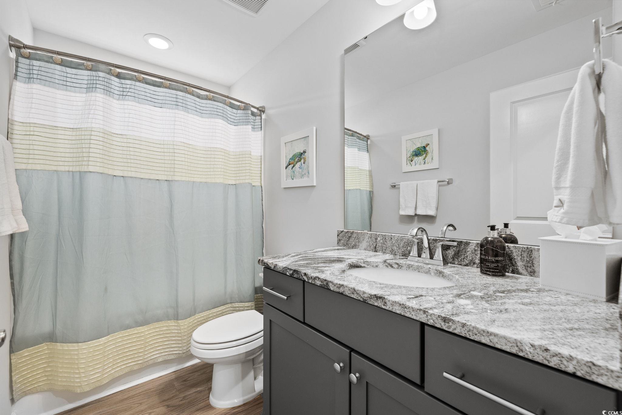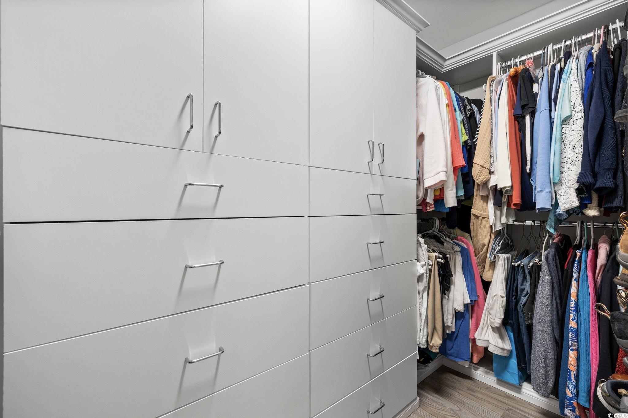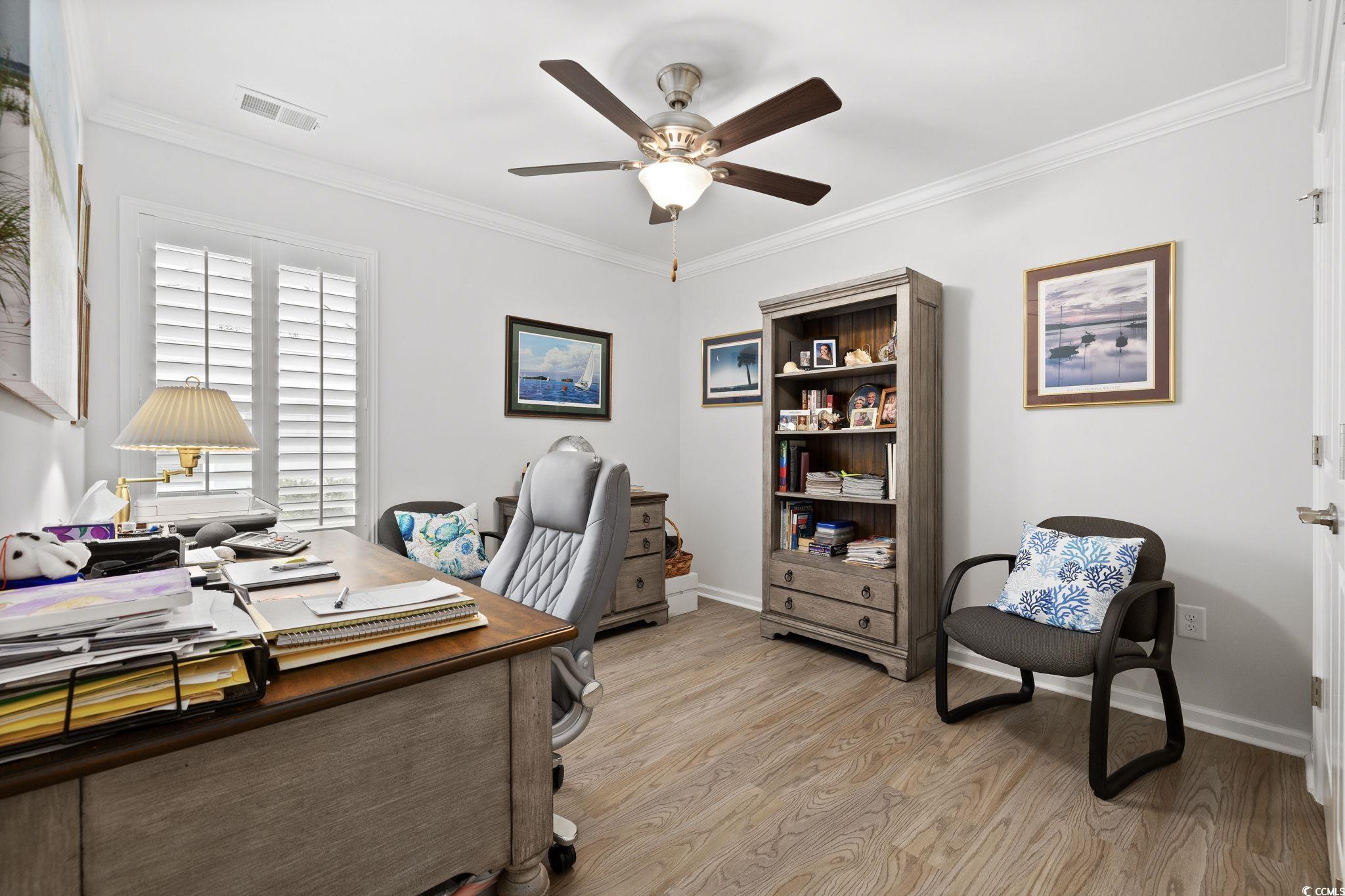 This beautiful garden home in a GATED ICW neighborhood is your dream come true! Queens Cove Garden Home community is surrounded by a nature preserve and walking trails, and each home has its own boat slip on the ICW! The 3 bedroom/2 bath END unit has lots of natural light, unlike the interior units that are in the majority here! Cathedral ceiling in living areas, granite countertops, stainless appliances, trey ceiling in the primary bedroom, screened porch and patio overlooking a pond, 2 car garage and floored attic storage, and many custom upgrades! Included are custom Plantation Shutters, custom cabinets in the primary bedroom walk-in closet, privacy shades on the porch, and so much more! Relax and enjoy the exterior landscaping and maintenance, gazebo and boat launch on the ICW, your ICW boat slip, irrigation, cable, internet, trash collection, pest control, gated security, boat/RV gated storage, and even property insurance, all covered by the HOA dues. Queens Cove Garden Homes is an exclusive community of only 16 units, surrounded by 55 acres of nature preserve, and the magnificent homes on the Battery on the Waterway. Come enjoy Myrtle Beachs most unique property, and the serenity and beauty of Queens Cove!