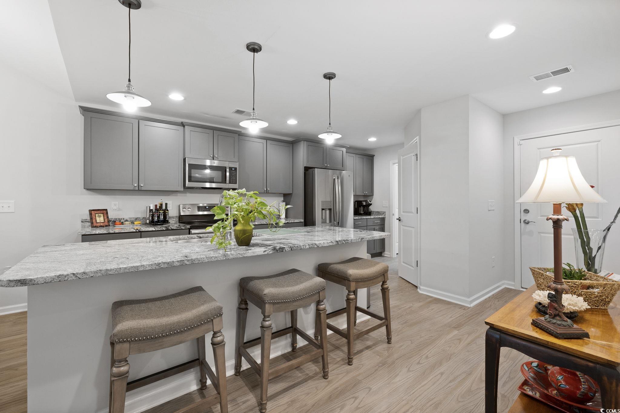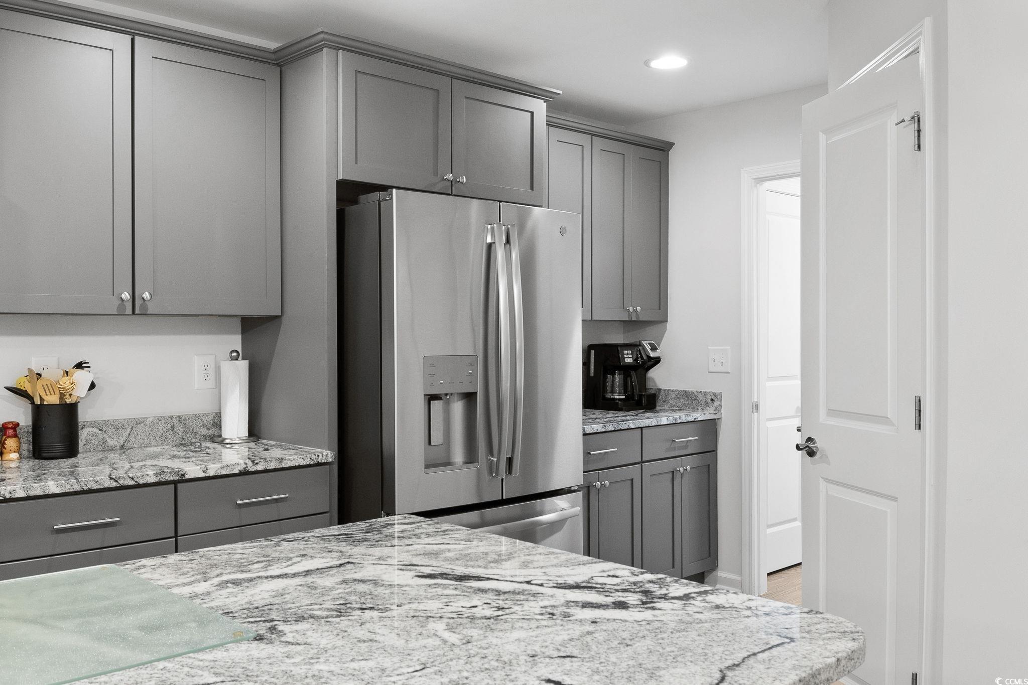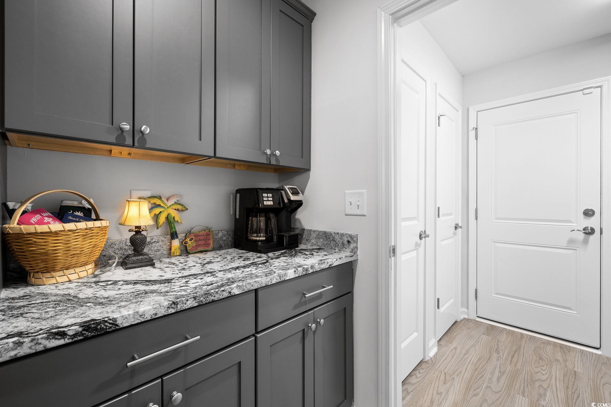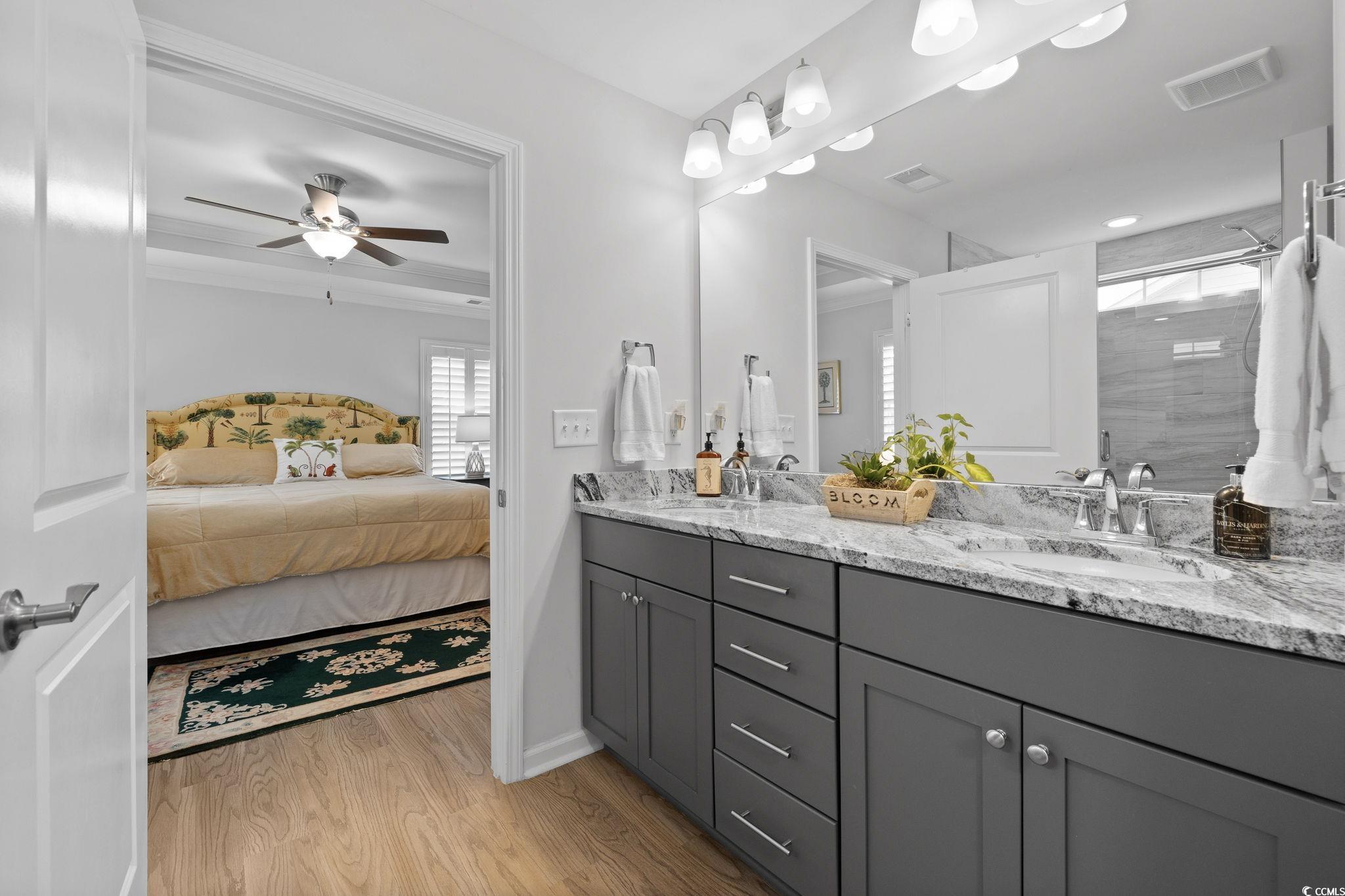 This beautiful garden home in a GATED ICW neighborhood is your dream come true! Queens Cove Garden Home community is surrounded by a nature preserve and walking trails, and each home has its own boat slip on the ICW! The 3 bedroom/2 bath END unit has lots of natural light, unlike the interior units that are in the majority here! Cathedral ceiling in living areas, granite countertops, stainless appliances, trey ceiling in the primary bedroom, screened porch and patio overlooking a pond, 2 car garage and floored attic storage, and many custom upgrades! Included are custom Plantation Shutters, custom cabinets in the primary bedroom walk-in closet, privacy shades on the porch, and so much more! Relax and enjoy the exterior landscaping and maintenance, gazebo and boat launch on the ICW, your ICW boat slip, irrigation, cable, internet, trash collection, pest control, gated security, boat/RV gated storage, and even property insurance, all covered by the HOA dues. Queens Cove Garden Homes is an exclusive community of only 16 units, surrounded by 55 acres of nature preserve, and the magnificent homes on the Battery on the Waterway. Come enjoy Myrtle Beachs most unique property, and the serenity and beauty of Queens Cove!