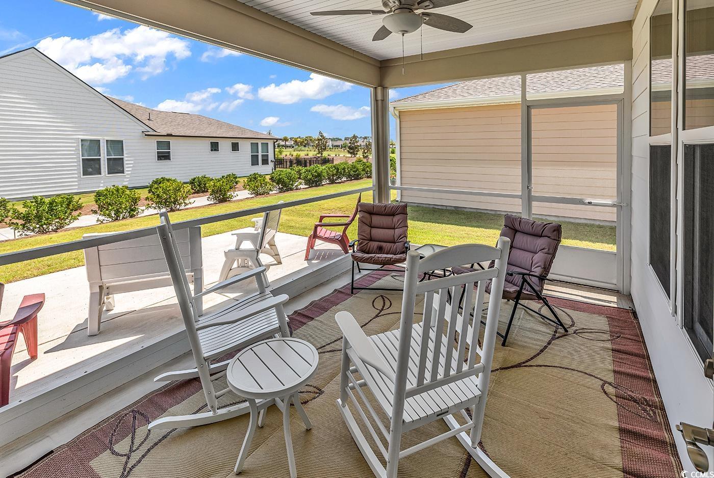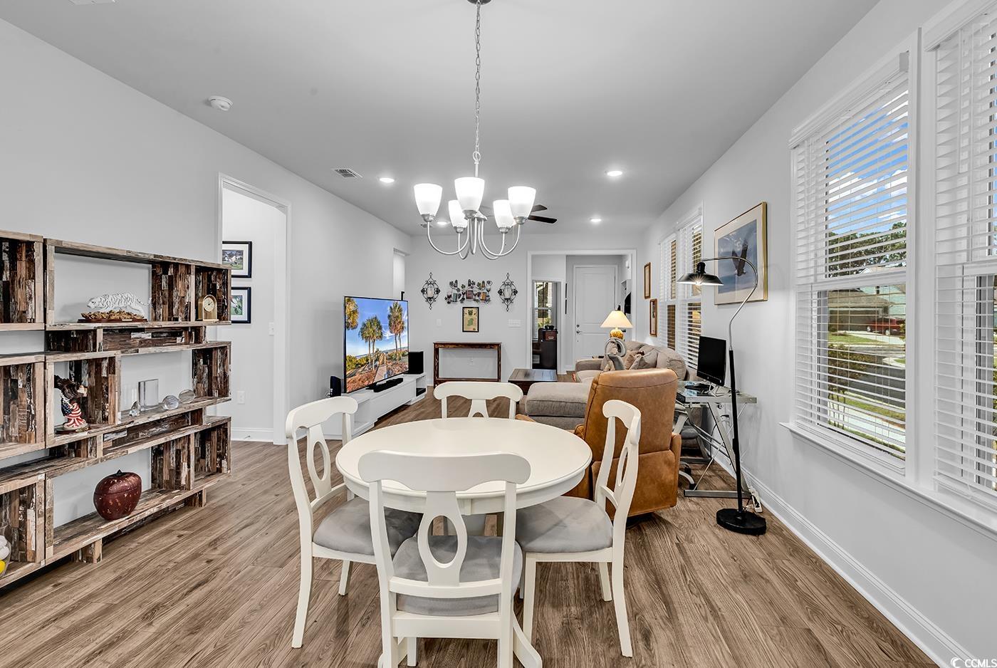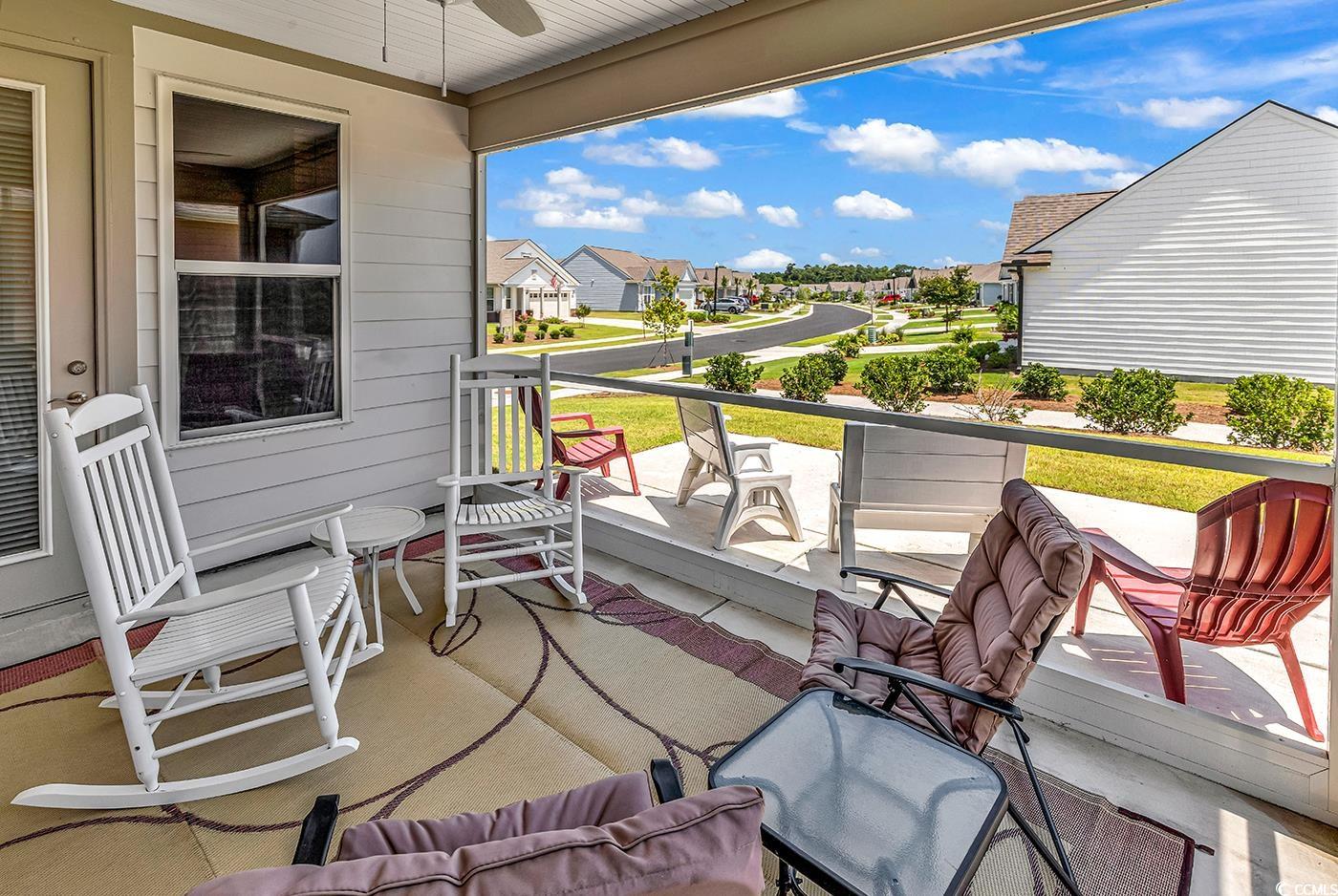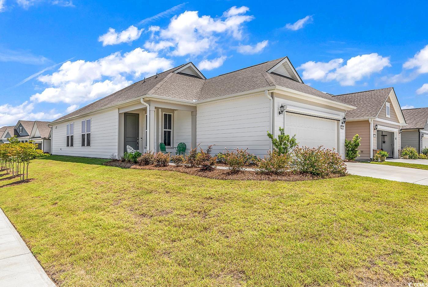 Del Webb North Myrtle Beach -- GREAT OPPORTUNTY!! Don't miss this move in ready home! Welcome to this beautiful Compass model home that is nearly new (just 2 years old).... you will appreciate all the special touches this immaculate home includes and love the location where you can enjoy all the onsite amenities AND golf cart to the beach! Living in the Del Webb North Myrtle Beach community (55+) offers unmatched amenities for resort style living all year long including resort style pool with cabanas, hot tubs and outdoor cooking space, indoor pool, well equipped fitness center, 8 pickleball courts, putting green and Bocce court. This home is situated on a corner lot with tons of windows providing great light throughout the home. The kitchen features, generous fresh white cabinets, plenty of counterspace, stainless steel appliances including built in oven and microwave, gas cooktop and refrigerator (all appliances convey) plus a huge island that is perfect for entertaining or as a casual breakfast bar. Flooring includes easy care Laminate wood floors, ceramic tile in bathrooms and laundry room and cozy carpet in the bedrooms. The den/flex room is ideal for a small office or den or additional spot for guests. Primary bedroom with plenty of light opens to the primary bath with dual sinks and a convenient ceramic tile walk in shower. The walk in closet offers plenty of space for all your clothing and shoes! Great room and bedrooms include quality overhead fans, brushed nickel hardware and upgraded trim throughout. Enjoy relaxing in the screened in patio and with a walking path just outside the back of the home means an easy walk to enjoy all of the amenities. This home does include less than 2 year old Whirlpool appliances; all kitchen appliances and washer and dryer come with a pre paid 5 year warranty -with 3 years remaining for new owners. In addition the windows have been professionally tinted to repel harsh sunlight and yet still allow light in. The garage features an epoxied floor, shelving units that remain and a pull down attic with storage. An electronic screen door in the garage provides privacy and air ventilation in more moderate weather. There is an irrigation system as well as a tankless hot water heater. The HOA includes landscaping yard care, all amenities, High Speed WIFI and cable plus a full time Lifestyle Director who coordinates a full calendar of activities, clubs, classes, parties and events. You'll feel like your on vacation when you live here! Just minutes to the beach with easy golf cart access. Be sure to check out this home soon as it is ready for new owners to enjoy all this community has to offer.