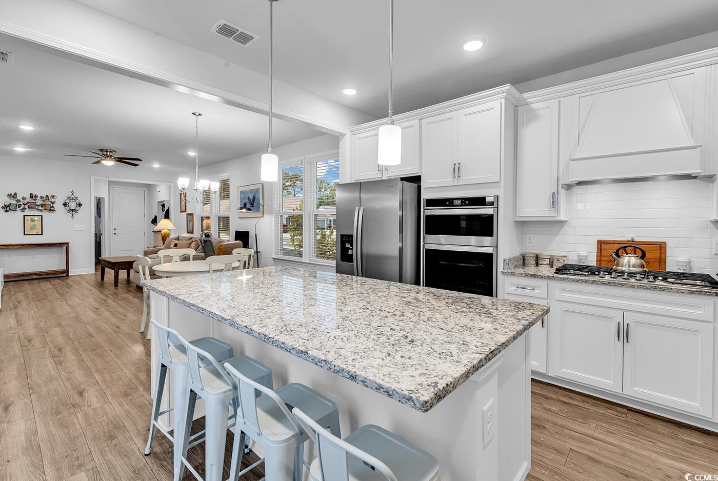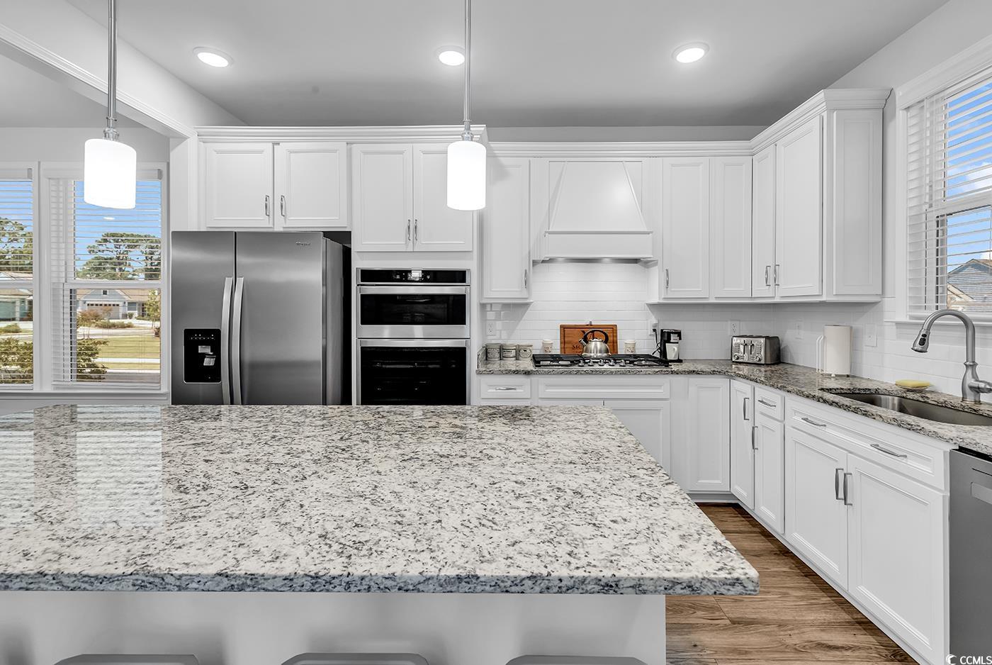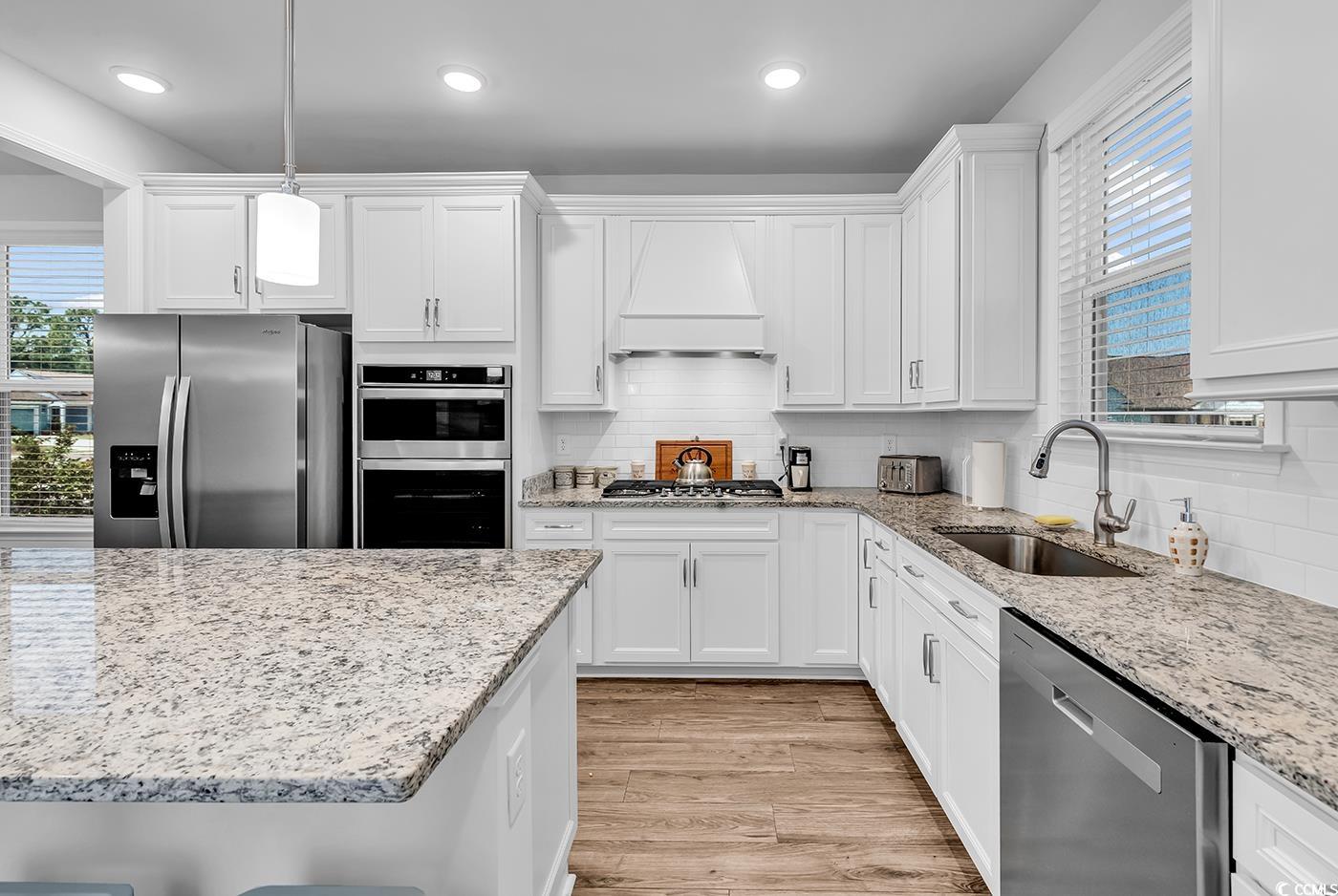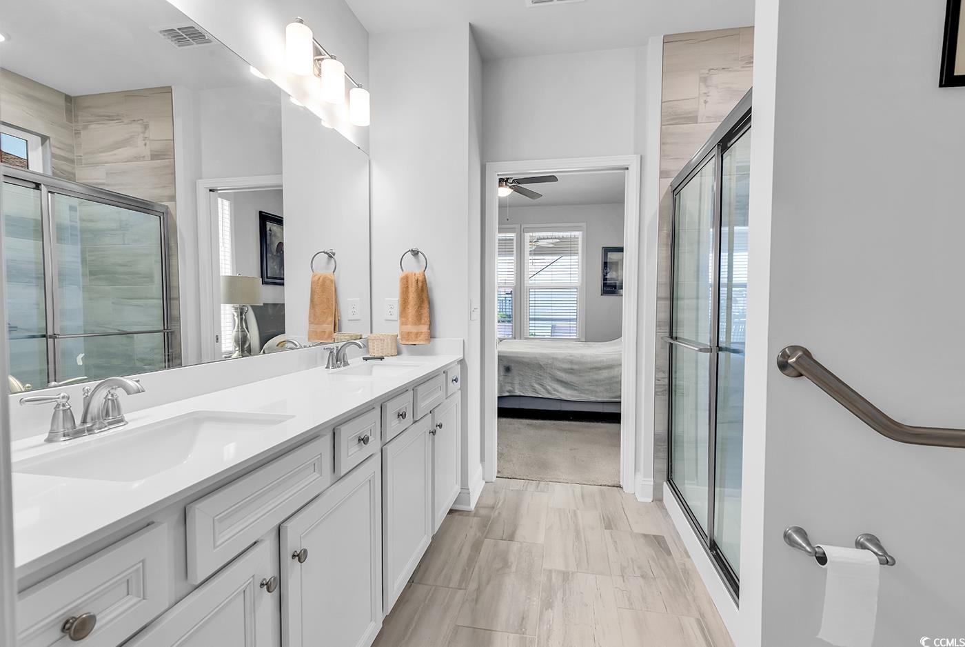 Del Webb North Myrtle Beach -- GREAT OPPORTUNTY!! Don't miss this move in ready home! Welcome to this beautiful Compass model home that is nearly new (just 2 years old).... you will appreciate all the special touches this immaculate home includes and love the location where you can enjoy all the onsite amenities AND golf cart to the beach! Living in the Del Webb North Myrtle Beach community (55+) offers unmatched amenities for resort style living all year long including resort style pool with cabanas, hot tubs and outdoor cooking space, indoor pool, well equipped fitness center, 8 pickleball courts, putting green and Bocce court. This home is situated on a corner lot with tons of windows providing great light throughout the home. The kitchen features, generous fresh white cabinets, plenty of counterspace, stainless steel appliances including built in oven and microwave, gas cooktop and refrigerator (all appliances convey) plus a huge island that is perfect for entertaining or as a casual breakfast bar. Flooring includes easy care Laminate wood floors, ceramic tile in bathrooms and laundry room and cozy carpet in the bedrooms. The den/flex room is ideal for a small office or den or additional spot for guests. Primary bedroom with plenty of light opens to the primary bath with dual sinks and a convenient ceramic tile walk in shower. The walk in closet offers plenty of space for all your clothing and shoes! Great room and bedrooms include quality overhead fans, brushed nickel hardware and upgraded trim throughout. Enjoy relaxing in the screened in patio and with a walking path just outside the back of the home means an easy walk to enjoy all of the amenities. This home does include less than 2 year old Whirlpool appliances; all kitchen appliances and washer and dryer come with a pre paid 5 year warranty -with 3 years remaining for new owners. In addition the windows have been professionally tinted to repel harsh sunlight and yet still allow light in. The garage features an epoxied floor, shelving units that remain and a pull down attic with storage. An electronic screen door in the garage provides privacy and air ventilation in more moderate weather. There is an irrigation system as well as a tankless hot water heater. The HOA includes landscaping yard care, all amenities, High Speed WIFI and cable plus a full time Lifestyle Director who coordinates a full calendar of activities, clubs, classes, parties and events. You'll feel like your on vacation when you live here! Just minutes to the beach with easy golf cart access. Be sure to check out this home soon as it is ready for new owners to enjoy all this community has to offer.