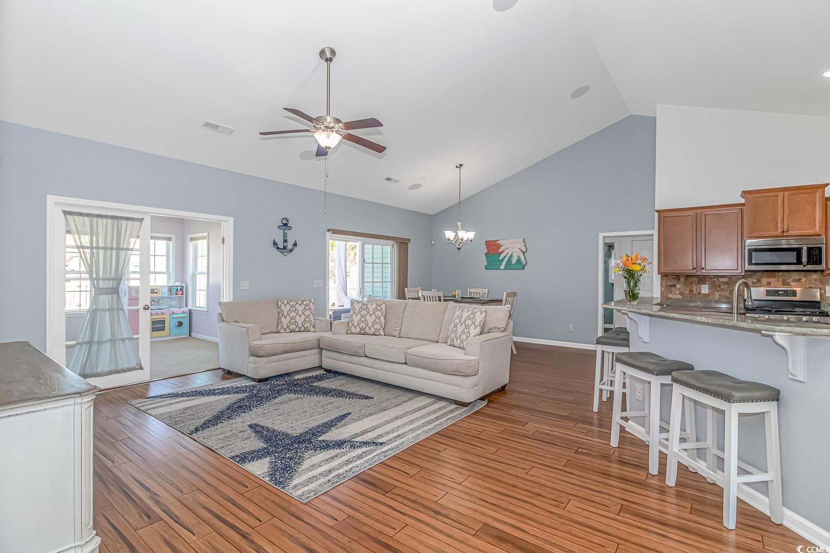 This well taken care of 4-bed and 2-bath home is ready for move-in offering plenty of upgrades and flexible living space with both a Carolina Room and 4th bedroom over the garage. With a convenient location to all that Conway and Myrtle Beach has to offer, this quiet walkable community of Baron Bluffs North offers tremendous value. Between the quality of houses by local builder, Beverly Homes, and being perfectly situated between International Drive and Highway 22 offering quick access to the beach, schools, medical facilities and all the amenities you could think of. Beautifully landscaped and equipped with natural gas, this airy and open split bedroom floor plan is filled with natural light and upgrades, featuring granite countertops, stainless steel appliances, fenced backyard, cathedral ceilings, sprinkler system, extra-large grilling patio, and a mudroom from the garage through the laundry room. Barons Bluff North is a natural gas community offering a neighborhood pool and sidewalks throughout the well-maintained community. Schedule your private tour today before it's too late!