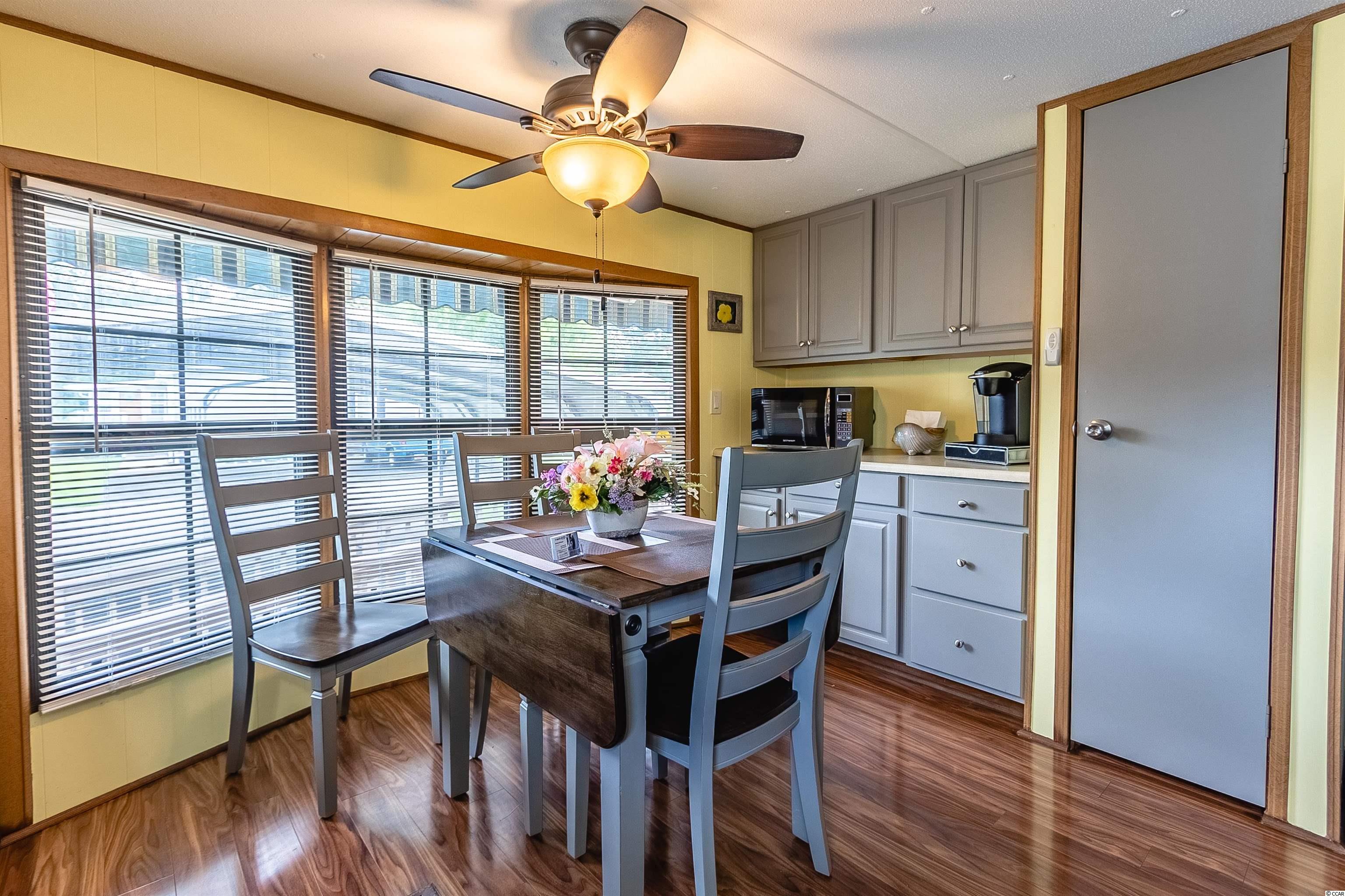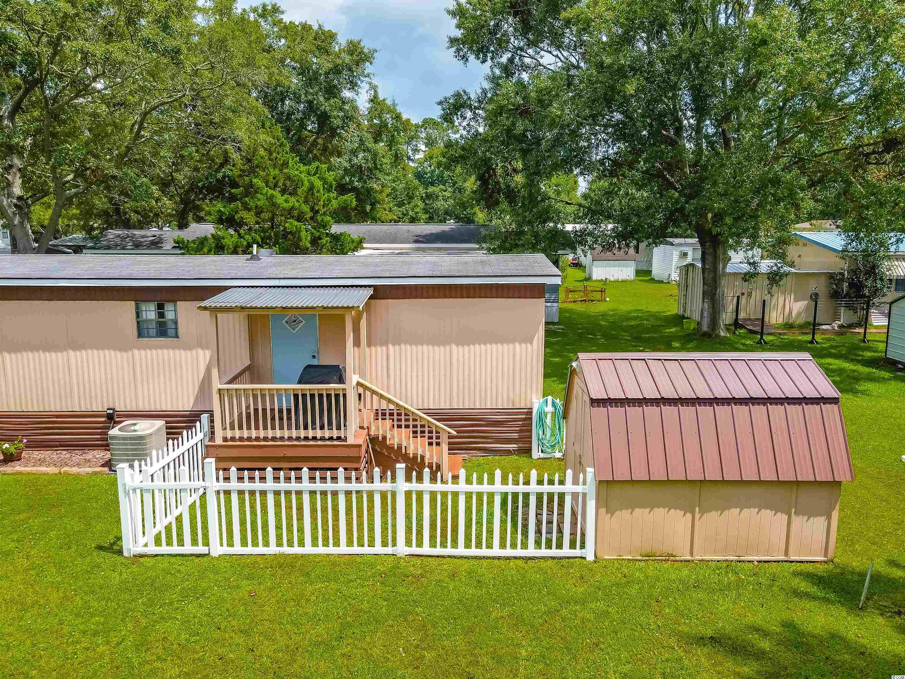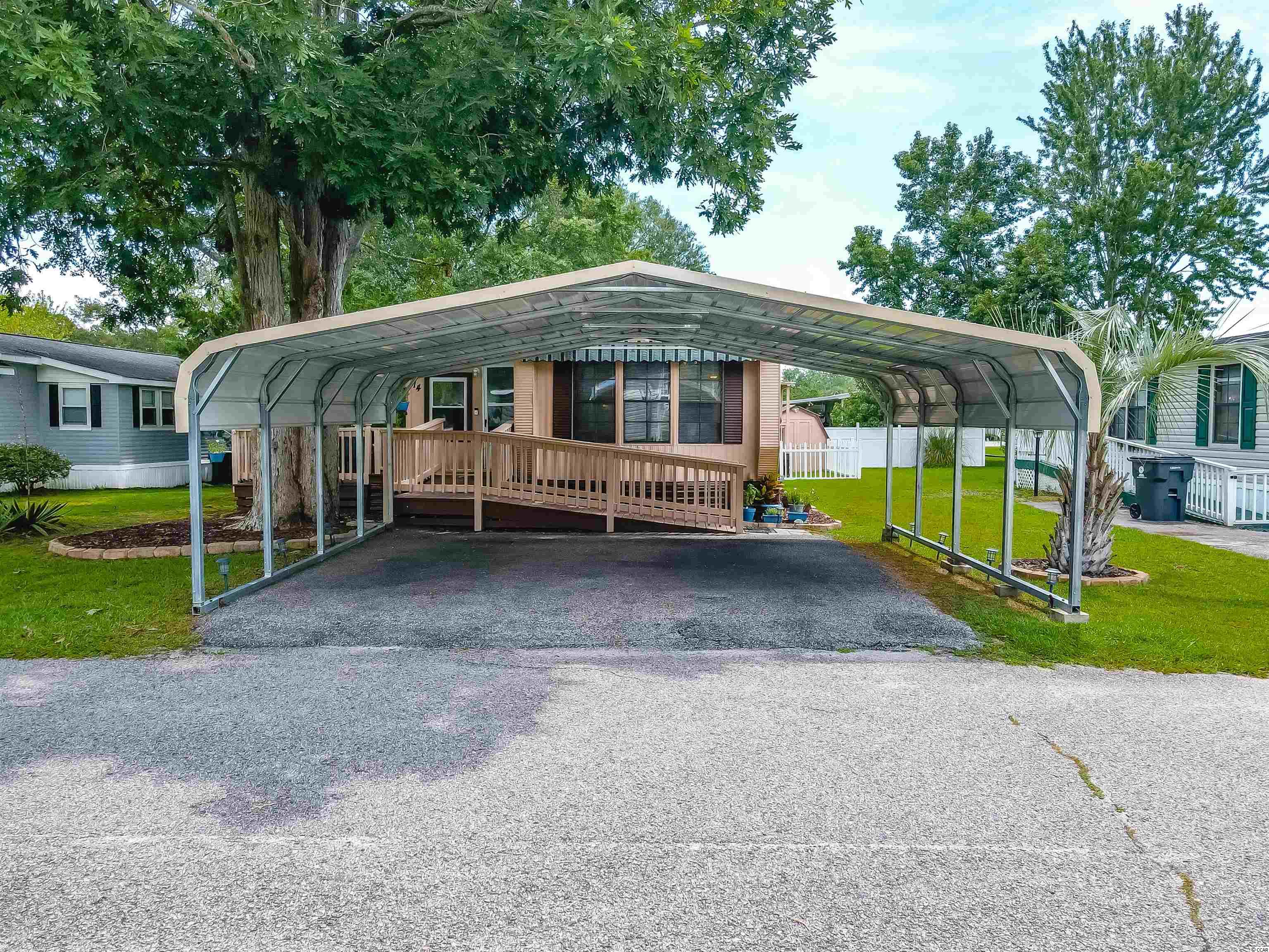 Stunning Murrells Inlet Home NOW available in the Captains Cove Community a few miles North of Pawleys and a Stones throw to the Marshwalk! This beautiful charming home features 2 bedrooms, 1 massive bathroom and 1,252 sq ft of indoor living space and much more of outdoor living fun! The floor plan features an open kitchen and living room space, high ceilings, bright windows and durable vinyl flooring that resemble hardwoods throughout. The kitchen comes equipped with black and stainless steel appliances, wooden cabinets, plenty of counter space, and a very spacious sun room/office space. During the summer, entertain on the deck, in the back yard or relax near the sparkling community pool or head to the Inlet and grab a bite to eat at one of our many water front dining experiences. This home also comes equipped with a shed, fenced in back yard, landscapping and a 2 car parking space under an extra large carport for private off street parking!!! All furniture and appliances to convey with purchase of the home! Located in the highly coveted Coastal town of Murrells Inlet-It wont last long. Call today to schedule an appointment to come see it! {Captain's Cove is a 55+ Community. No Rental Allows. Motorcycles Welcome!}