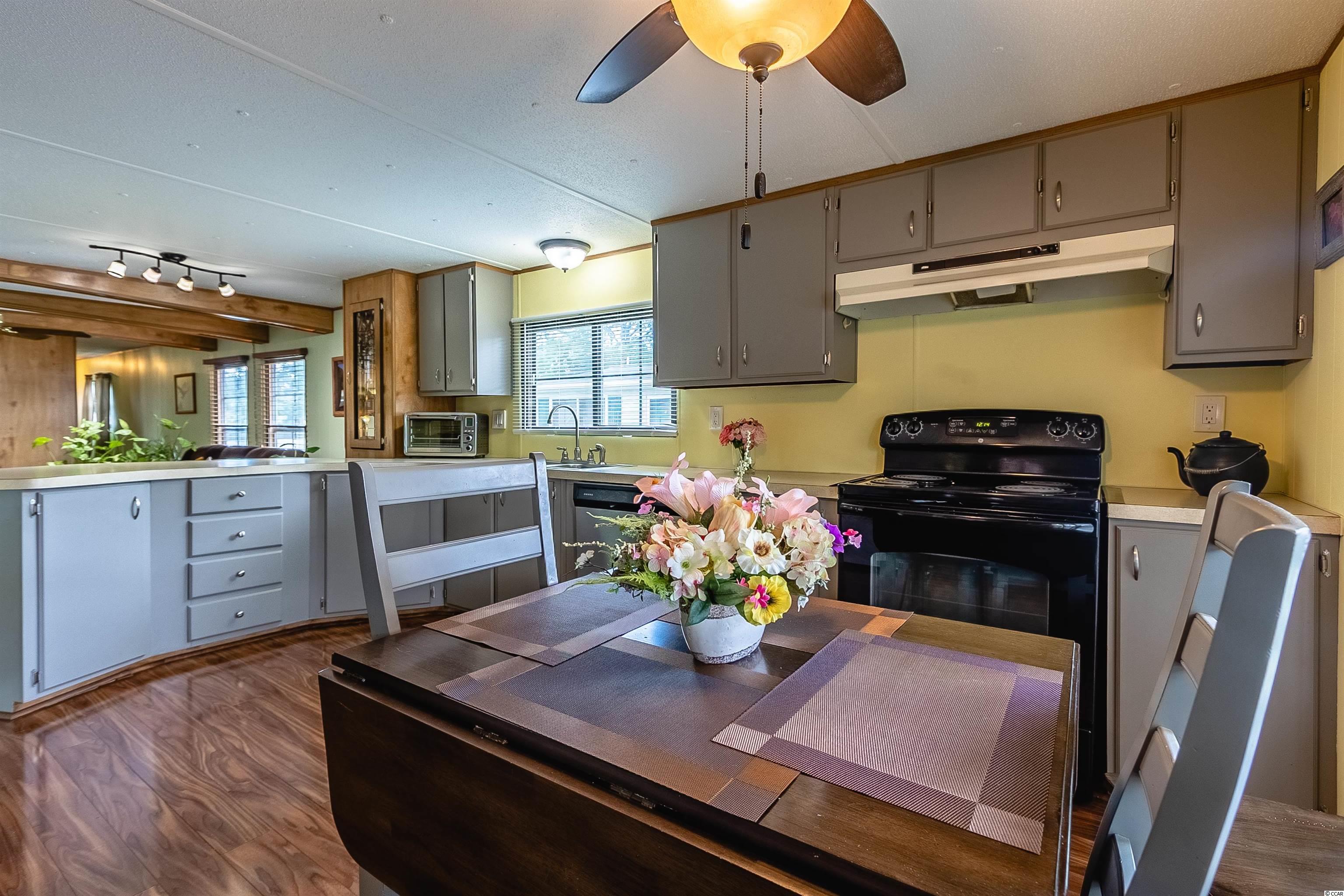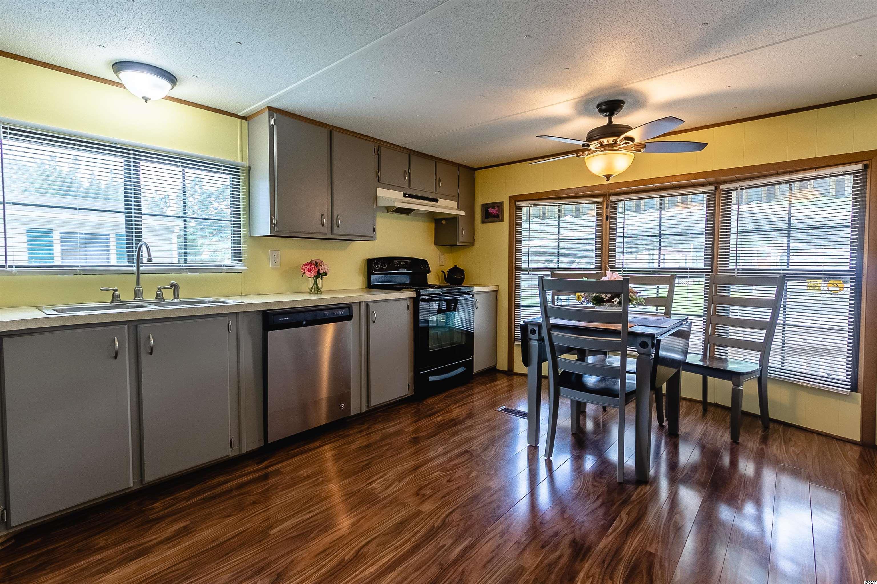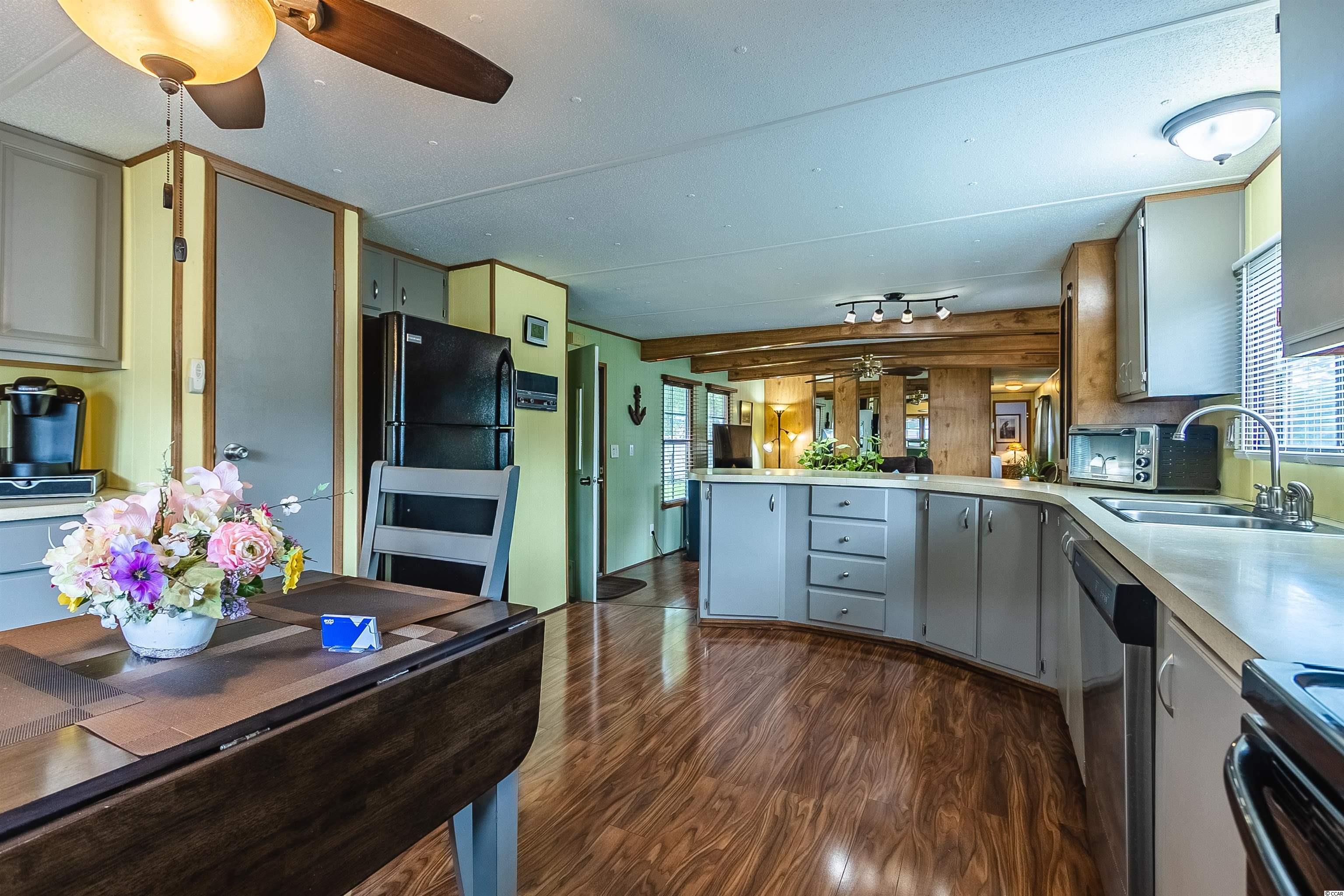 Stunning Murrells Inlet Home NOW available in the Captains Cove Community a few miles North of Pawleys and a Stones throw to the Marshwalk! This beautiful charming home features 2 bedrooms, 1 massive bathroom and 1,252 sq ft of indoor living space and much more of outdoor living fun! The floor plan features an open kitchen and living room space, high ceilings, bright windows and durable vinyl flooring that resemble hardwoods throughout. The kitchen comes equipped with black and stainless steel appliances, wooden cabinets, plenty of counter space, and a very spacious sun room/office space. During the summer, entertain on the deck, in the back yard or relax near the sparkling community pool or head to the Inlet and grab a bite to eat at one of our many water front dining experiences. This home also comes equipped with a shed, fenced in back yard, landscapping and a 2 car parking space under an extra large carport for private off street parking!!! All furniture and appliances to convey with purchase of the home! Located in the highly coveted Coastal town of Murrells Inlet-It wont last long. Call today to schedule an appointment to come see it! {Captain's Cove is a 55+ Community. No Rental Allows. Motorcycles Welcome!}