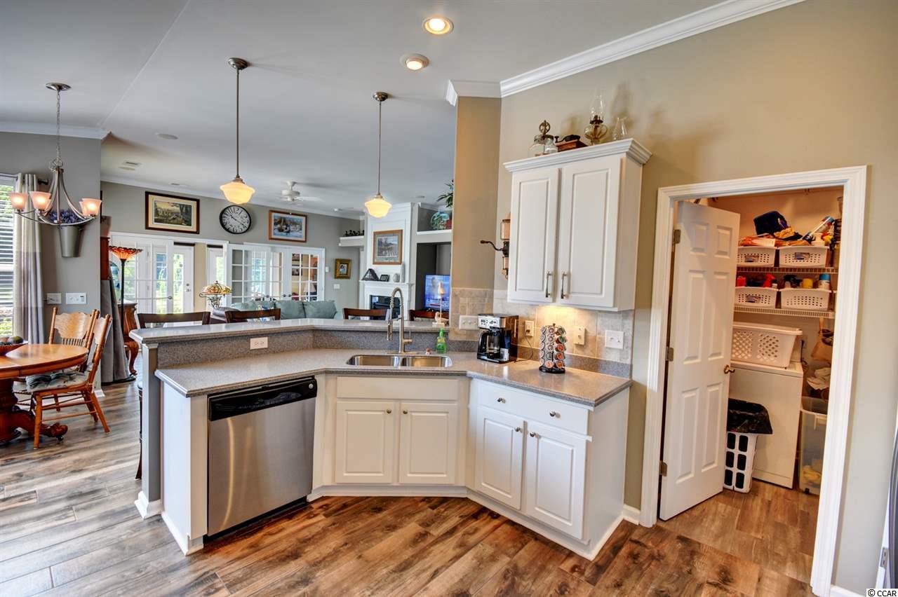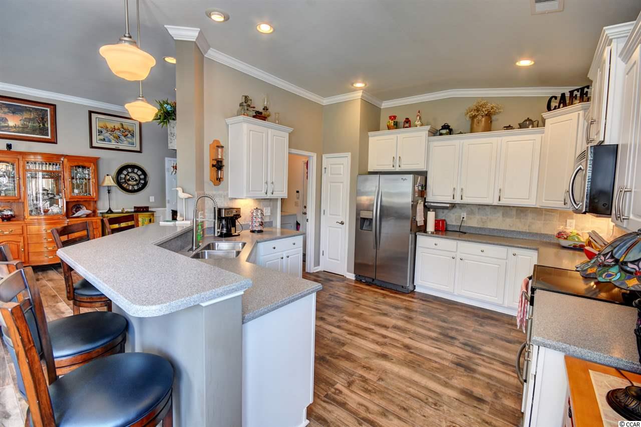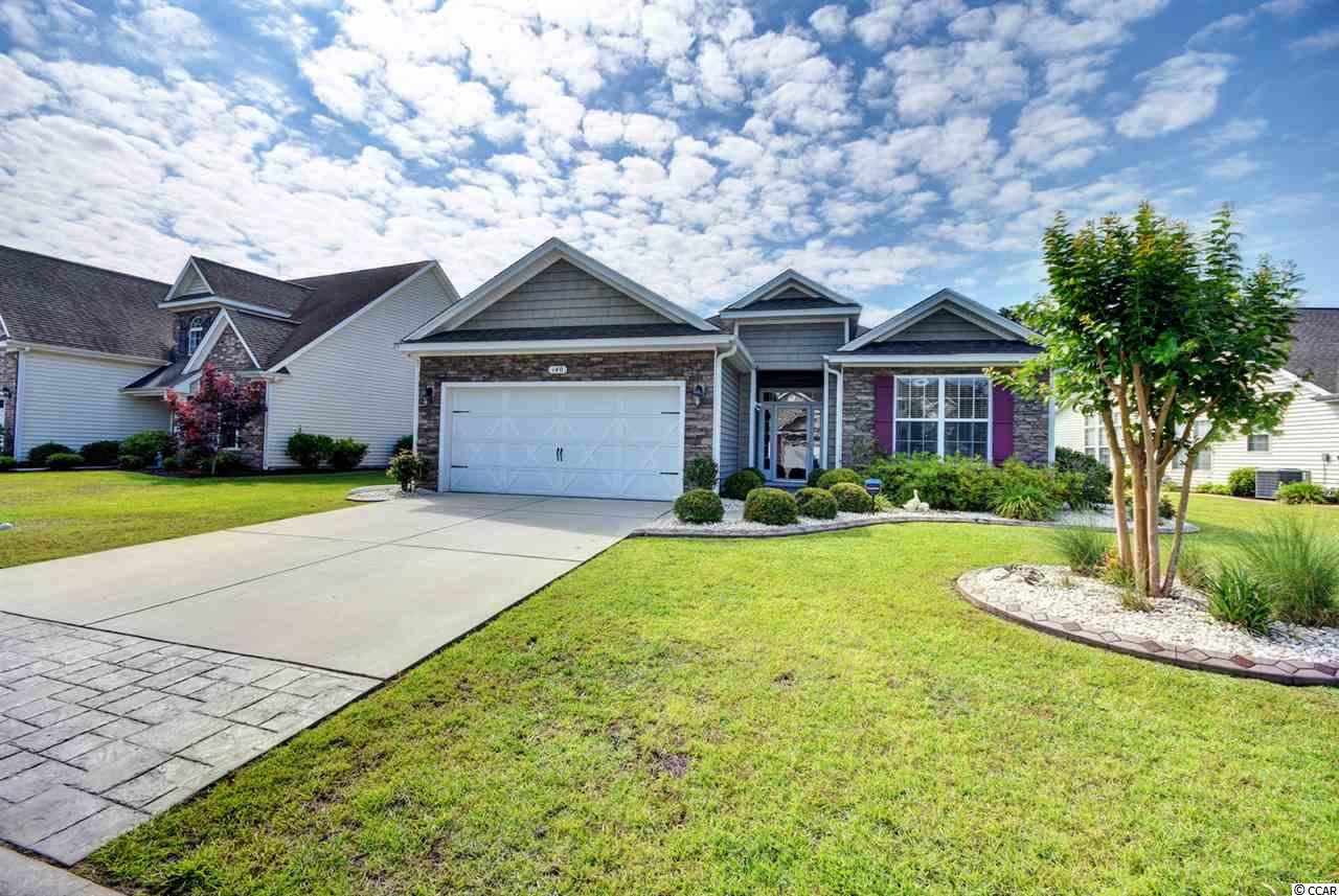 Gorgeous Home in Myrtle Trace Grande! A MUST SEE! Before entering the front door you immediately recognize the time and money that has gone into this home. From the upgraded Craftsman Style Stone front to the concrete curbing around the flower beds and irrigation system, this house has been upgraded both inside and out! The front entrance has an upgraded glass front door and added storm door with a warm ""Welcome"" engraving. As one of the top floorplans, this ""Eaton"" plan gives you the openness, size, and one-level living most people are looking for. Whether your relaxing in the family room, making dinner in the kitchen, or reading a book in the Carolina Room (Sunroom), this lake front house seems to fit every ones wants and needs. This home has upgraded 8'x48"" ""wood-style"" Tile flooring throughout the entire home (Except the bathrooms-Different Tile Flooring-and the front bedroom), upgraded faucets, and 2 sets of brand new Glass French Doors leading to the back patio (Has electrical-powered Awning to cover/uncover back patio). The open Family Room has 10' ceilings, surround sound and a Fireplace. The Kitchen is loaded with upgrades, including upgraded staggered cabinets and handles, stainless steel appliances, Corian counter-tops, and beautiful step-up breakfast bar separating it from over-looking the family room. Moving through the family room, the private Master Bedroom has tray ceilings, large walk in master closet, added side window for more natural light, and a beautiful master bath with his/her sink and separate jetted-tub and shower! The other two bedrooms are toward the front of the house and both include ceiling fans and closets. Exterior features include irrigation system, gutters, and concrete curbing around the flower beds. Other Upgrades include: Generator plug, surge suppressor, and pull down attic storage. This house is one of a kind and a must see!
