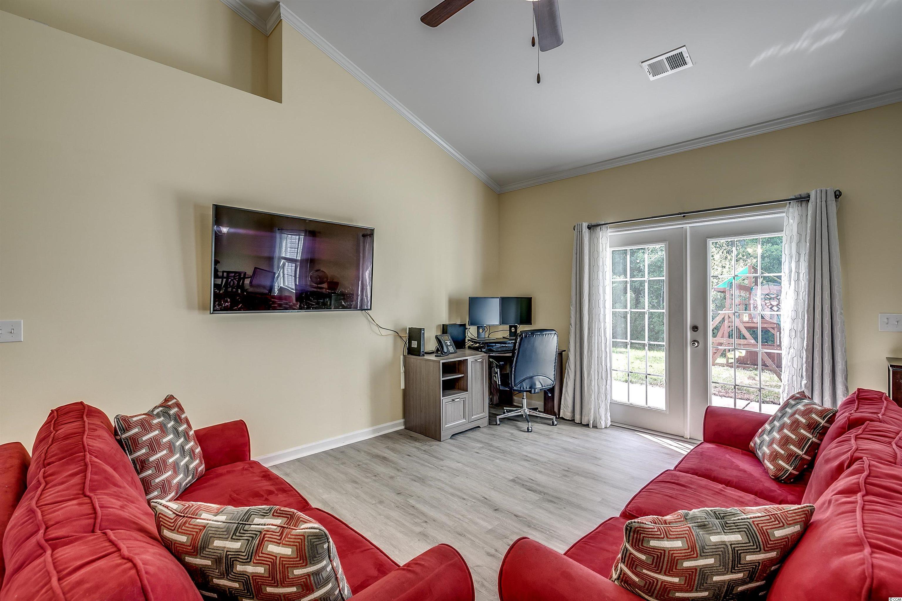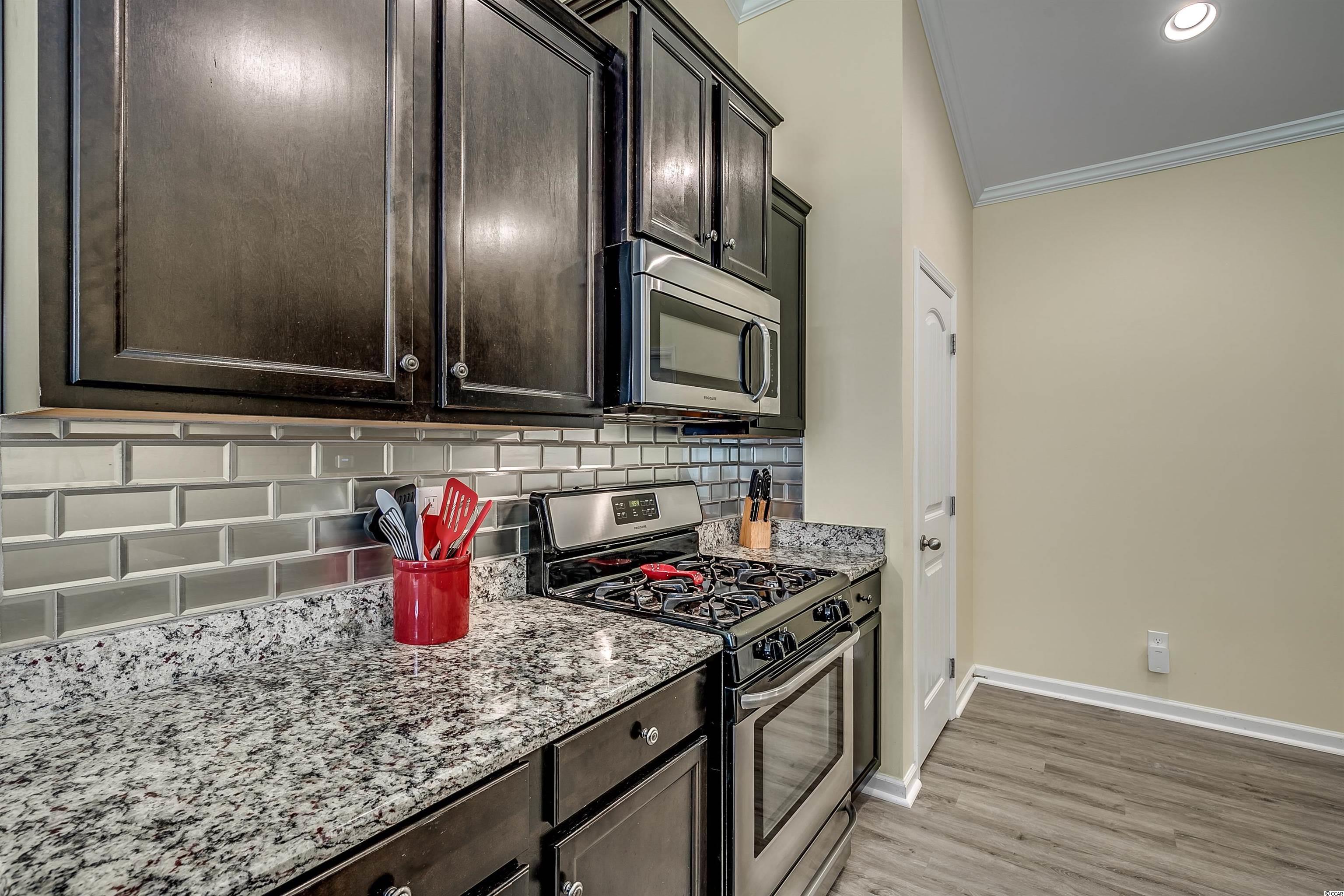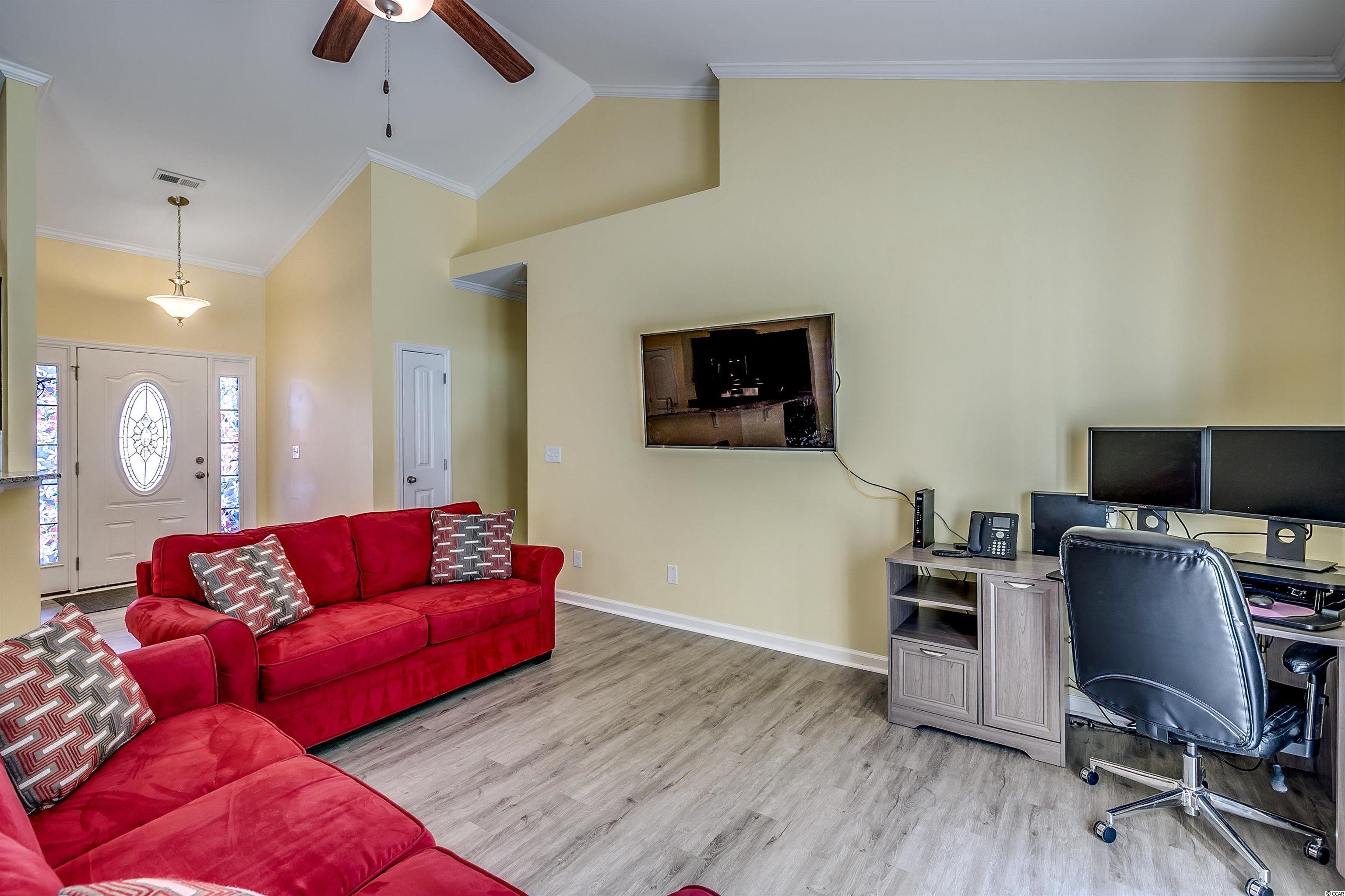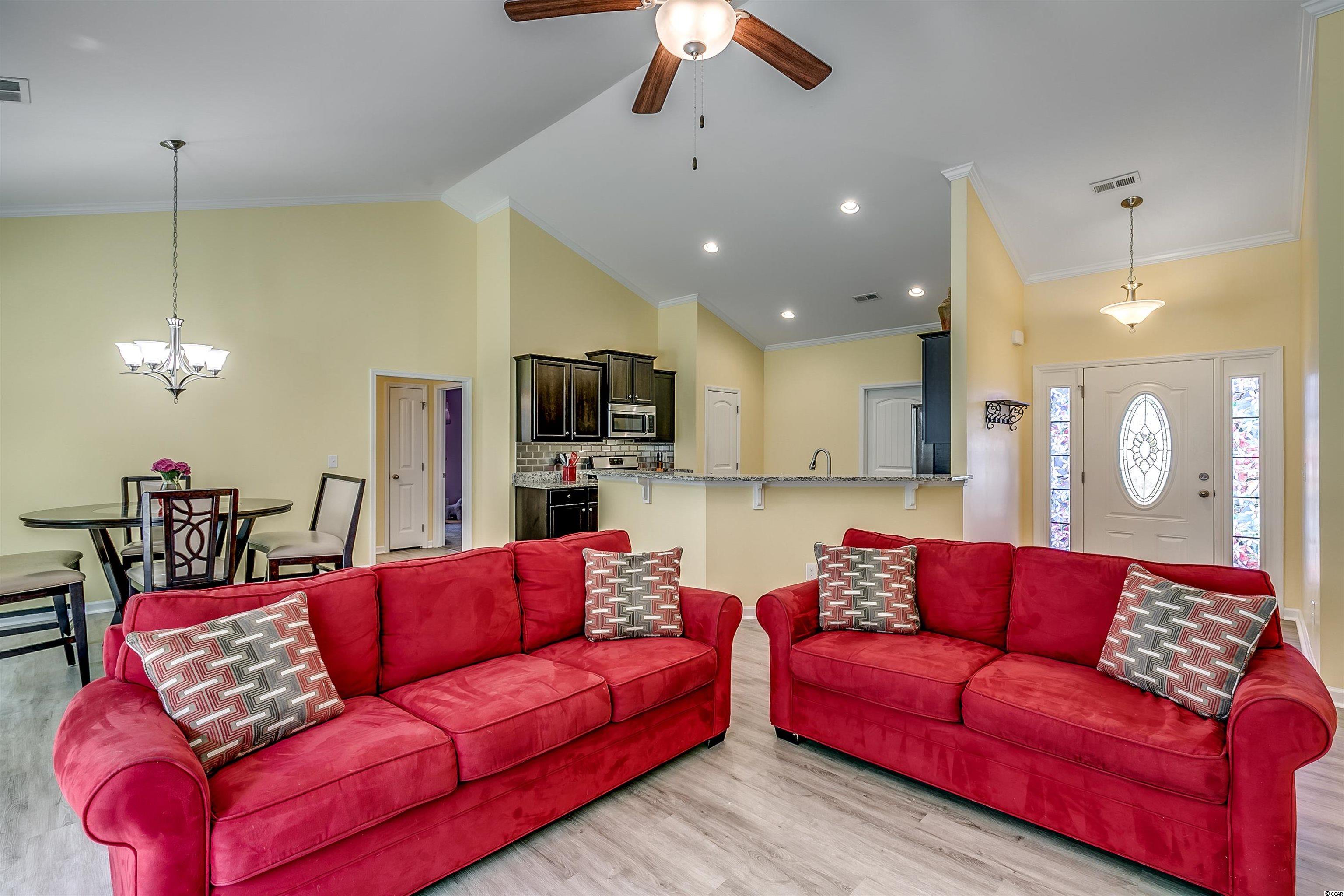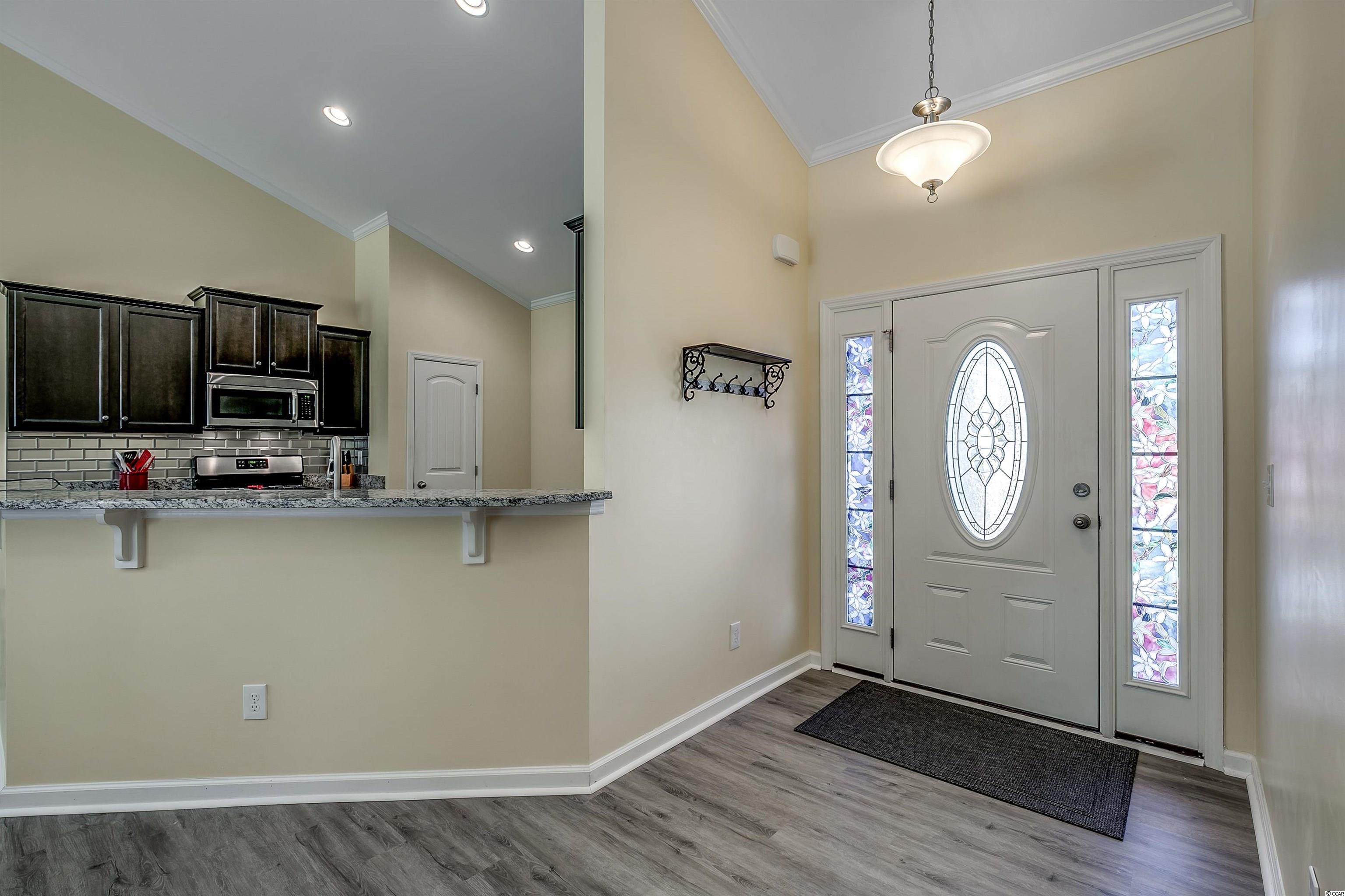 Welcome home to this lovely 3 bedroom, 2 full bath home, with a Bonus Room, in the Barons Bluff North community in Conway! The first thing you will notice when you enter is the brand new LVP flooring throughout the entire home except for the bedrooms. This home features an open living and dining area with plenty of natural light, crown moulding throughout, cathedral ceilings, a modern kitchen with granite counters, stainless steel appliances and beautiful upgraded birch cabinets. This natural gas home features a tankless water heater and gas range. The first-floor master bedroom offers a ceiling fan and a private full bath with a dual sink vanity, a 5' walk-in shower, and a large walk-in closet. The other two first-floor bedrooms include ceiling fans and share access to the second full bath. Upstairs is a spacious bonus room and an extra-large walk-in closet. The homes exterior features an inviting and charming front porch and an extended patio in the back, which backs up to a wooded area that offers tremendous privacy. Added benefits are an electric portable generator hook up to the breaker box, in case of a power outage, and an irrigation system. The roof has a 50-year roofing system warranty. Barons Bluff North residents enjoy a community pool. Barons Bluff North is an unmatched location in Conway, with very convenient access to dining, shopping, and all that Conway and Myrtle Beach have to offer and just a short ride to the beach! Dont wait to see this beauty because it will not last long!