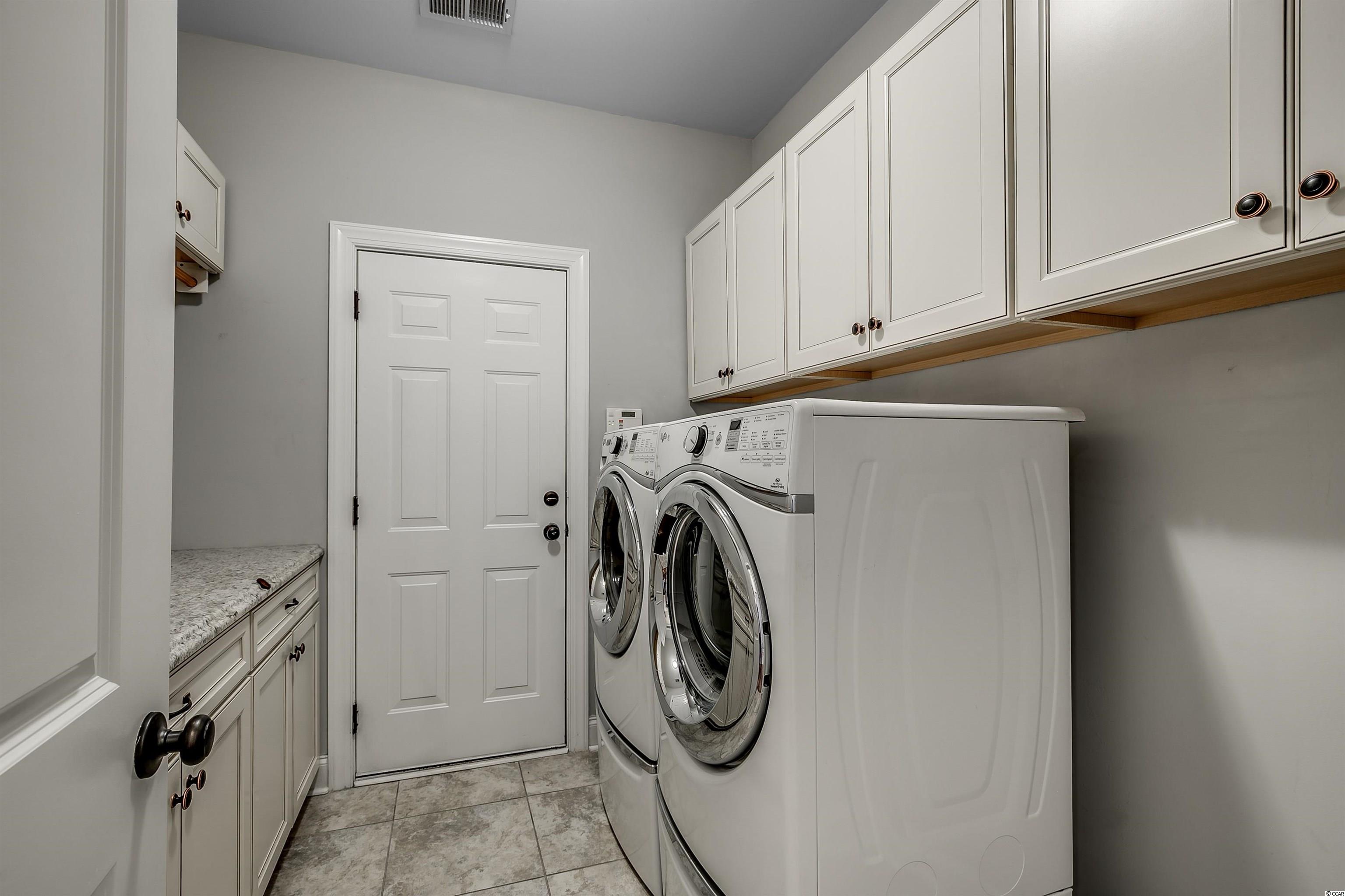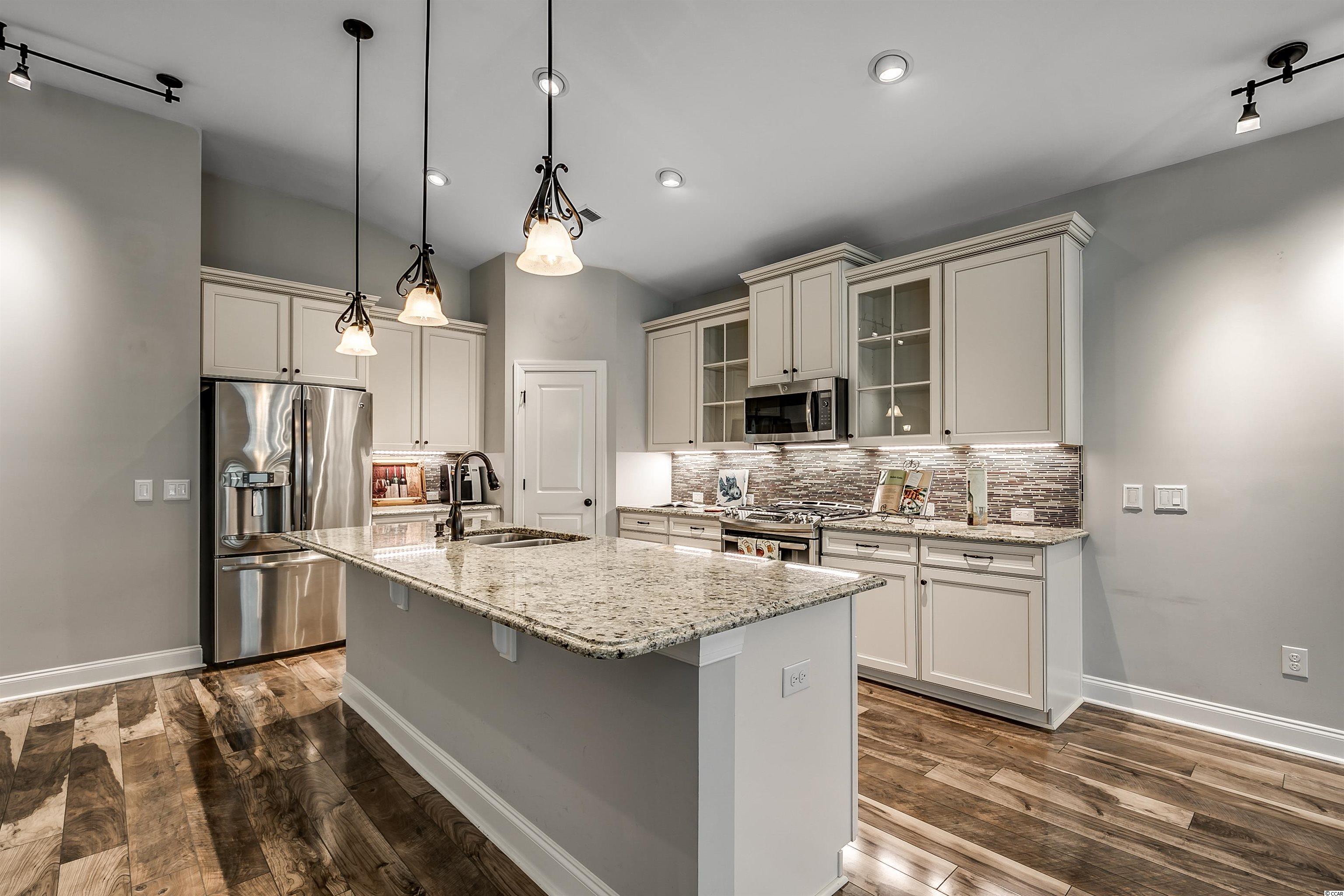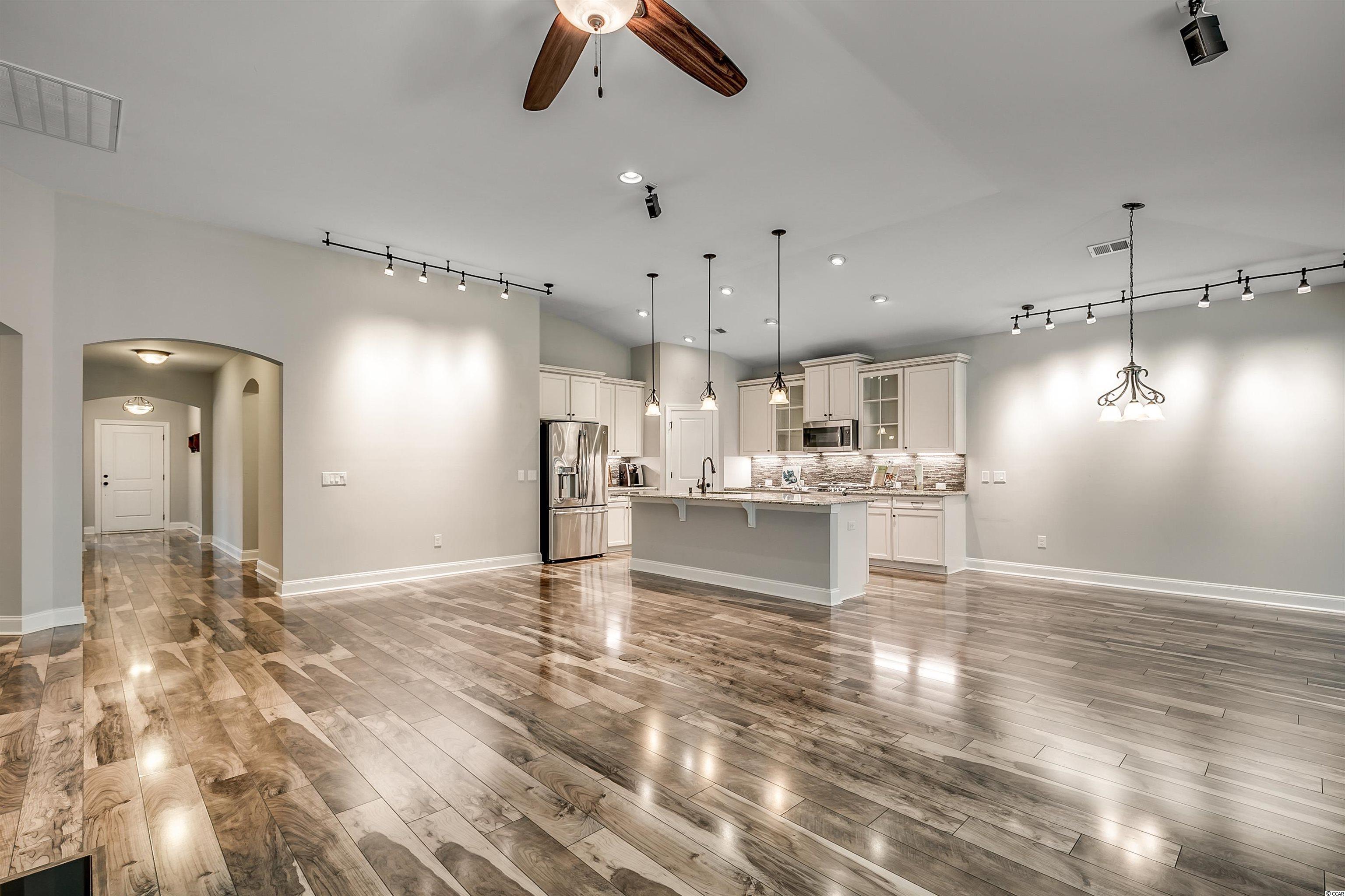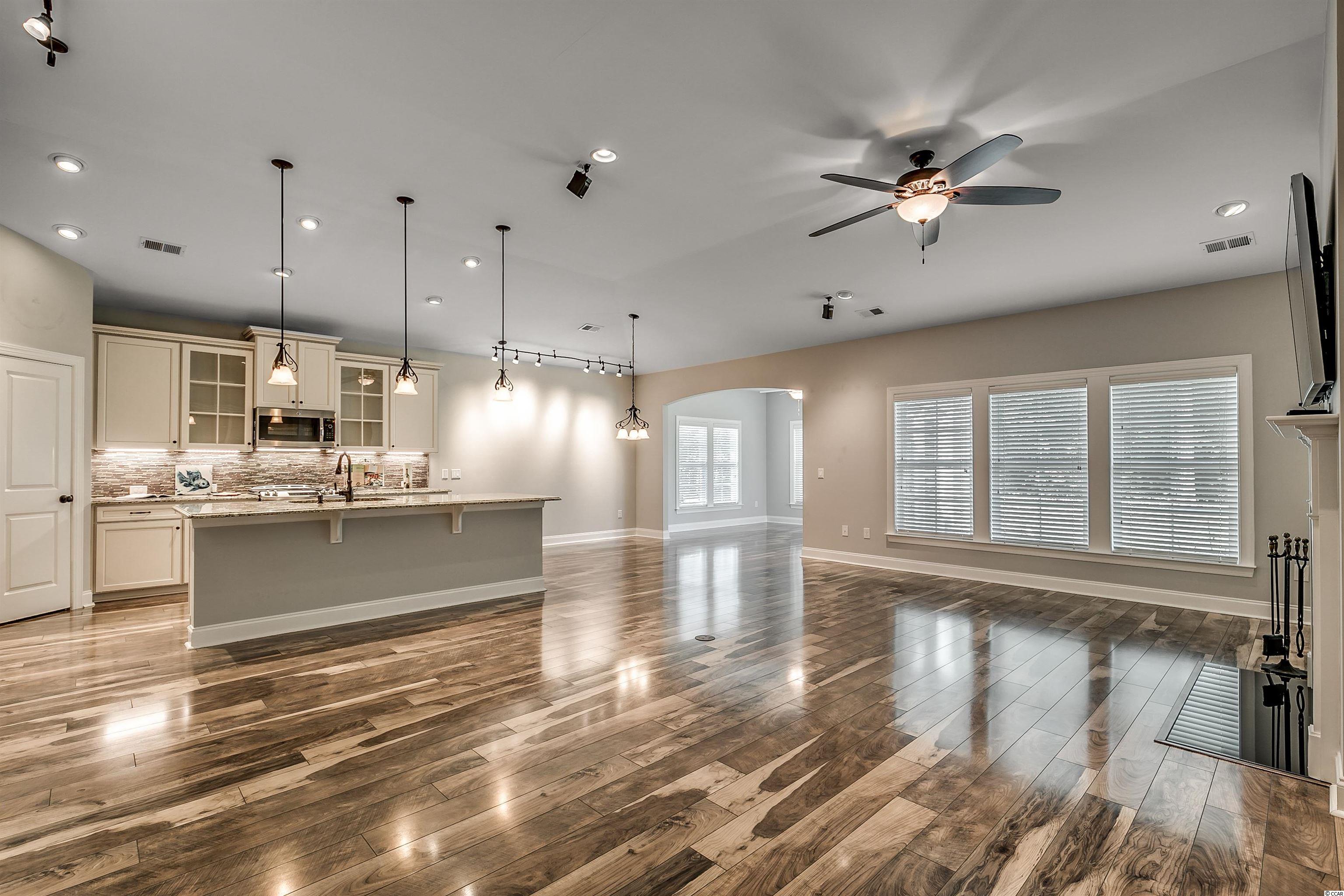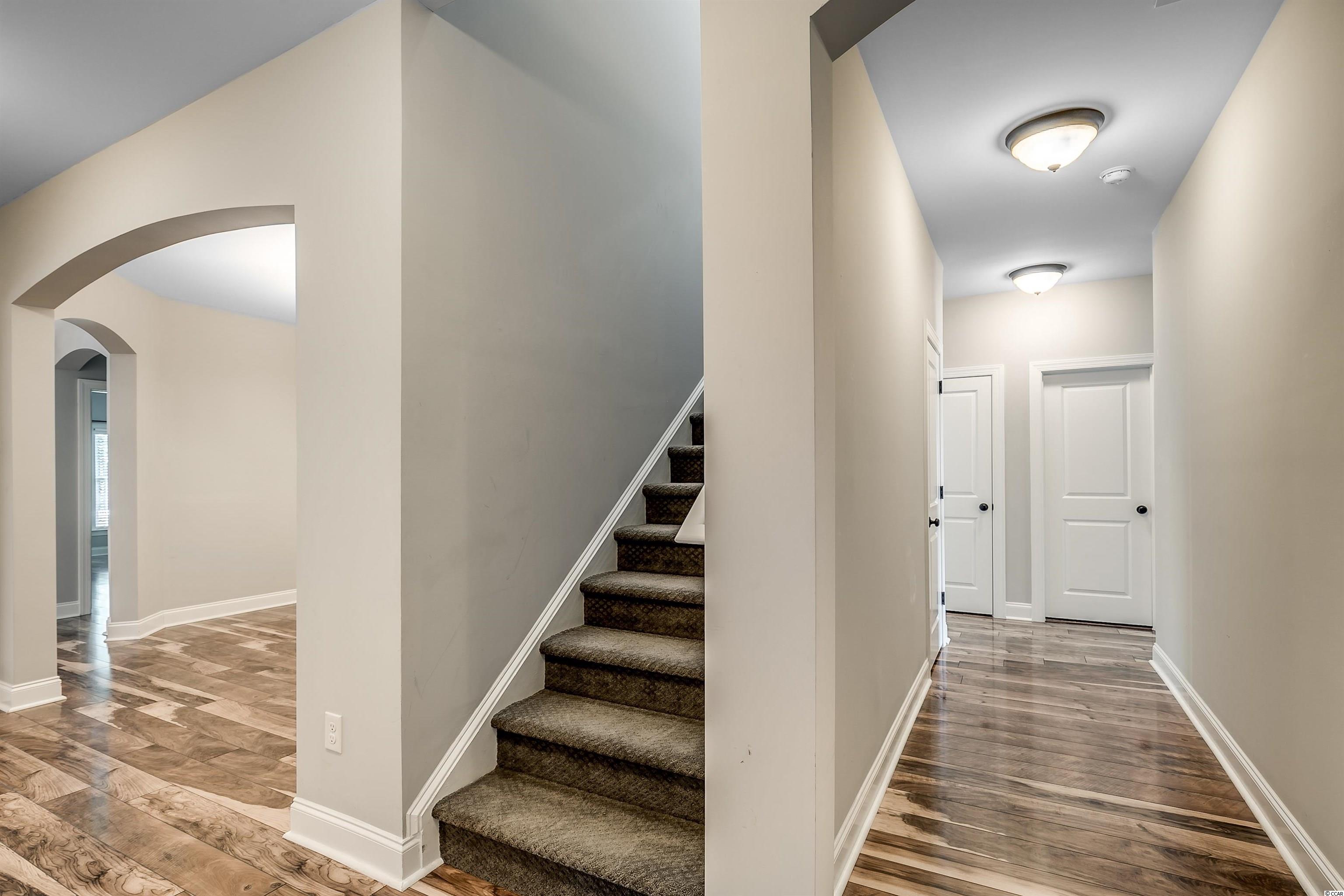 Located on a large, beautifully landscaped corner homesite this 3 bedroom/ 3 bath home features all bedrooms on the first floor with the addition of a 22 x 15' bonus room upstairs providing flexible space as an exercise, media, or craft room. An extra-large Tandem garage is perfect for storage or workshop. Natural gas is available for stove, fireplace, hot water heater and line for grill. A spacious low country porch welcomes you and provides a relaxing spot for morning coffee, reading or visiting with the neighbors! This popular plan also includes an office, formal dining, open kitchen with breakfast flowing into a vaulted family room with natural gas fireplace and built ins which opens to the 12 x 13 sunroom. The kitchen offers 42 "" glazed cabinets with rope molding, granite counters, tile backsplash, stainless appliances, under cabinet lights and walk in pantry. Laminate flooring runs from the entry foyer through the office, dining, great room and owner's suite. Arches, vaulted, and tray ceilings enhance this well-designed plan. The owner's suite is separate from the guest rooms and includes a tray ceiling, ceiling fan, large Walkin closet and bath with tile shower and double sinks. Guest rooms are located down a separate hallway and share a bath with tub/shower while another full bath is nearby. Laundry room including a washer and dryer, pull down garage storage, custom landscape lighting, stones in the plant beds, inside speakers a gated community add value to this beautiful home. Windsor Plantation is a well maintained, gated neighborhood which is convenient to shopping, restaurants, Surfside beaches, medical facilities, events at Market Common and dining in the Marshwalk in Murrells Inlet. The neighborhood offers a clubhouse and pool, is built out and well maintained so construction is complete. Numerous challenging golf courses schools and entertainment within minutes make this home a great choice for your next move!