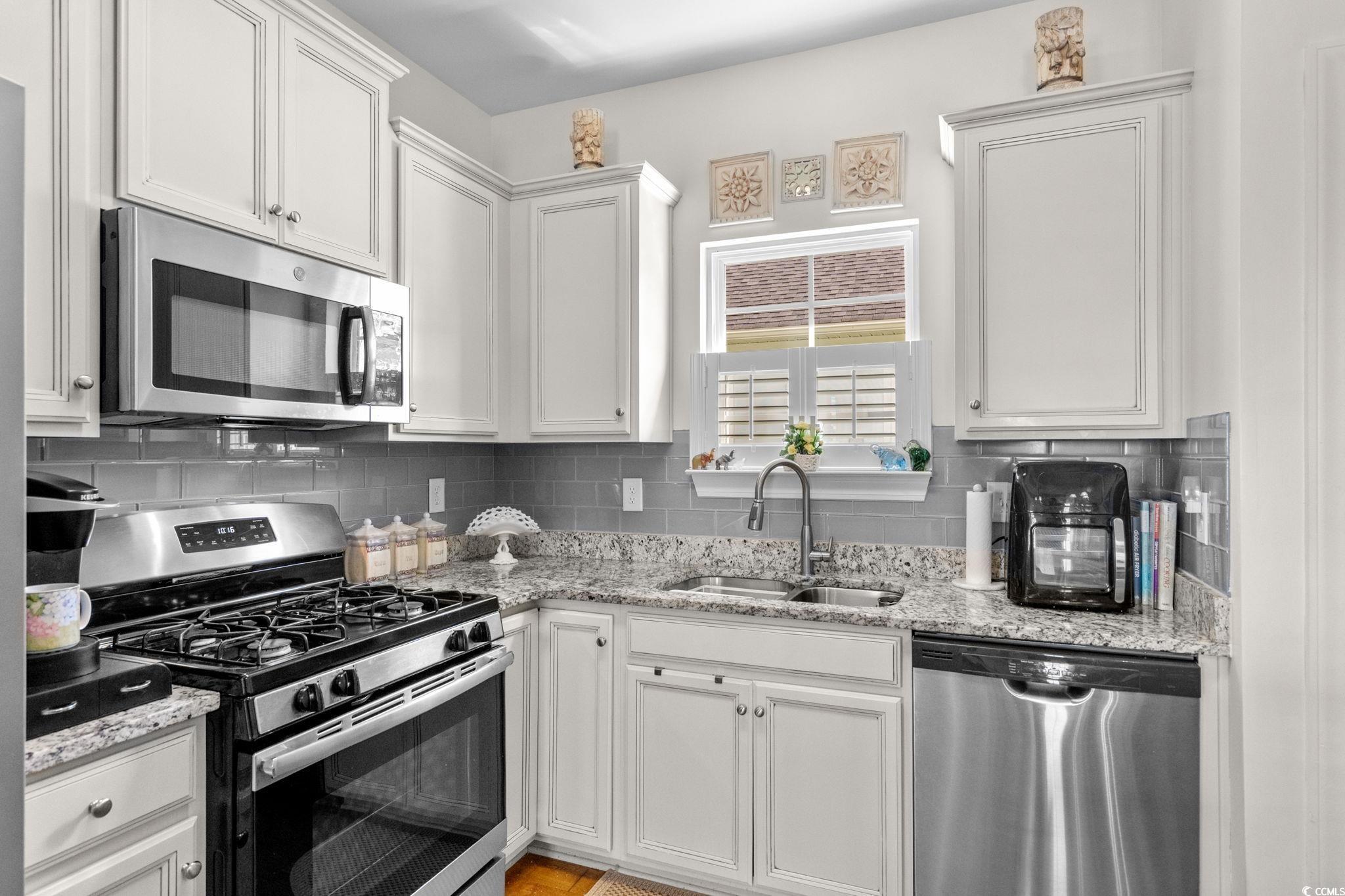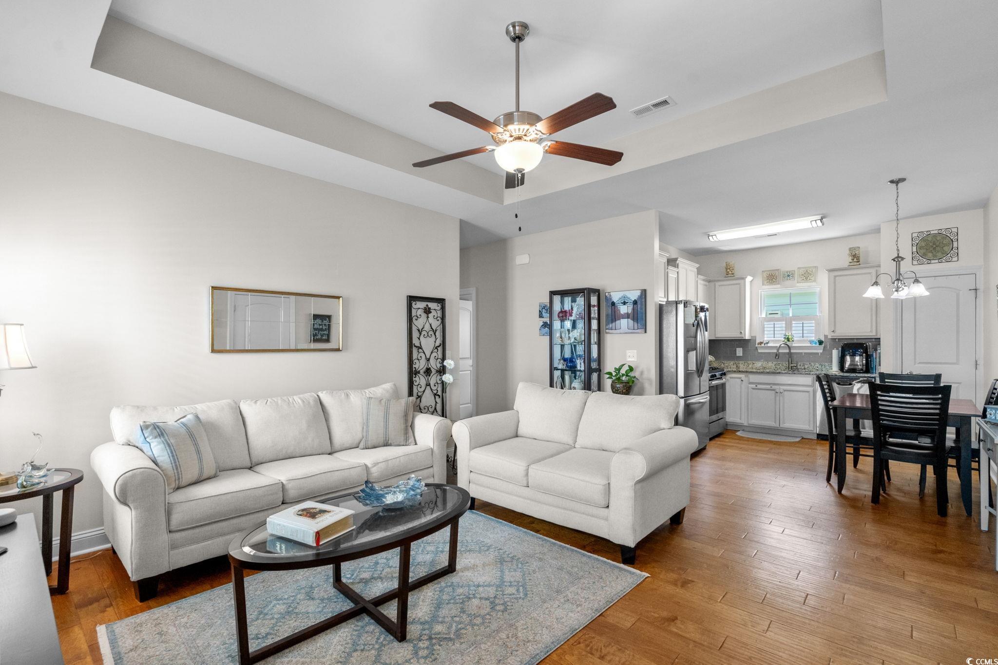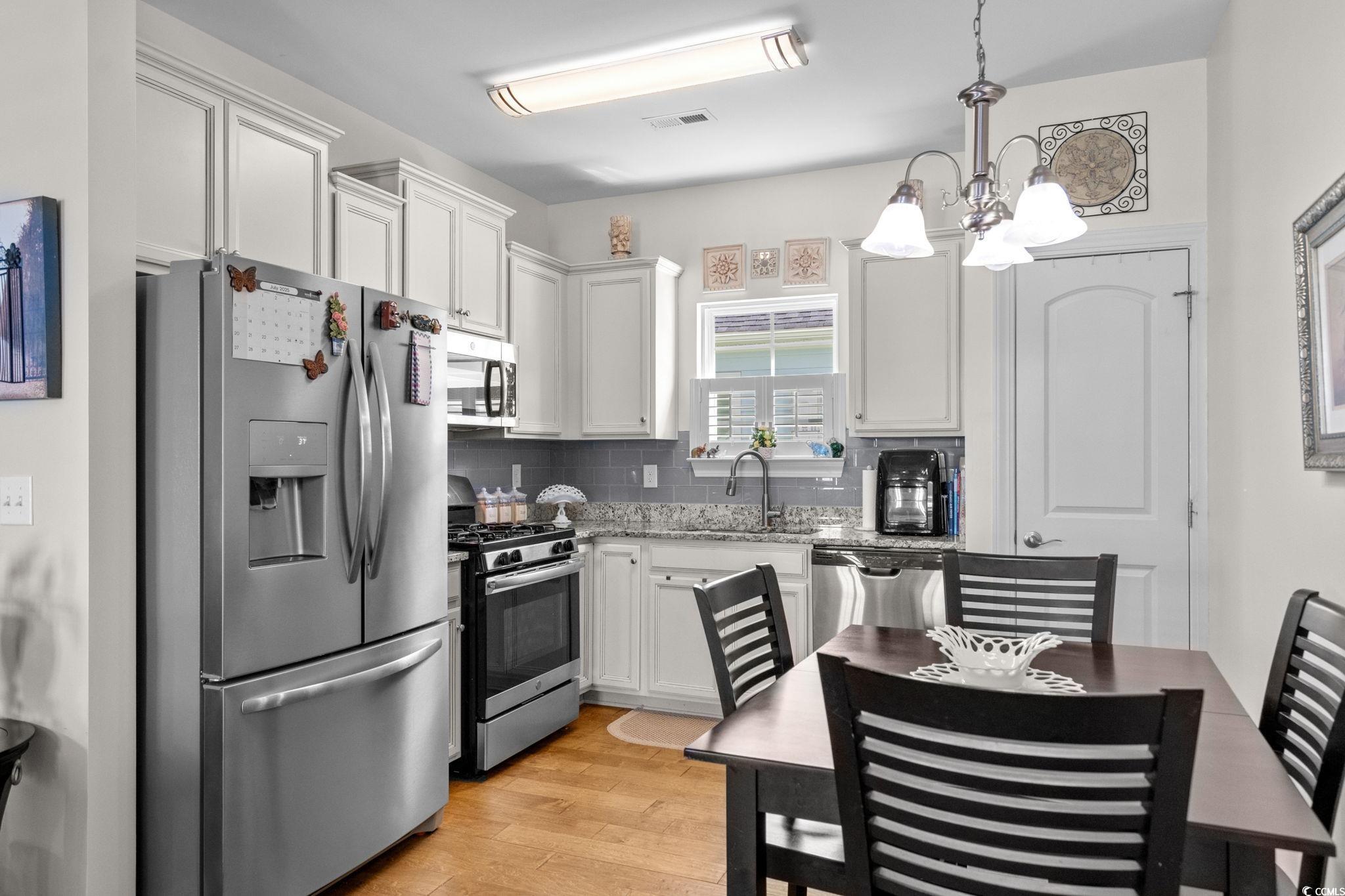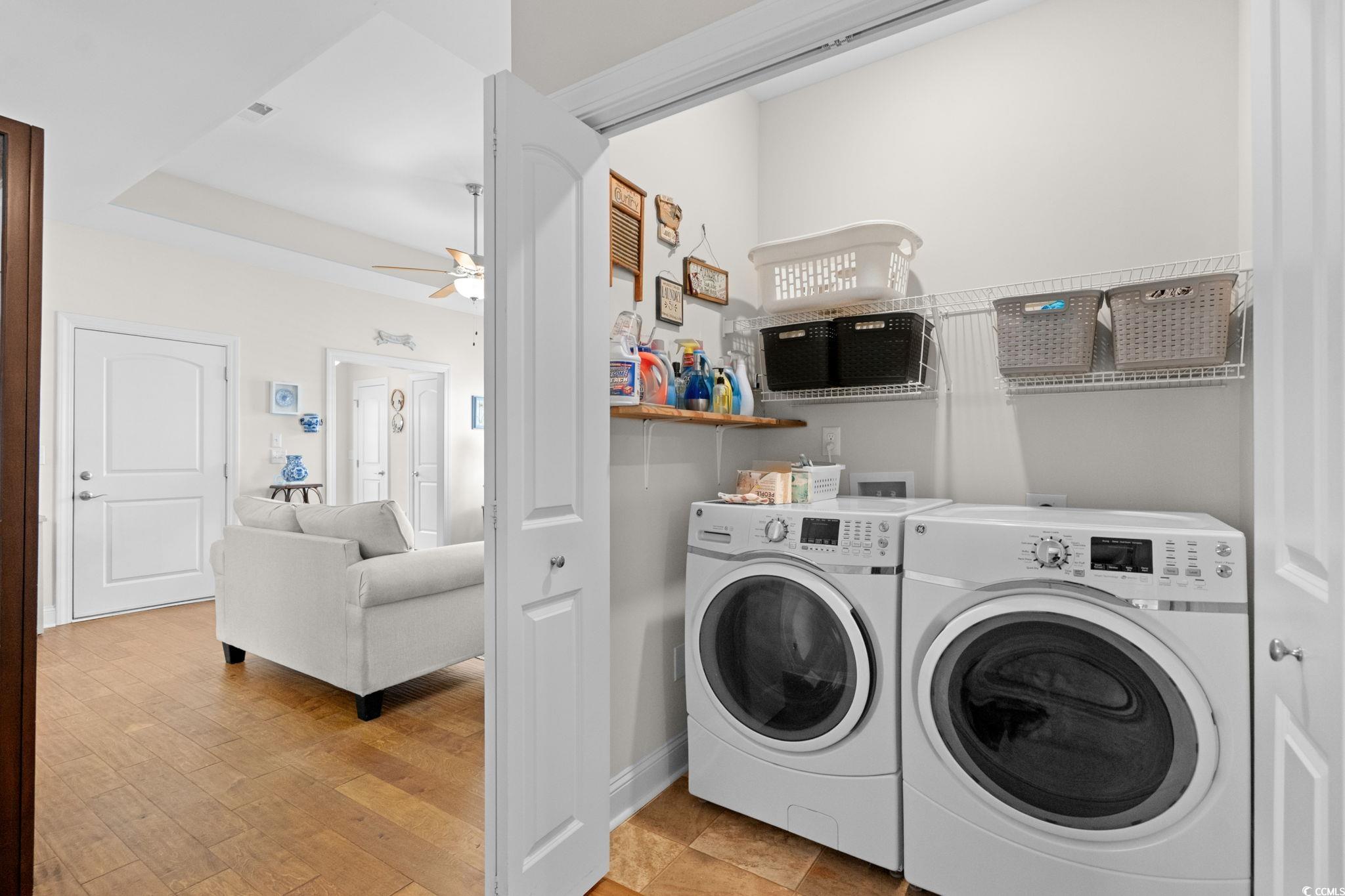 Location! Location! Beautifully upgraded and maintained 3 bedroom 2 bathroom home with a 2-car garage in the charming natural gas community of Carsens Ferry in Conway, South Carolina. Situated on a quiet street with a screened porch and patio overlooking a peaceful wooded area with water view. This bright and open floor plan offers the details you want from gas cooking, tray ceiling, granite, wood floors and custom made window shutters. This home includes all appliances plus the washer and dryer. The oversized main bedroom overlooks the private backyard and has an en-suite bathroom with tile floor, double sinks, larger vanity and an easy entry walk-in shower. This lovely home offers professional landscaping, gutters and a covered front porch. The location cannot be beat and is close to Conway's historic main street and newly expanded Riverwalk with boat docking for your daily fun. Convenient to what you want, the beach, shopping, university, tech college, hospital, library, airport and medical offices.