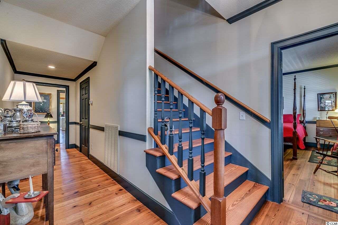 This is the Home you have been looking for....Begin building memories that your family will share for generations. This 4 bedroom 3.5 bath home has it all---Just one block to the ocean. Relax on the front porch or deck while listening to the ocean...Just 4 blocks to the Surf Club for Golf, Tennis and Socializing. Only 1.4 miles to Main Street for great restaurants, Shag Dancing and Beach Music. Live east of highway 17, ride your golf cart to your favorite places, or walk or bike to the beach...This Low Country home has superior building quality and materials....built to last! Enjoy modern features while also owning a house built with craftsmanship and attention to detail. You will enjoy entertaining friends and family in this expansive open floor plan and outdoor living spaces, porches and decks. The home is on Natural Gas, used for cooking, central heating, fireplace and hot water. The Kitchen features a 6 Burner gas stove, double ovens, granite counter tops and large pantry. The cabinets were hand crafted of Cherry wood...Your Family will enjoy gathering at the breakfast bar or in the large dining area. Serve drinks from your very own Williamsburg Chowning Tavern...or gather by the fireplace in the living room (fireplace can burn wood, or continue enjoying existing natural-gas logs). The owner is a wood working enthusiast, and enjoyed adding lots of custom features to this fine home, like antique heart pine flooring and custom cabinetry, built-ins, plantation blinds, and bathroom walls featuring wormy-chestnut wood.... The first floor includes living room, dining area, kitchen, family room, sun room, laundry room, large master suite with his/her bath areas. Double Stairways lead upstairs to 3 bedrooms and large Study--giving you option of having a home office, art studio, etc, and still have plenty of sleeping space. The home is made energy efficient by use of Pella Windows, 6"" exterior walls, Two air conditioners (installed 2008), along with natural gas for central heat, fireplace, 6 burner stove, hot water heater and outdoor grilling station. You are sure to appreciate having ample storage and parking underneath your home (4 car parking), room for your work shop. Tilghman Estates features large lots, giving you plenty of room for a pool or gardening. Schedule your showing today and enjoy your piece of paradise this summer!