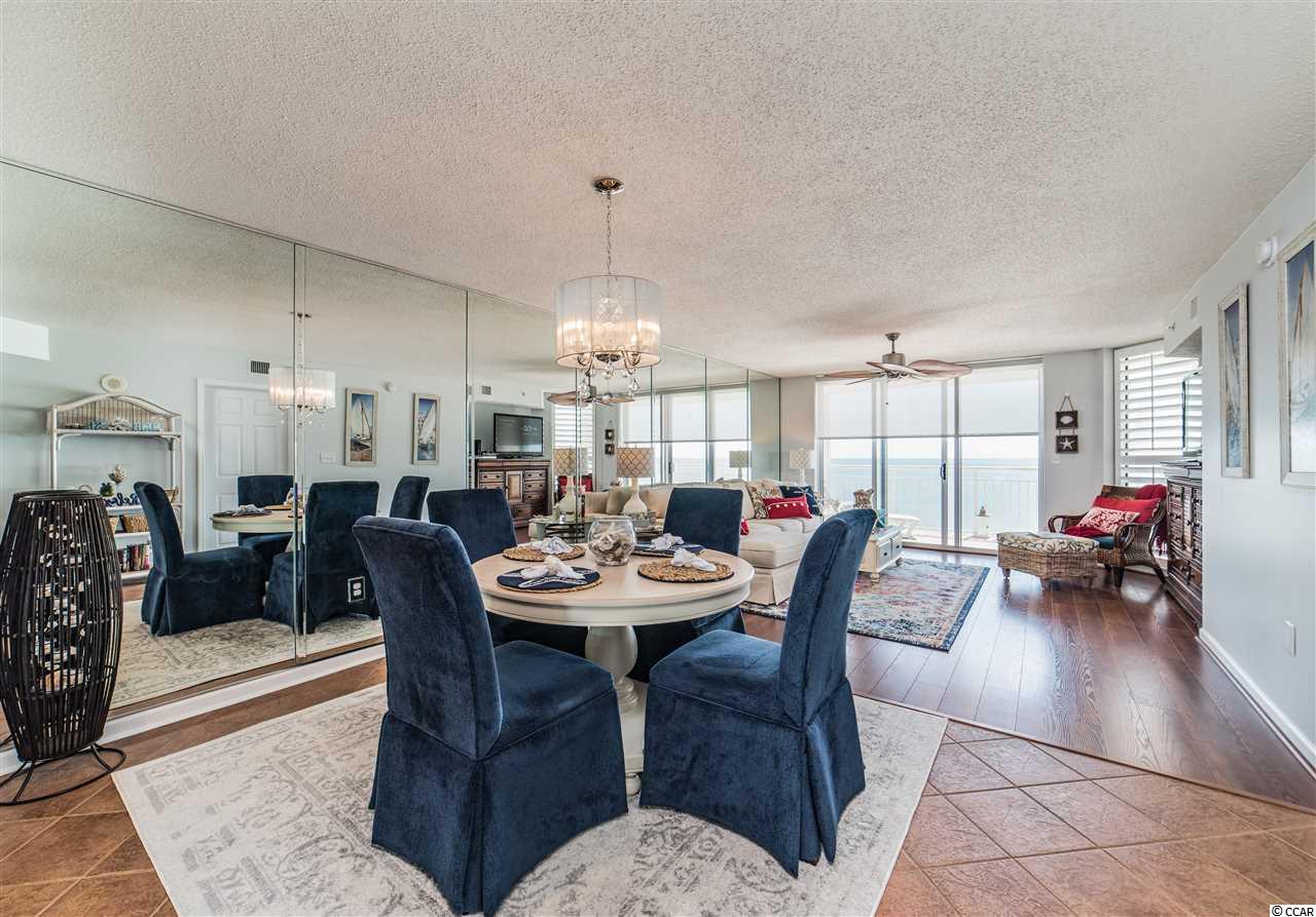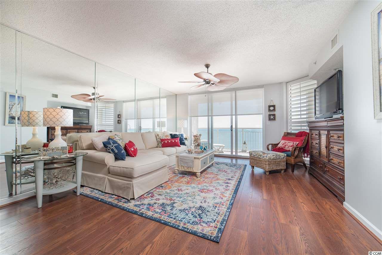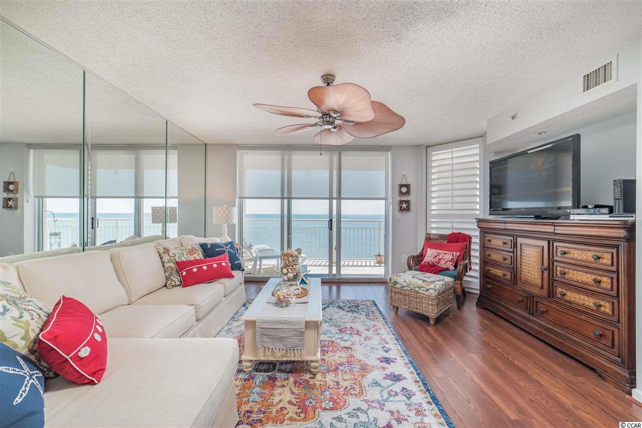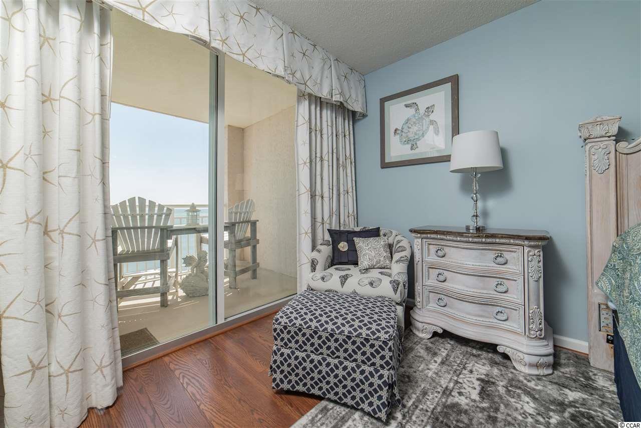 This ""One of a Kind"" Oceanfront Condo is located in beloved North Myrtle Beach, South Carolina. This 3 bedroom, 3 bath condo has never been rented and boasts custom dcor throughout. Updated stainless steel appliances, modern fixtures, and tasteful furnishings provide you with every modern feature at your fingertips. The Electric Blinds for your Oceanfront Windows and balcony entrance add ease and privacy to this sought after condo building and unit location. Enjoy open Atlantic Ocean views from extended seating sized balcony of the master suite which is also complete with his and hers closets as well as double vanities and tile floors in the master bath. The extra large balcony wraps around making it a rare find to offer full views of both north and south beach and ocean coastline. Additional outside features offer a variety of amenities including a state of the art Fitness Facility, Indoor Pool, Outdoor Pool, Lazy River, and Jacuzzis. There is privacy for recreation and grilling as well and its very own secure and private access to the beach. This condo is beautifully crafted, pristine and perfectly maintained with upgrades throughout. Relax in a quiet setting at the end of the day while enjoying the evening sunsets. This condo makes for the perfect home, second home or investment opportunity. Please contact today for your private showings! This will not last long!