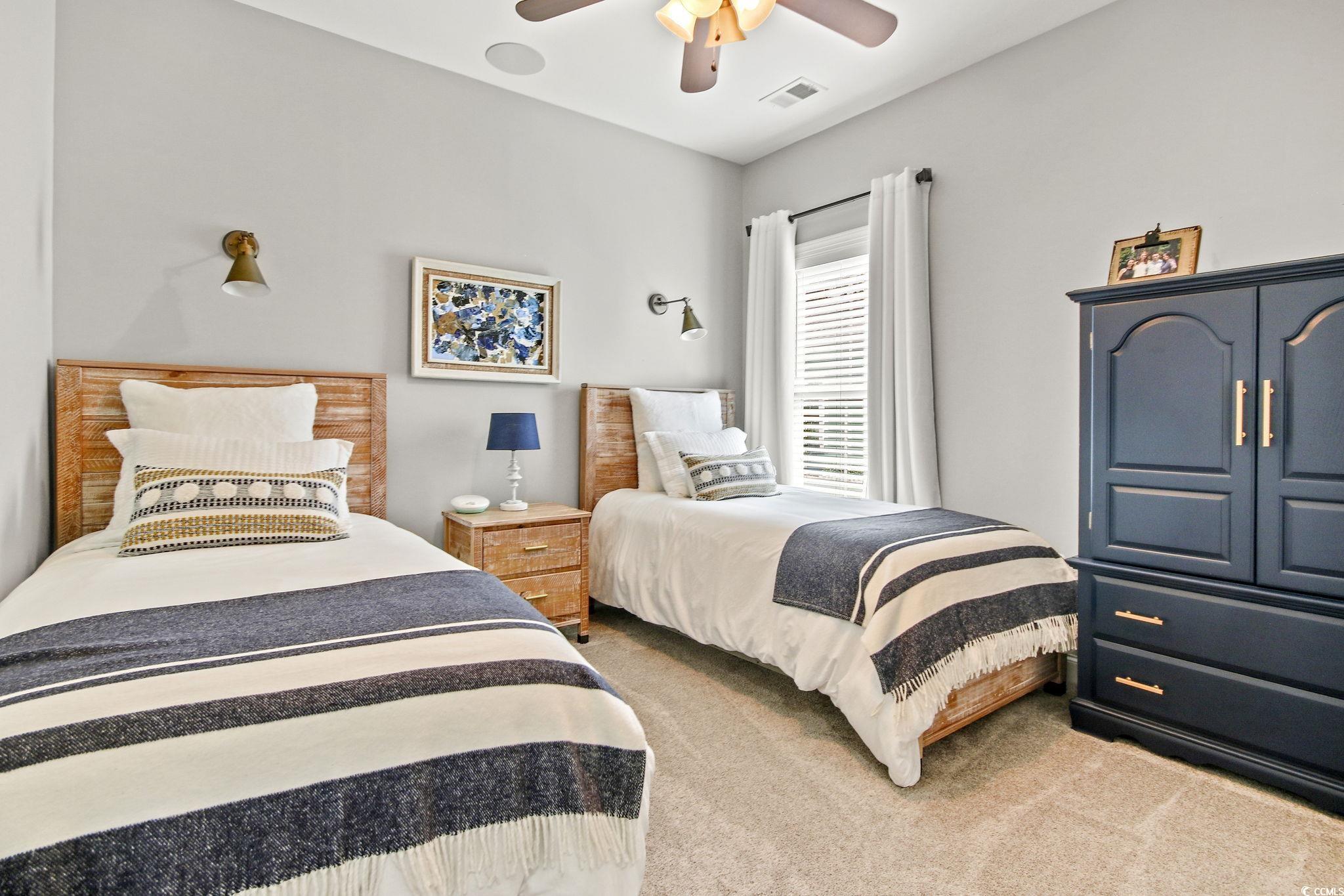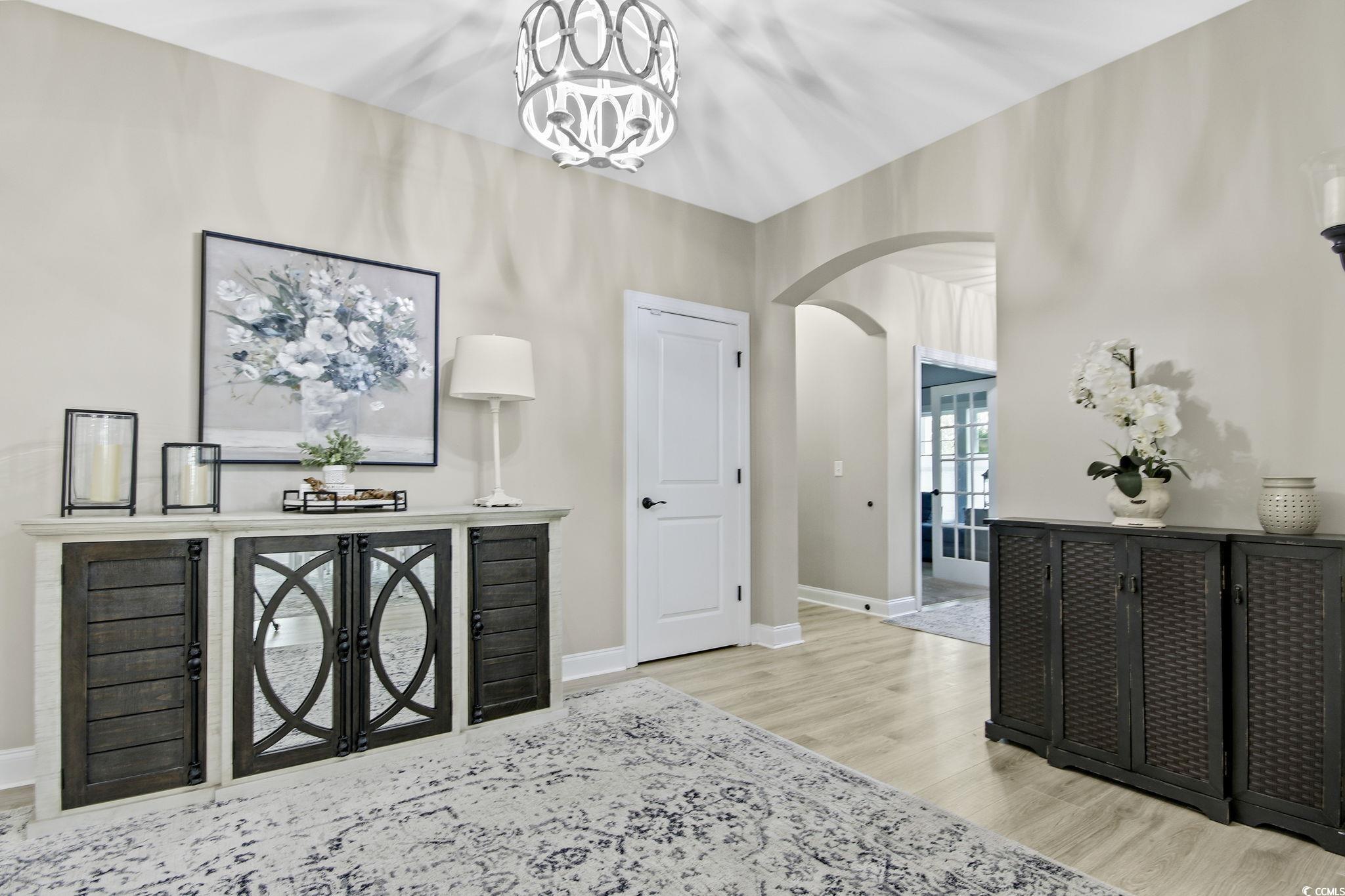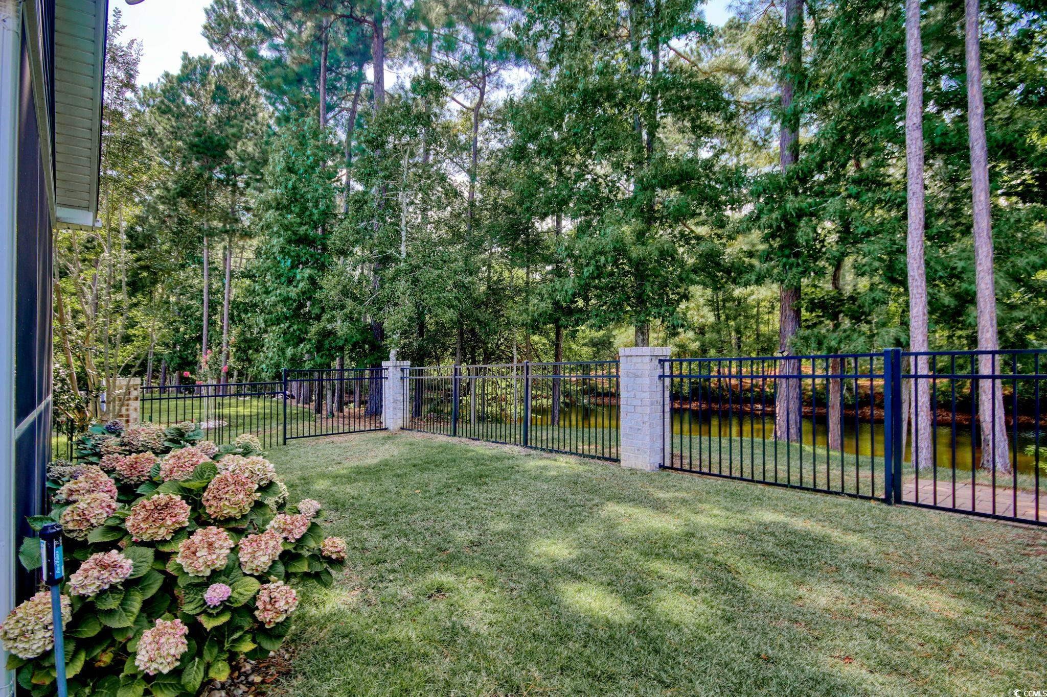Impressive fountain-lined entrance leads to the exclusive, gated St David's community in Windsor Plantation. This 3 bedroom with study/4th bedroom, 2 bath home is located in Surfside Beach. Many upgrades in the past year have elevated this already fabulous home to another level of style and function. New laminate flooring in vaulted ceiling living area, with elegant marble trim around fireplace, and oversized ceiling fan. Surround sound is whole house, includng bathrooms and outside speakers. Smart thermostat to control away from home is another great addition.The Samsung Bespoke glass panel refrigerator adds to the silestone countertops and cabinets with farmhouse sink and gas range, with marble backsplash. The formal dining room boasts wainscoting, with judges panels to carry the combination of tradition and contemporary. Primary bedroom is a peaceful retreat, with tray ceiling, and plenty of closet space. Tiled shower and double vanities and 2 linen closets for extra storage. The privacy-screened porch offers a serene pond view, with manicured lawn and irrigation system, for those wonderful summer nights and cool fall evenings. Patio pavers add to the outdoors, with a custom black aluminum fenced yard with brick pillars. This meticulous residence has been well maintained, and is actually just like new! This sought-after resort- style community has a salt water pool, hot tub, and clubhouse with fitness center. Hwy 544 has a variety of shopping, restaurants, and entertainment close by, and just minutes from the Atlantic Ocean! Don't miss your chance to live in this luxurious neighborhood! Square footage is approximate-buyer is responsible for verification.