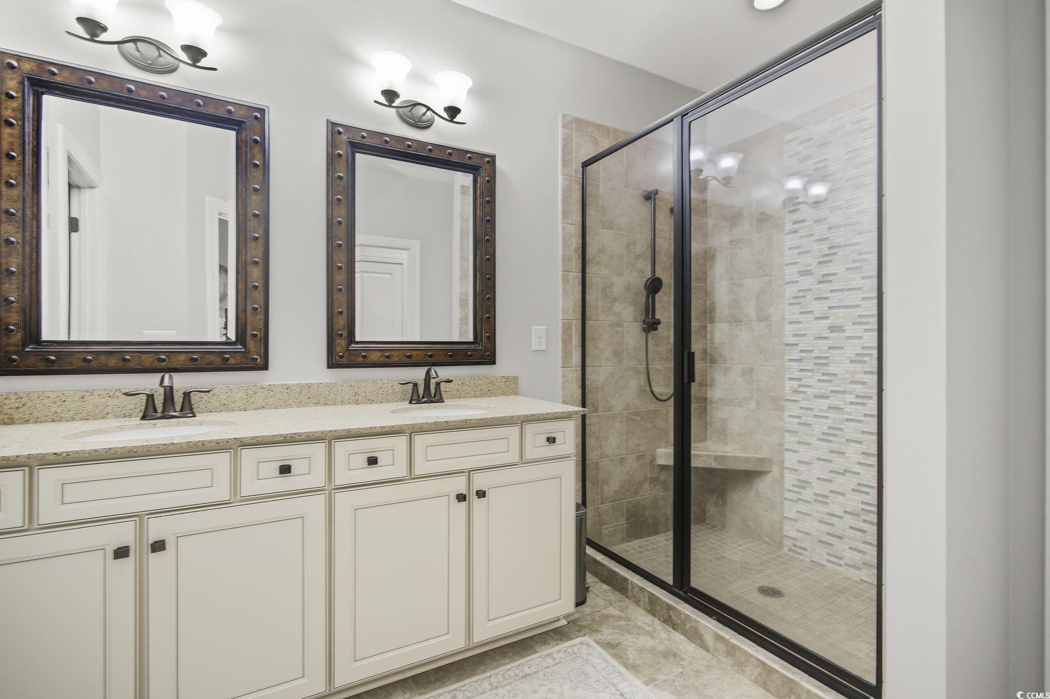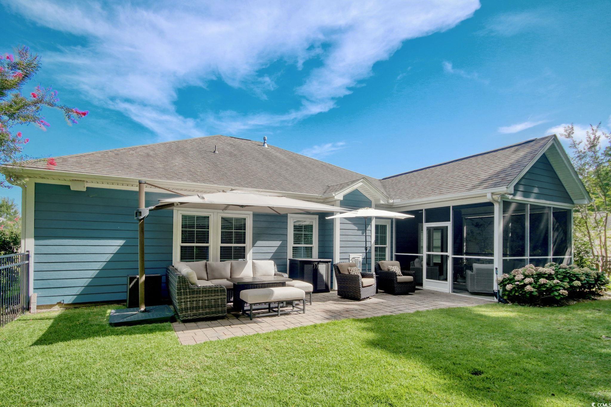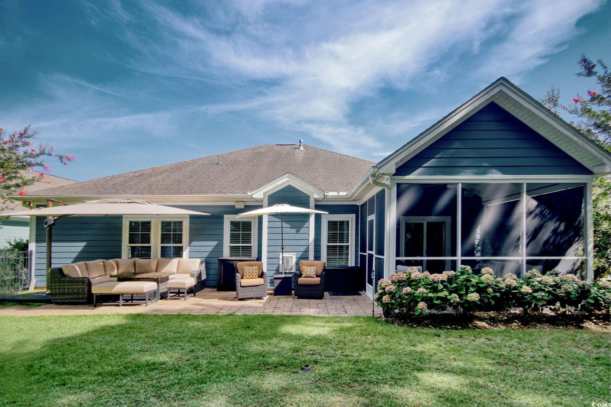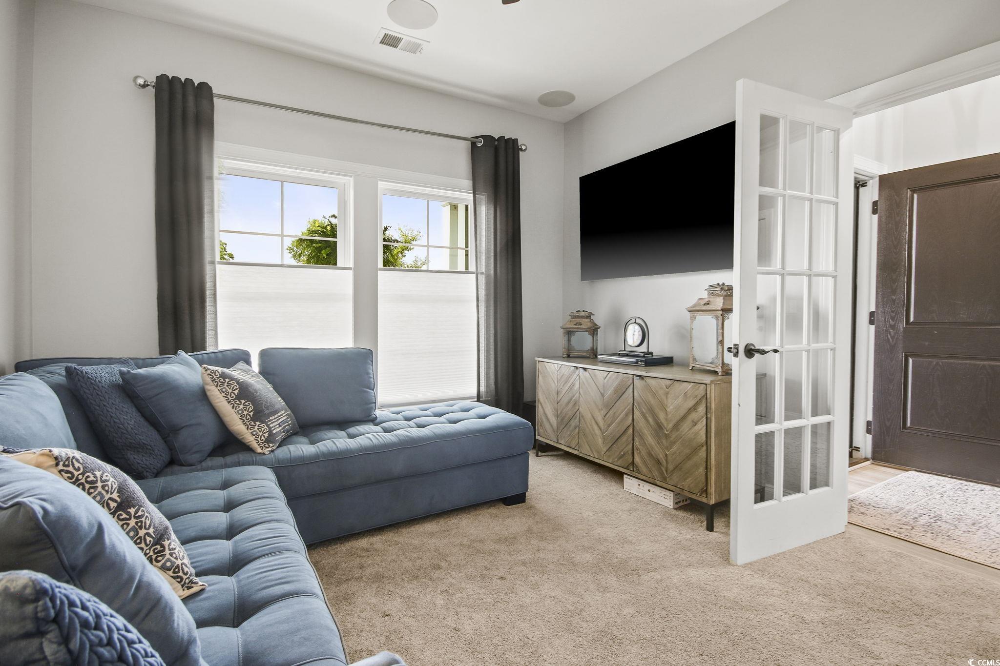 Impressive fountain-lined entrance leads to the exclusive, gated St David's community in Windsor Plantation. This 3 bedroom with study/4th bedroom, 2 bath home is located in Surfside Beach. Many upgrades in the past year have elevated this already fabulous home to another level of style and function. New laminate flooring in vaulted ceiling living area, with elegant marble trim around fireplace, and oversized ceiling fan. Surround sound is whole house, includng bathrooms and outside speakers. Smart thermostat to control away from home is another great addition.The Samsung Bespoke glass panel refrigerator adds to the silestone countertops and cabinets with farmhouse sink and gas range, with marble backsplash. The formal dining room boasts wainscoting, with judges panels to carry the combination of tradition and contemporary. Primary bedroom is a peaceful retreat, with tray ceiling, and plenty of closet space. Tiled shower and double vanities and 2 linen closets for extra storage. The privacy-screened porch offers a serene pond view, with manicured lawn and irrigation system, for those wonderful summer nights and cool fall evenings. Patio pavers add to the outdoors, with a custom black aluminum fenced yard with brick pillars. This meticulous residence has been well maintained, and is actually just like new! This sought-after resort- style community has a salt water pool, hot tub, and clubhouse with fitness center. Hwy 544 has a variety of shopping, restaurants, and entertainment close by, and just minutes from the Atlantic Ocean! Don't miss your chance to live in this luxurious neighborhood! Square footage is approximate-buyer is responsible for verification.