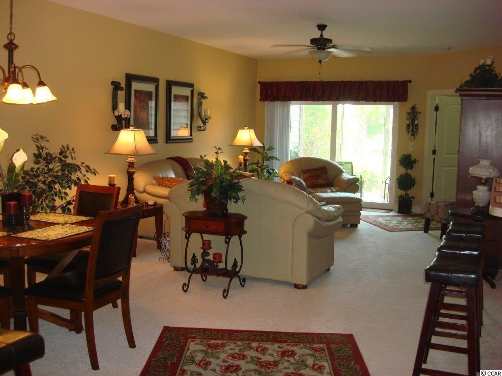 Located in one of the most successful condo developments in the Myrtle Beach area, this first floor unit is a 2 bedroom 2 bathroom beautiful condo in the very popular Queens Harbour! Building has an oversized ELEVATOR to all floors, outside storage, split bedroom floor plans with entry to the Master Suite from the Family Room, 9' smooth ceilings and a screen porch. The location is superb with shopping, dining and recreation steps away. The amenity package includes a resort style swimming pool with club house and conveniently located picnic areas with grills.