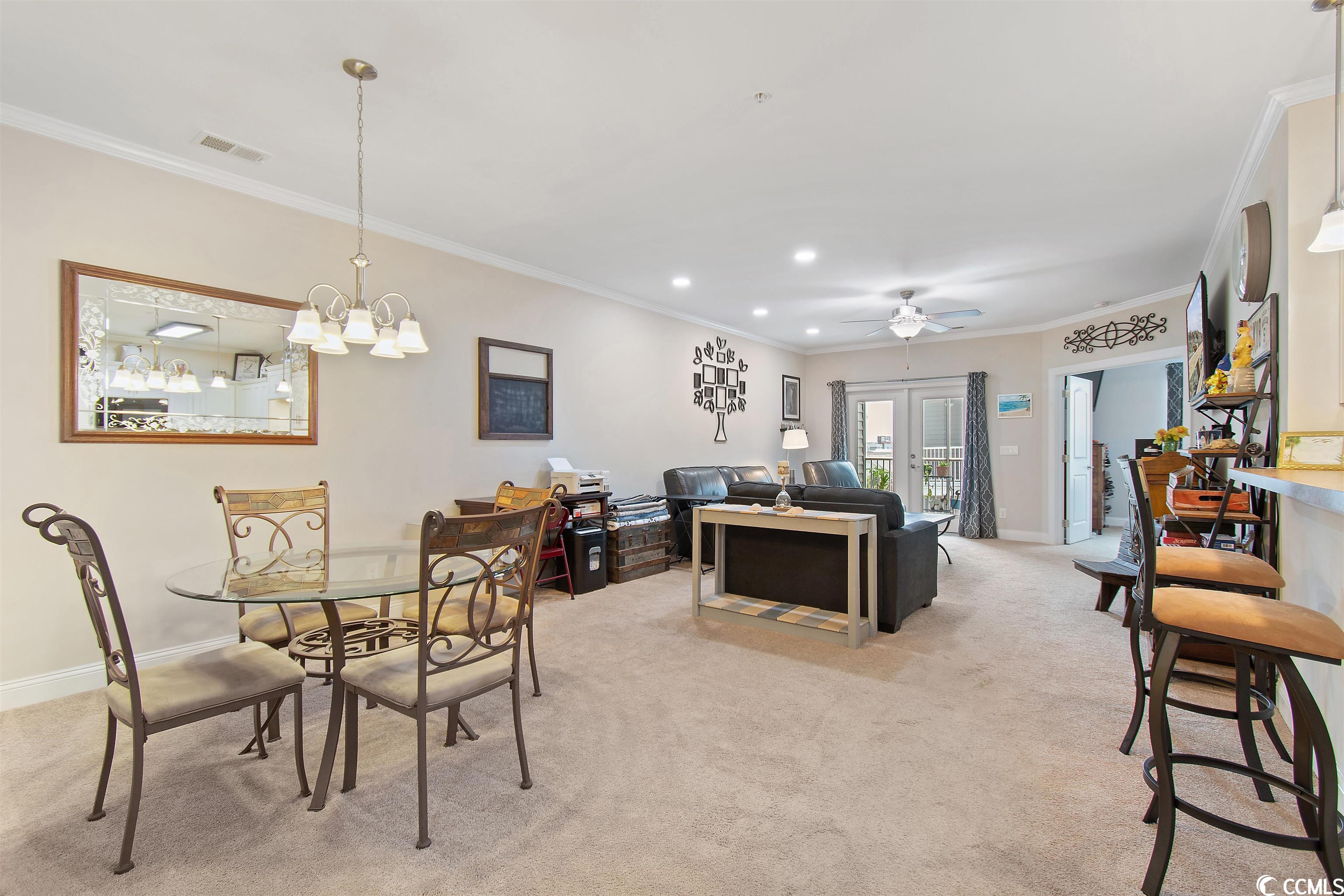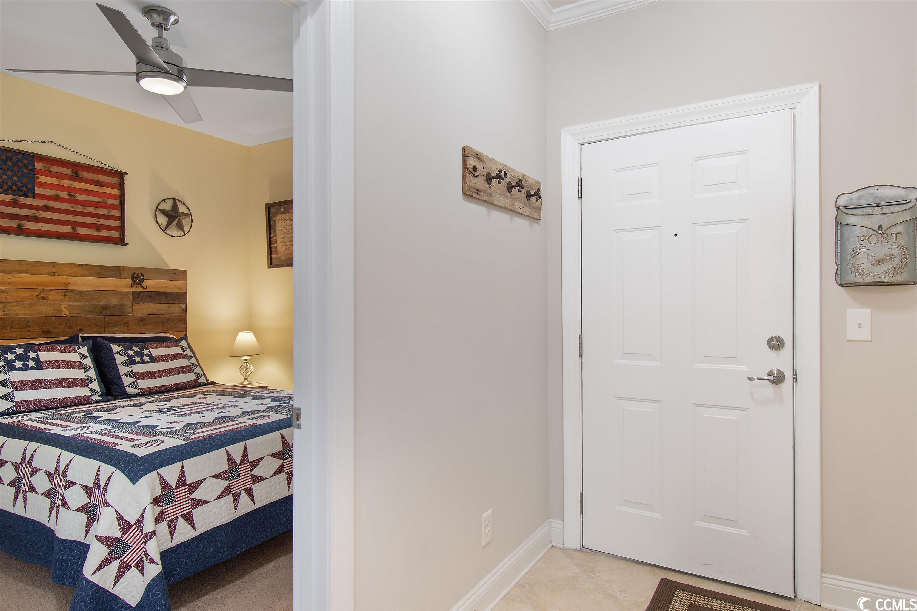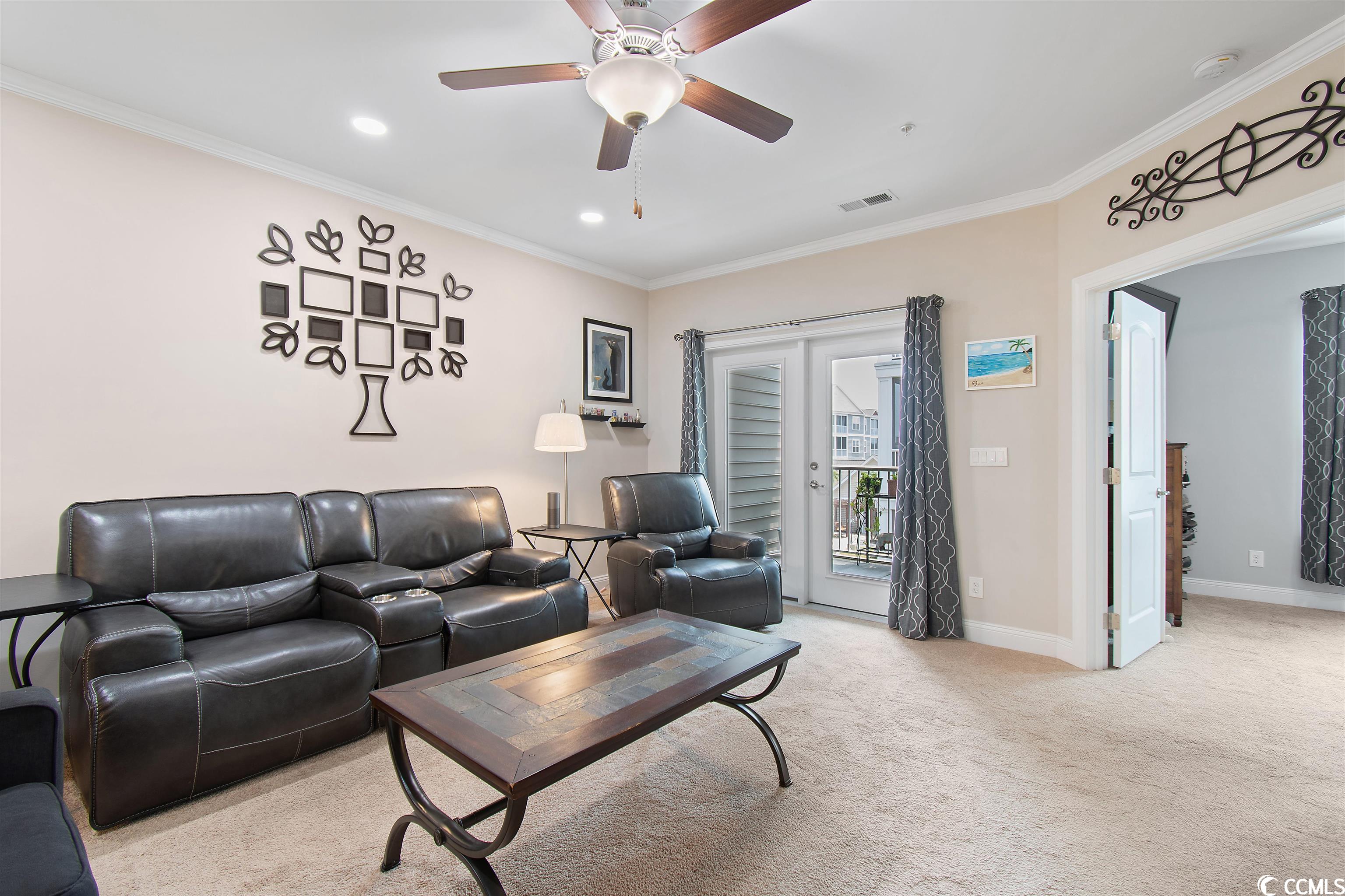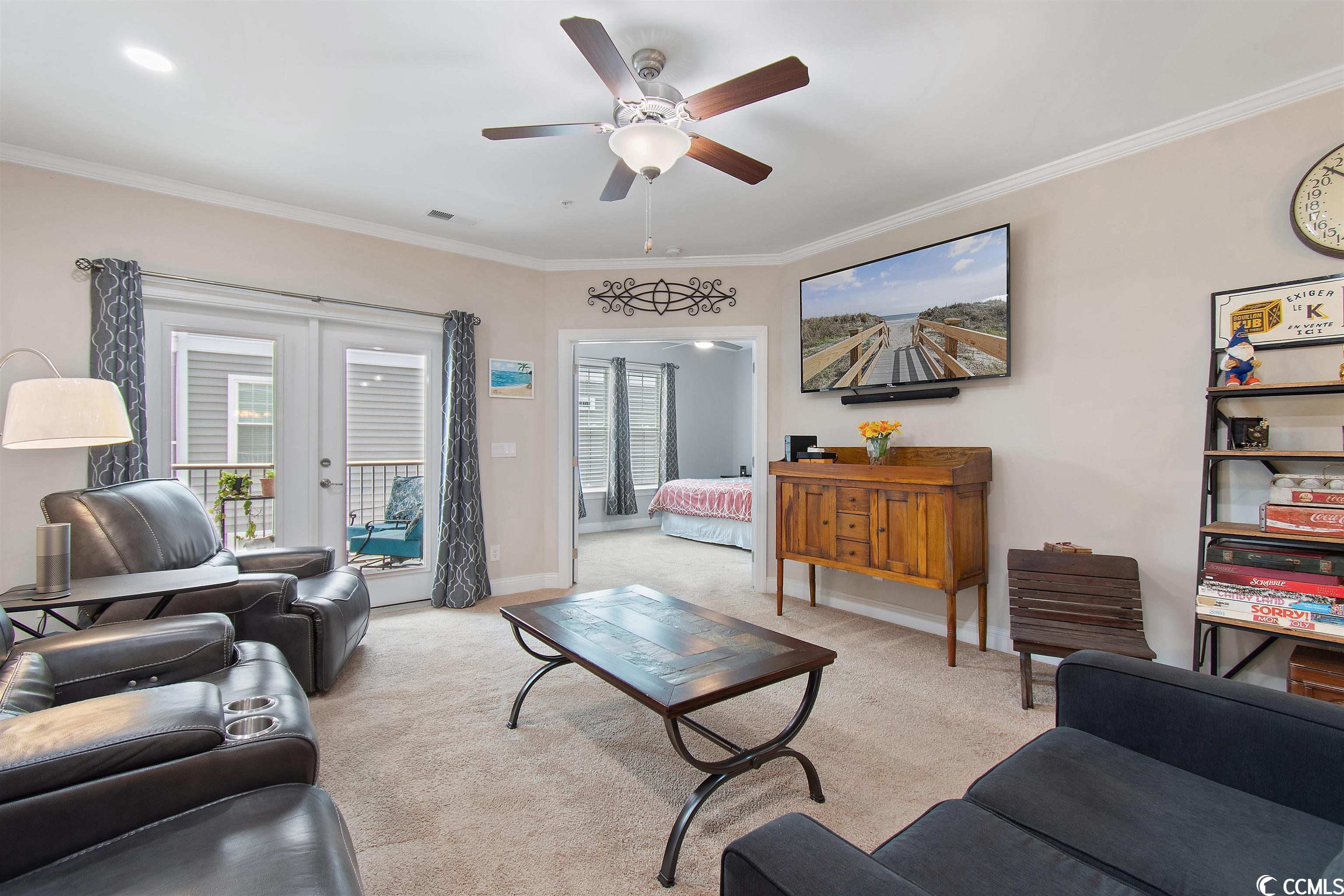 Newly built condo within the highly-desired community of Queens Harbour. Located in the heart of Myrtle Beach. Staircase and elevator access to this 3rd floor unit. Spacious 2BD/2BA layout features combined living and dining floor plan. French doors lead out to the fully screened-in balcony with views of the community's resort style pool. Kitchen includes a breakfast bar, lovely cabinetry, and pantry. Separate laundry room. Double doors to the Master suite with double closets include plenty of shelving. Master bathroom has a large vanity and standing shower with built-in seat. Guest bedroom with ensuite bathroom has tub/shower combo and large vanity. All rooms include Cable TV. There is a detached storage closet on the exterior of the unit. Most items are negotiable and could come furnished. Carpets were just cleaned on June 16th. Within the Queens Harbour community, you'll have access to the resort-style pool, club house, picnic areas, and grills. Don't miss out on this wonderful opportunity in a prime location.