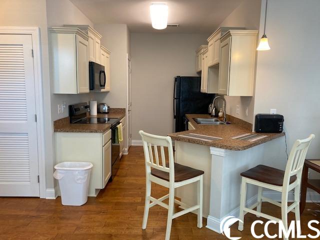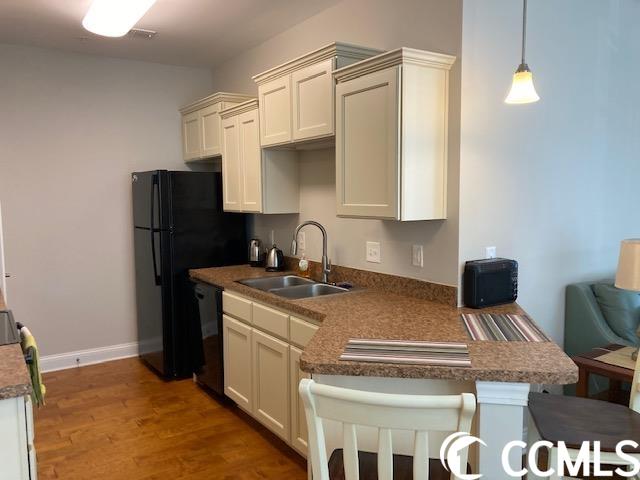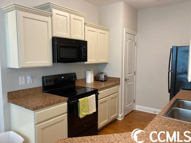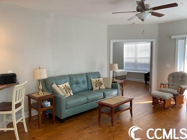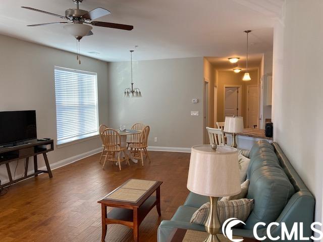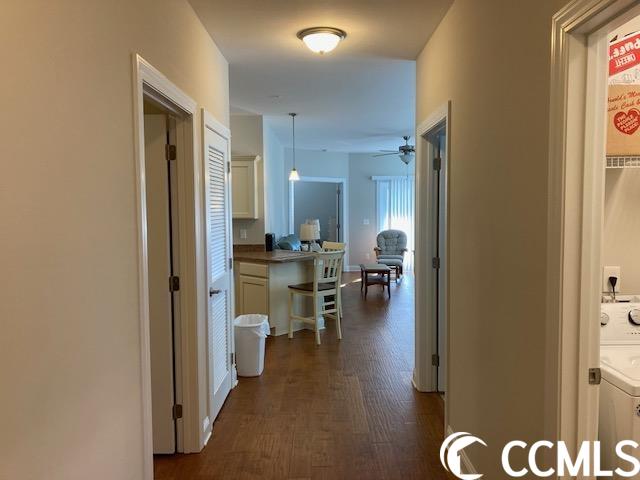 This third floor 3 bedroom/2 bath condo is in the Village at Queens Harbour II, a permanent residential community geographically located halfway between Little River to the north and Georgetown to the south, a stretch of 60 miles of beach commonly referred to locally as the Grand Strand. Conveniently located to shopping, dining, entertainment, golf courses and medical facilities, residents are literally within walking distance of brand name department stores, a home improvement store, and various nationally known restaurants, just to name a few. Most notably, owners and their guests are only minutes away from the beautiful and proudly maintained sandy shores of Surfside Beach. Unit 304 has been used sparingly the past four years as a second home and is in great shape. It features a bright open floor plan with 5 wide hallways, 9 smooth ceilings and hardwood flooring throughout, creating the feel of a single-family home but without the worry and upkeep. Boasting 1310 heated square feet and 80 square feet on the screen porch, theres plenty of space to enjoy the laid-back coastal lifestyle. The owner's suite has a double door entry, his and hers closets and an adjoining bath with a step-in shower. The galley kitchen is equipped with all the major appliances including refrigerator. A separate laundry with washer and dryer is just down the hall from the kitchen and the front bedroom comes with a walk-in closet. Each unit has a storage closet just outside on the corridor. The amenity center which is just steps away showcases a fully furnished great room with inviting seating and gathering areas, an electric fireplace, kitchenette, and nicely appointed bathrooms. Outside, a convenient grill area and covered lanai provide ideal space for bringing family and friends together. Adjacent to the club house is the outdoor pool which features a shallow shelf entry, a design that recalls sitting at the waters edge on the beach, minus the sand. There is also a jetted seating area in the pool to ease all those sore muscles. Finally, to make life a little easier, each building has its own elevator.