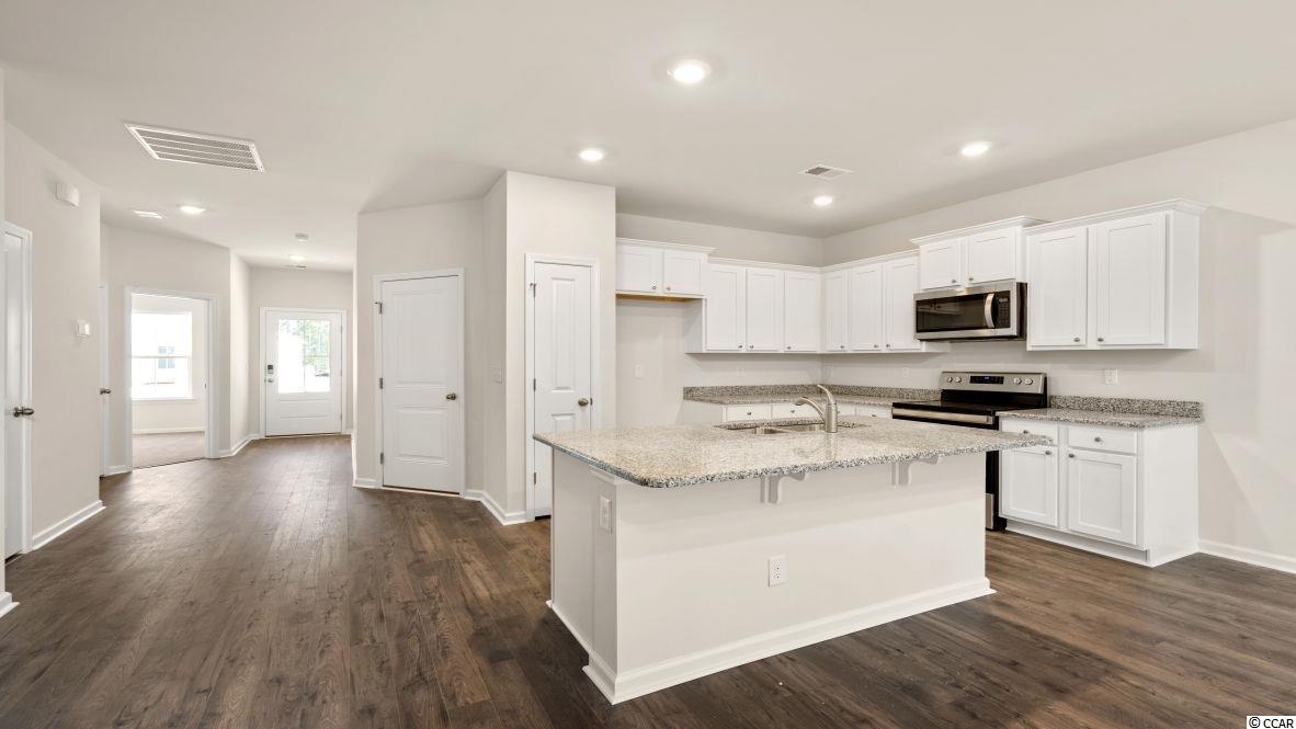 Brand new community within walking distance to the Murrells Inlet Marsh Walk! Low maintenance living at its best with these single level townhomes. Our Bentley floorplan is masterfully designed with an open concept kitchen, living, and dining area that is perfect for guests visiting you at the beach! Features include white painted cabinetry, granite counters in the kitchen, stainless Whirlpool appliances, and laminate wood flooring that flows throughout the main living areas. This home also boasts a versatile flex space that would make a great formal dining room or home office. The primary bedroom suite is tucked away at the back of the home with a walk-in closet along with a private bathroom with dual vanity and large shower. Enjoy the beautiful coastal weather on the rear covered porch! One-car garage with garage door opener plus a spacious storage closet off the rear porch. It gets better- this is America's Smart Home! Ask an agent today about our industry leading smart home technology package that is included in each of our homes. *Photos are of a similar Bentley home. This home is under construction. (Home and community information, including pricing, included features, terms, availability and amenities, are subject to change prior to sale at any time without notice or obligation. Square footages are approximate. Pictures, photographs, colors, features, and sizes are for illustration purposes only and will vary from the homes as built. Equal housing opportunity builder.)