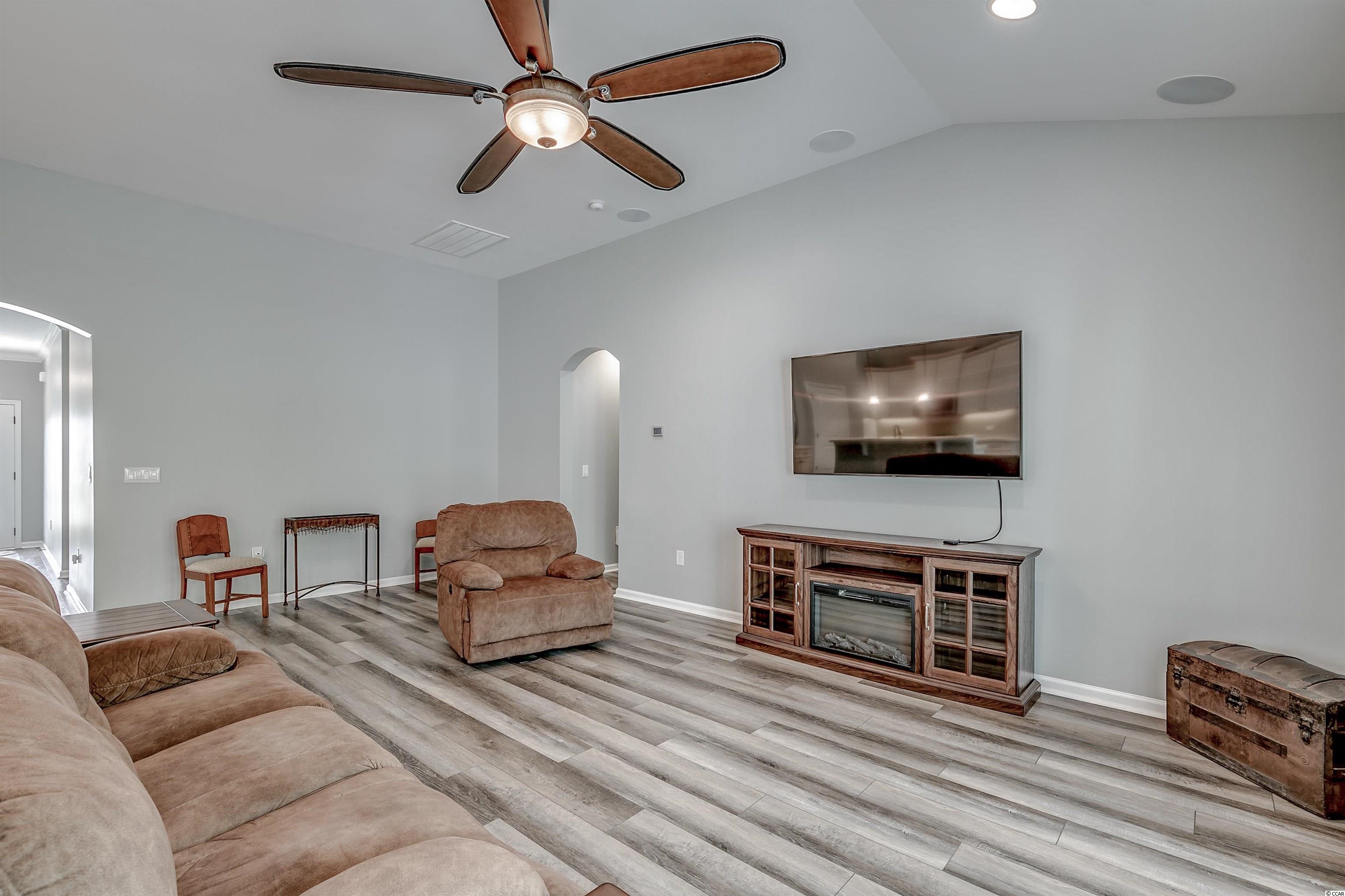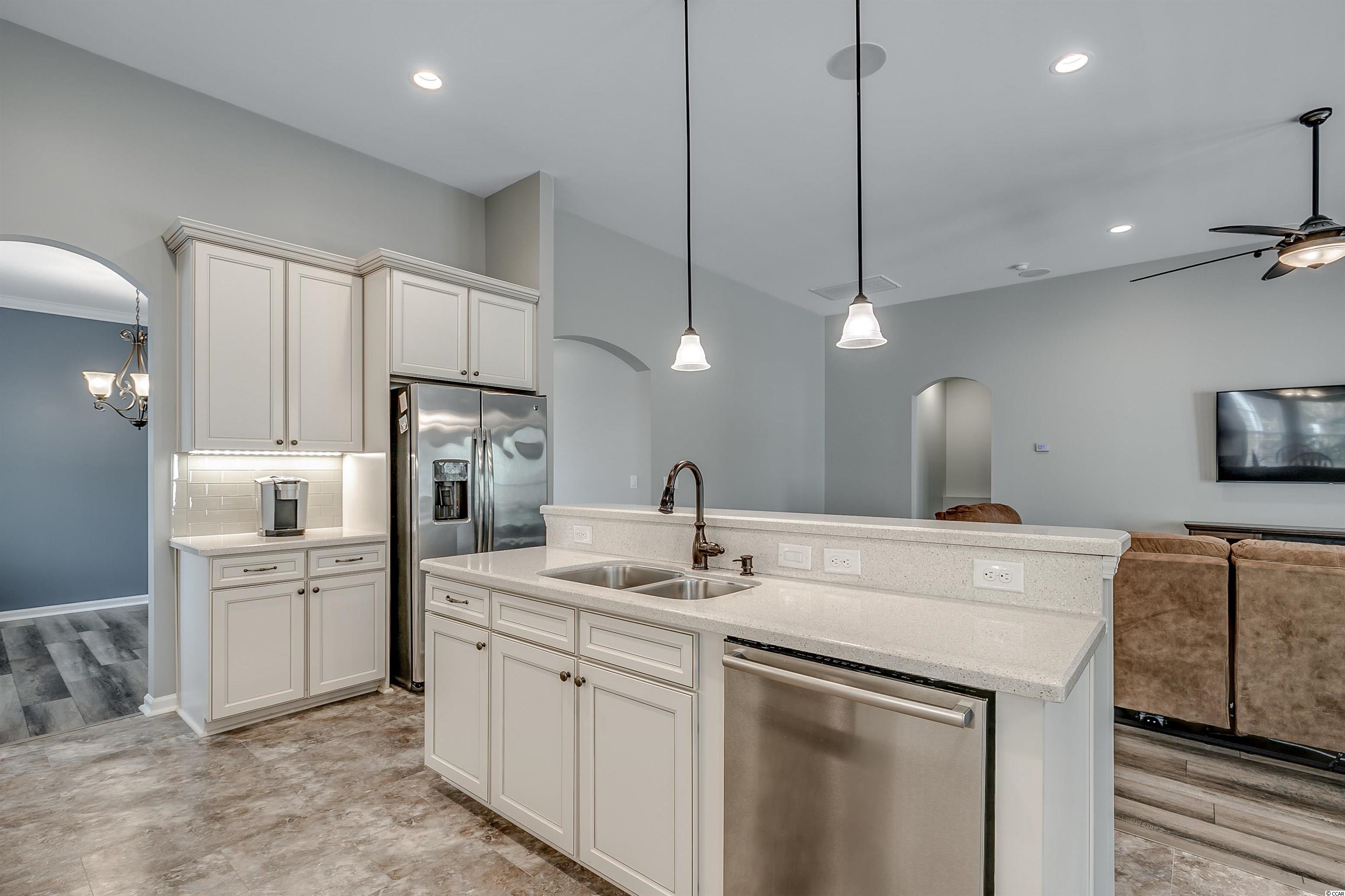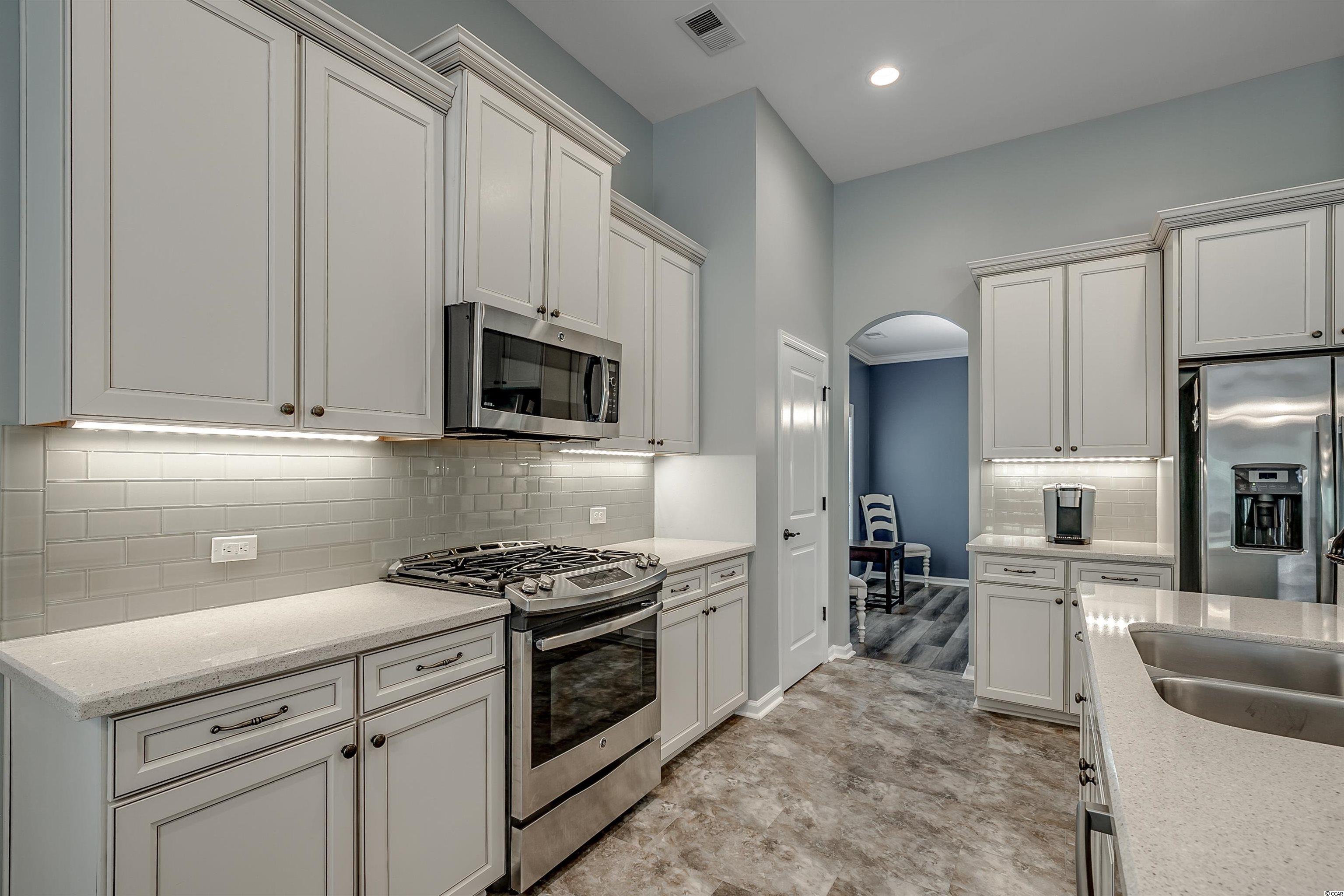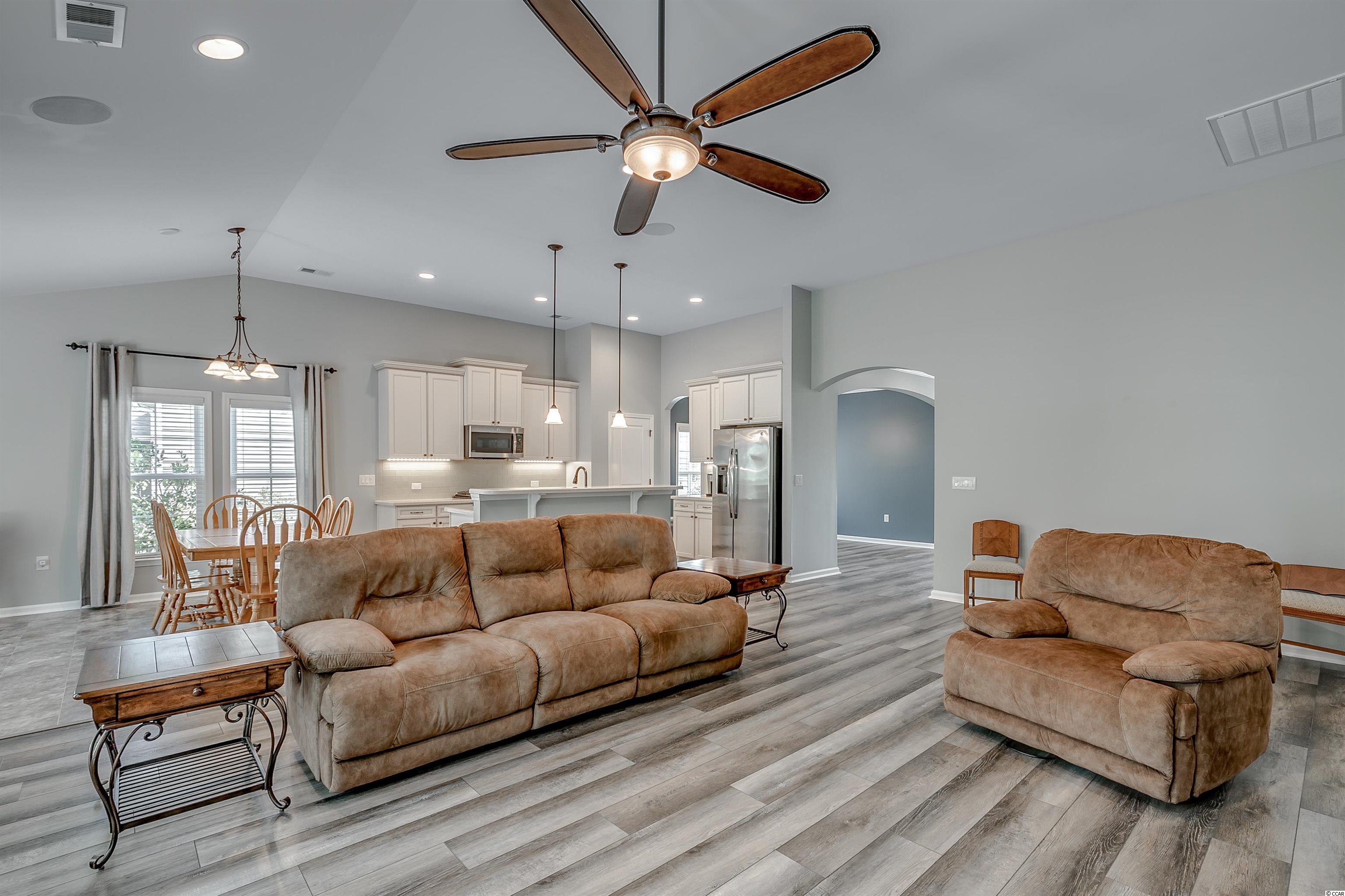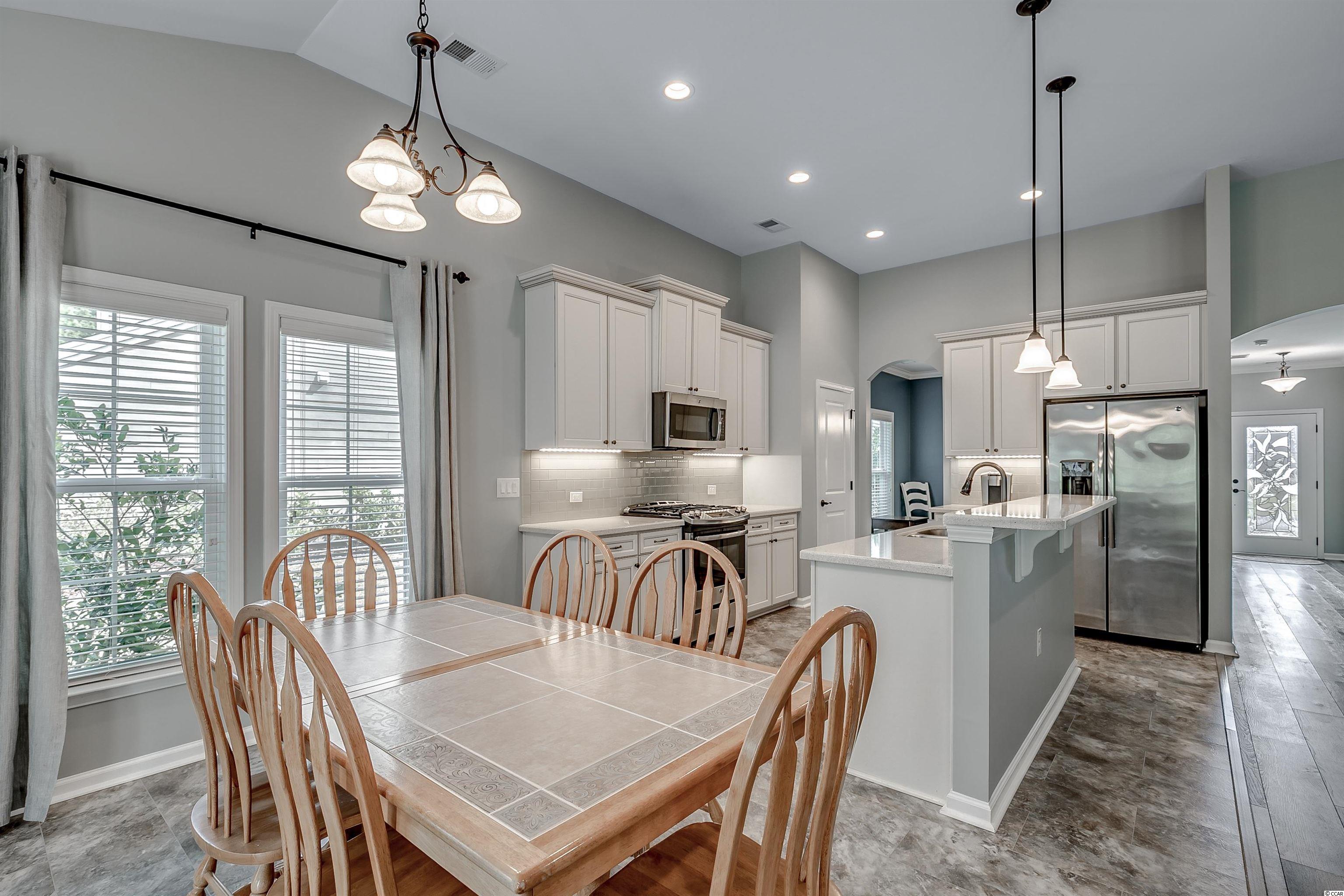 This charming brick front home with front porch allows you to enjoy visiting with neighbors or spend time taking in the natural setting and wildlife of the partially fenced back yard with huge patio for grilling and entertaining. 3 bedrooms, two baths plus office, formal dining and sunroom all on one level with lots of updates! New lighting, decorative front door, ceiling fans, new LVP flooring as well as tile, fresh paint, washer and dryer, central vacuum, ceiling speakers, new dishwasher, hurricane windows and natural gas cooking, heat and hot water add value here. No Carpet! Vaulted ceilings enhance the open, airy feel while crown molding in the foyer, office, dining room and hallways, wooden shelving for pantry and closets ,corain kitchen counters, backsplash and rollout shelves compliment the kitchen with its custom cabinets ,stainless appliances and decorative backsplash. A tile walk in shower, double sinks, corian countertops, garden tub and walk in closet make the owner's suite with crown molding a fabulous retreat. Windsor Plantation is a well maintained, gated neighborhood which is convenient to shopping ,restaurants, Surfside beaches , medical facilities , events at Market Common and dining in the Marshwalk in Murrells Inlet. The neighborhood offers a clubhouse and pool , is built out and well maintained so construction is complete. Numerous challenging golf courses and entertainment within minutes to make this home a great choice for your next move.