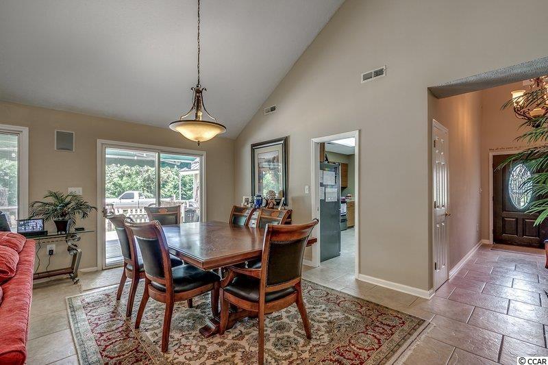 Welcome to this beautifully updated, custom home on an estate sized lot in the Prestigious Tilghman Estates. This stunning 3 bedroom, 2.5 bath home has recently been upgraded and features a spacious, open floor plan with soaring vaulted ceilings, tile flooring throughout home and carpet in bedrooms. The living/dining area is perfect for entertaining with a fireplace, surround sound system and sliding doors that lead to the large outdoor private deck. The eat in Kitchen features corian counter tops, back splash, stainless steel appliances, and a can skylight for natural lighting. You will love the master suite with large, custom walk in closet and beautifully renovated bath. Sliding glass doors lead from master suite to Carolina room. The third bedroom could be used as an office or den, as it has wall built ins cabinetry. The landscaped lot is perfect for a gardener with plenty of room for a pool. Don't miss out on this magnificent home that is just a short golf cart ride to the beach, Surf Club, shopping and restaurants. This home will not last long!