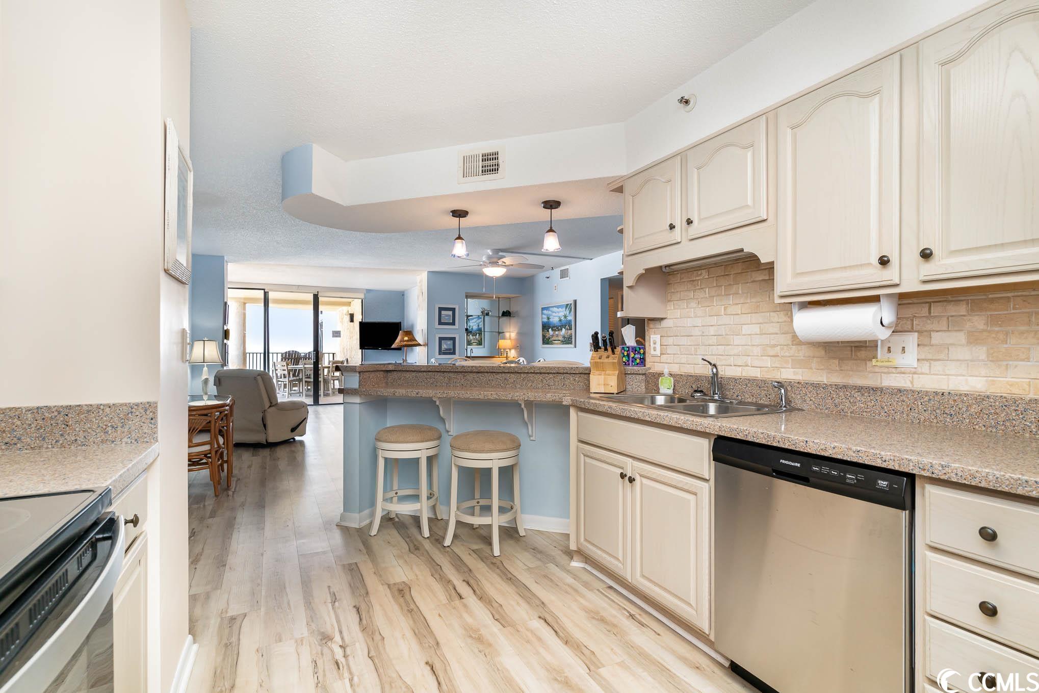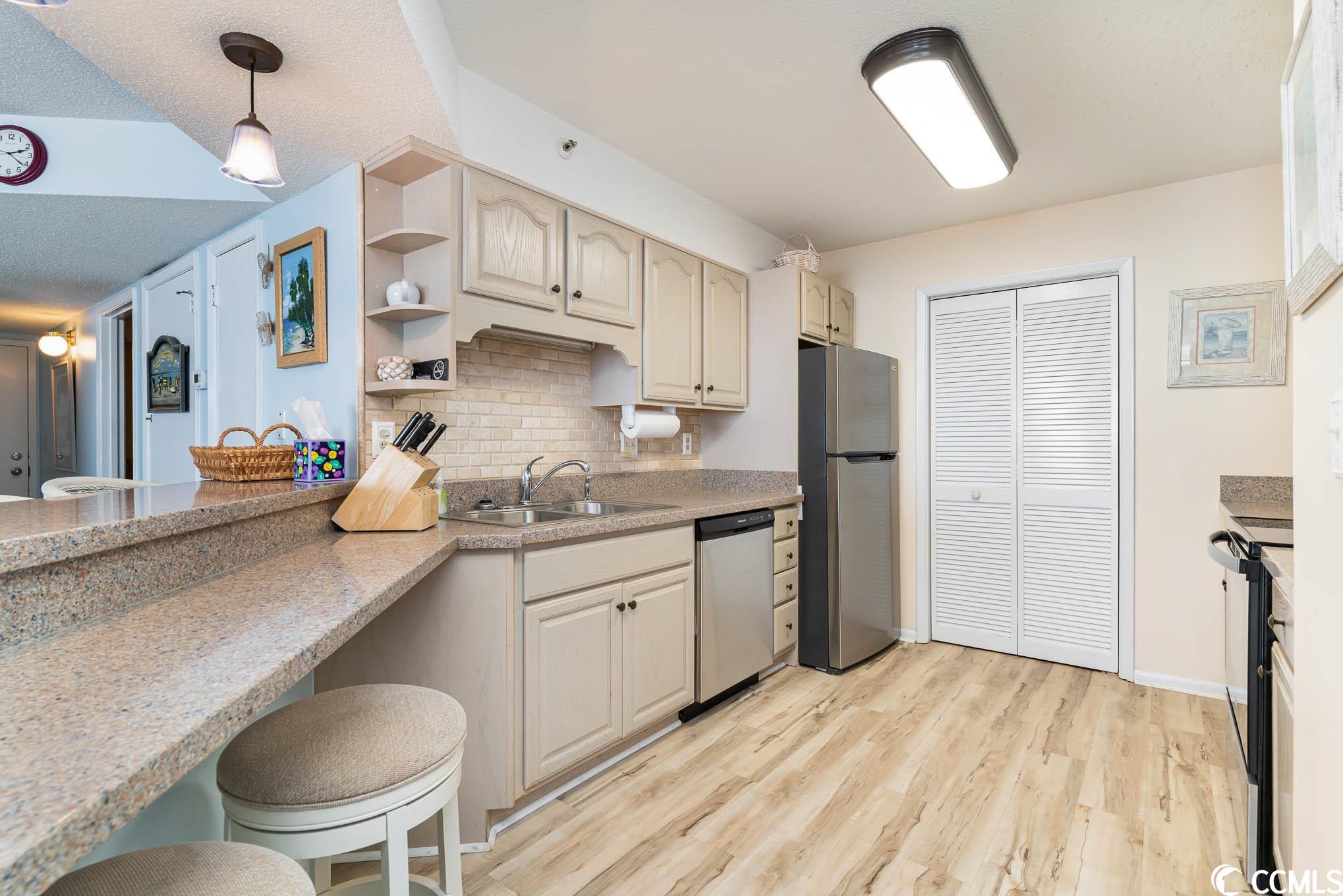 Stunning 3BR/2BA oceanfront condo at Sea Castle, a, oceanfront resort in Crescent Beach, North Myrtle Beach. This fully-furnished end unit offers breathtaking views from the balcony. The spacious kitchen features a breakfast bar and stainless steel appliances. The Master Suite includes a private bathroom, while two large guest bedrooms share a full bathroom. Laundry closet with stacked washer/dryer is conveniently located within the unit. Enjoy the prime location near golf courses, Barefoot Landing, restaurants, grocery stores, and Myrtle Beach attractions. Sea Castle amenities include oceanfront pool, kiddie pool, hot tub, sundeck with picnic and grilling areas, covered parking, and overflow parking across the street. Recent upgrades include a new roof (2019) and elevators (2022). Don't miss out on this oceanfront gem, contact an agent today!