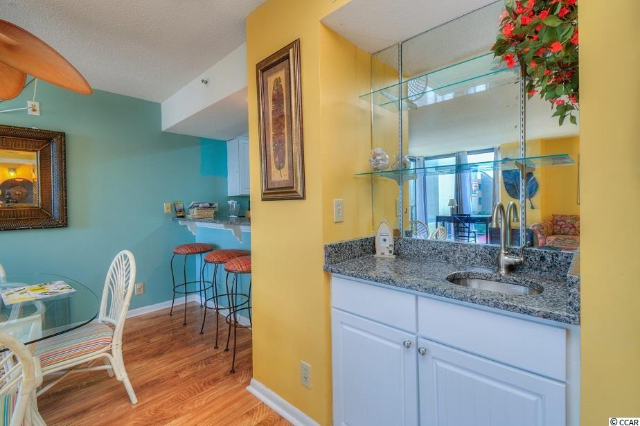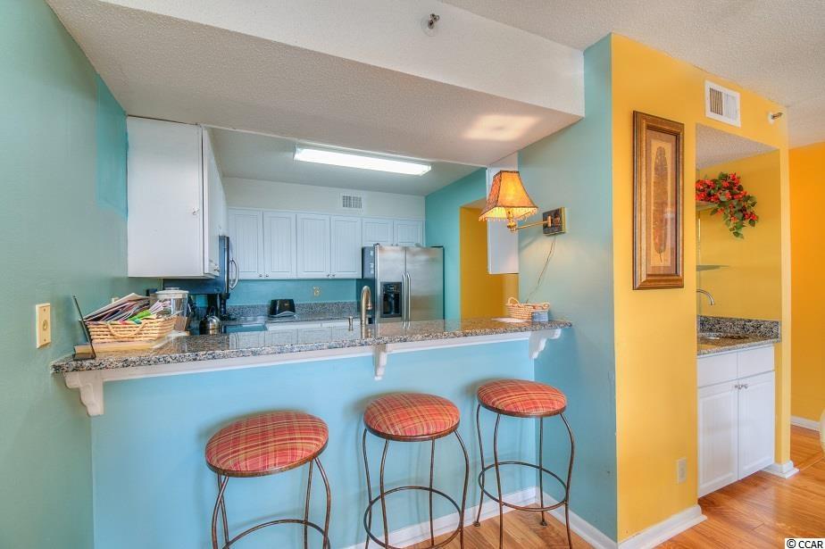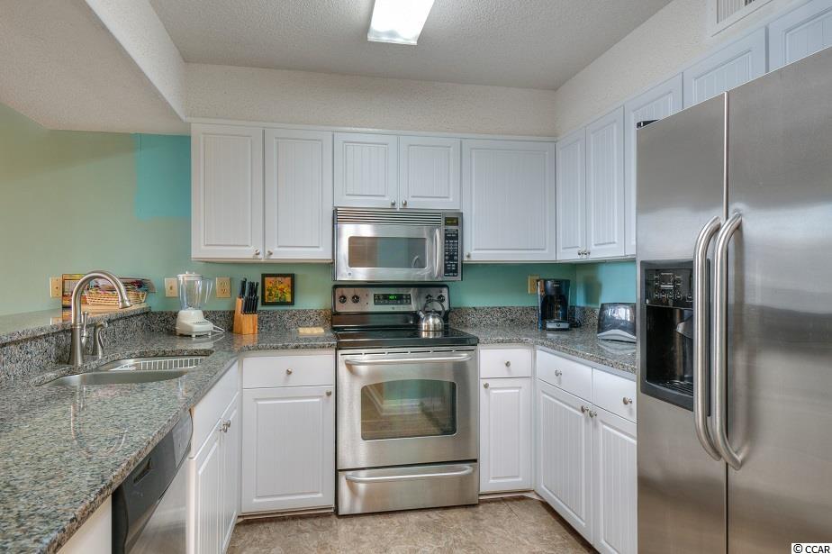 Turnkey oceanfront, 1st floor corner unit with an expansive balcony in Sea Castle, a concrete & steel building with elevators in the Crescent Beach section of North Myrtle. The kitchen in this income-producing condo has been updated with stainless steel appliances and multi-level granite countertops, creating a breakfast bar for additional dining space. The great room offers ocean views and comes equipped with an operational wet bar. Theres also an abundance of closet space and storage, which is often lacking on the oceanfront. Sea Castle boasts an oceanfront pool, hot tub, kiddie pool, picnic & grilling areas, an atrium and two levels of parking underneath the building with an overflow lot across the street. Call your agent and schedule a showing today!