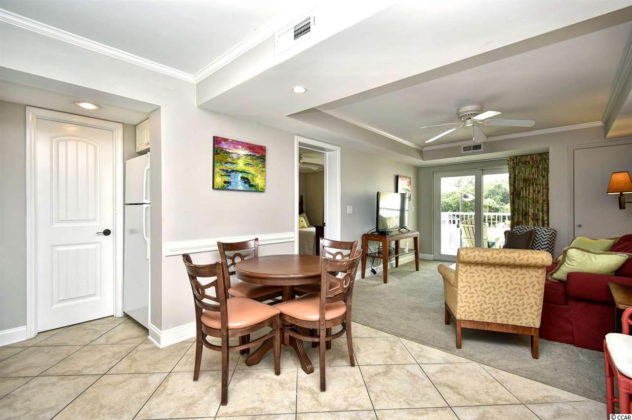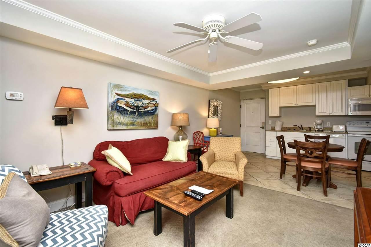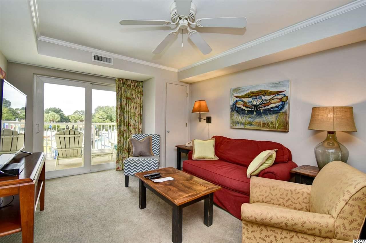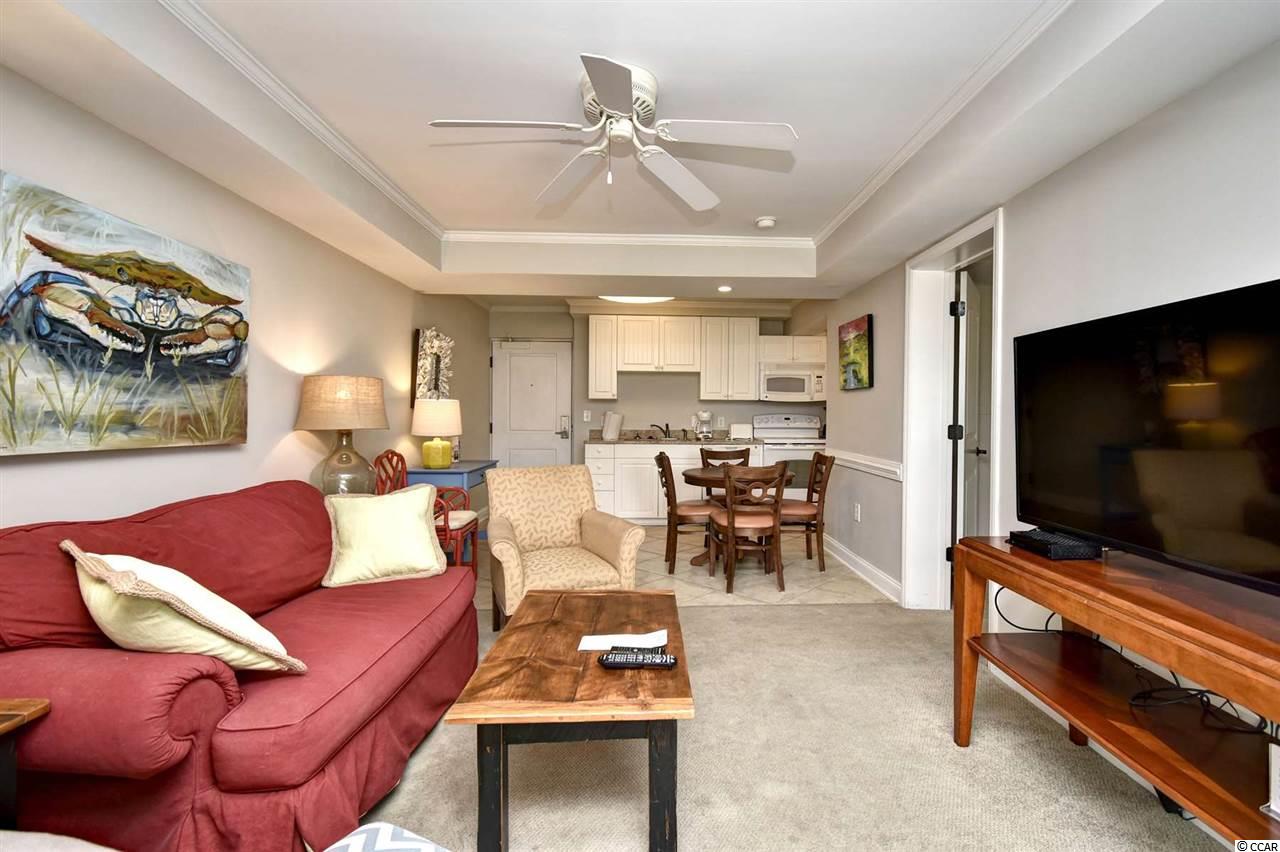 Great rental property or vacation retreat. Immaculate one bedroom, one bath condo with living room, dining area and full kitchen. First floor above parking level, end unit with balcony overlooking the pool and lazy river. Completely furnished with updated and attractive furnishings: Two queen beds, sleeper sofa in living room, two large screen TV's, recycled wood coffee and end tables, original oil painting over sofa; two other original paintings (Charleston artist) and decorative oyster shell mirror. Conveniently located to 1st floor elevator and washer/dryer room (only one washer/dryer room for 4 buildings). Amenities include large outdoor pool with lazy river, hot tub/spa, private beachfront access with restrooms and large deck with ocean views, tennis, fishing, crabbing and kayak launching dock and biking/walking paths. Restaurant, coffee shop and spa are adjacent to the building. Walk to the beach or take the complimentary shuttle which runs from the pool area to the beach every twenty minutes during the summer months. Close to all area attractions, shopping, dining, golf and entertainment.