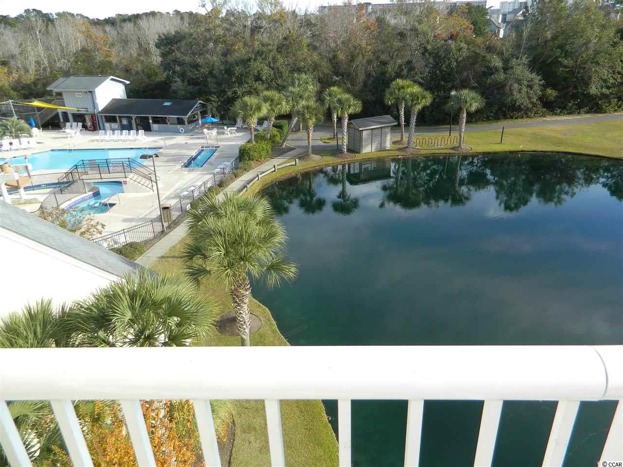 Enjoy the beautiful serene lake view from your 4th floor, open end balcony in this Summerhouse condo! Great opportunity for a vacation retreat or investment property with rentals.The recently updated interior of this 1 bedroom, 1 full tiled bath condo is beautifully decorated. It has a fully equipped kitchen with granite countertops, full size refrigerator, living room with tray ceiling, crown molding, full sleeper sofa and bedroom with 2 queen beds. Elevator and laundry facilities on site.Amenities include a large outdoor pool with lazy river, hot tub/spa and childrens area adjacent to building. Walk or take the complimentary shuttle to private beach access at Litchfield by the Sea with restrooms and large decks. Resort amenities include tennis court, walking/biking trails, fishing and crabbing docks, kayak launch area. Shopping, dining and golf nearby. Building totally renovated in 2008. New HVAC installed in 2014.