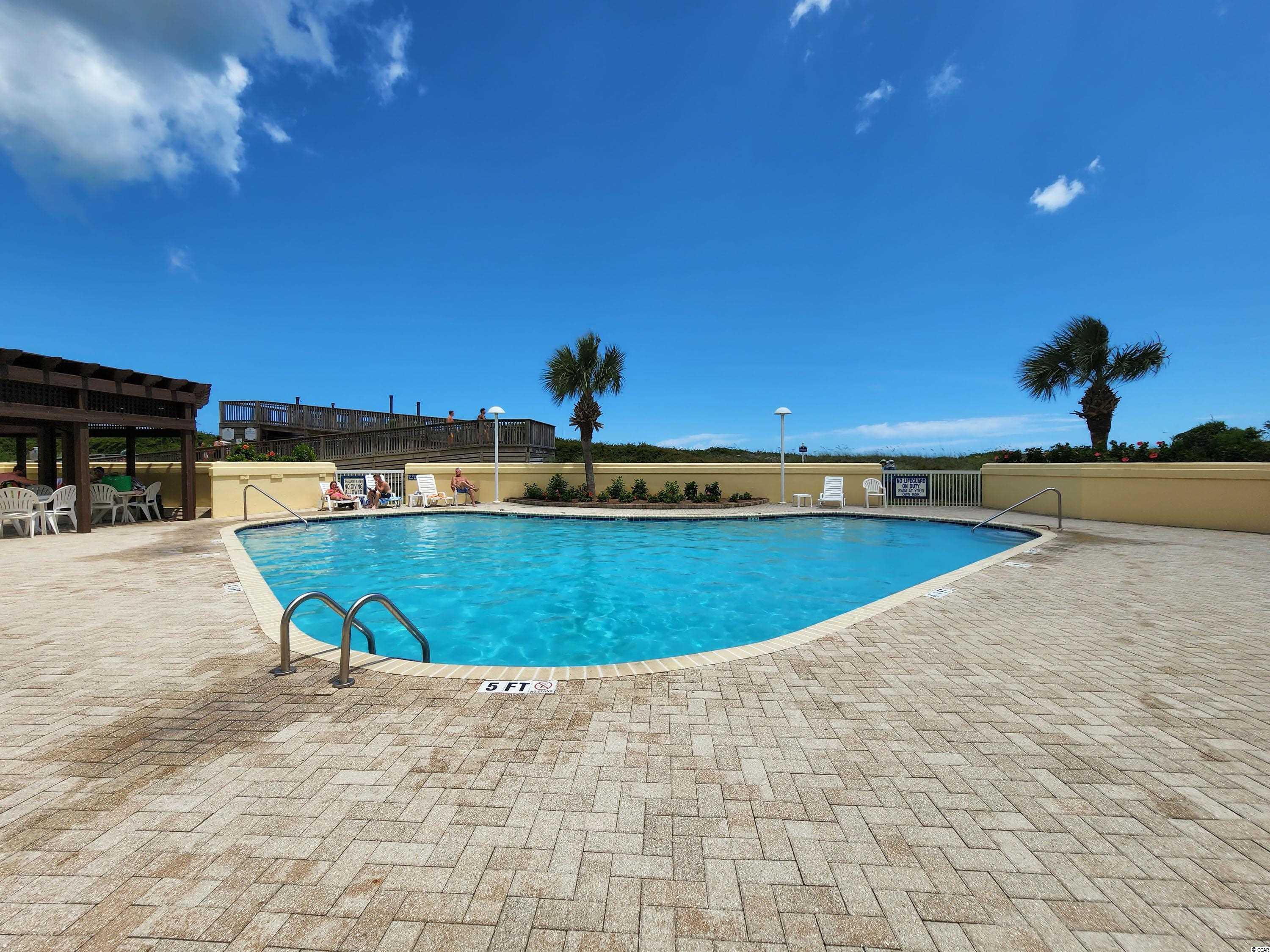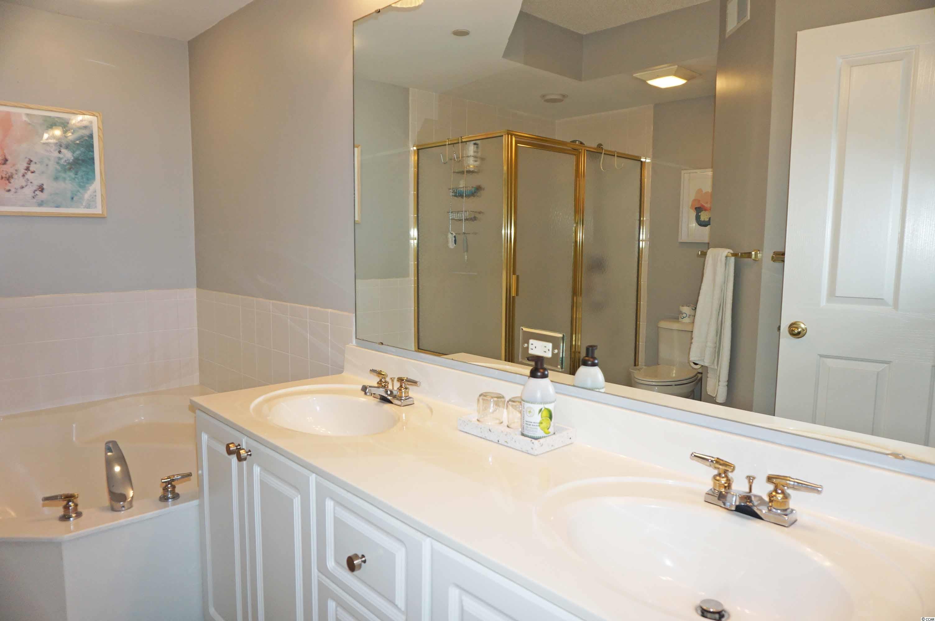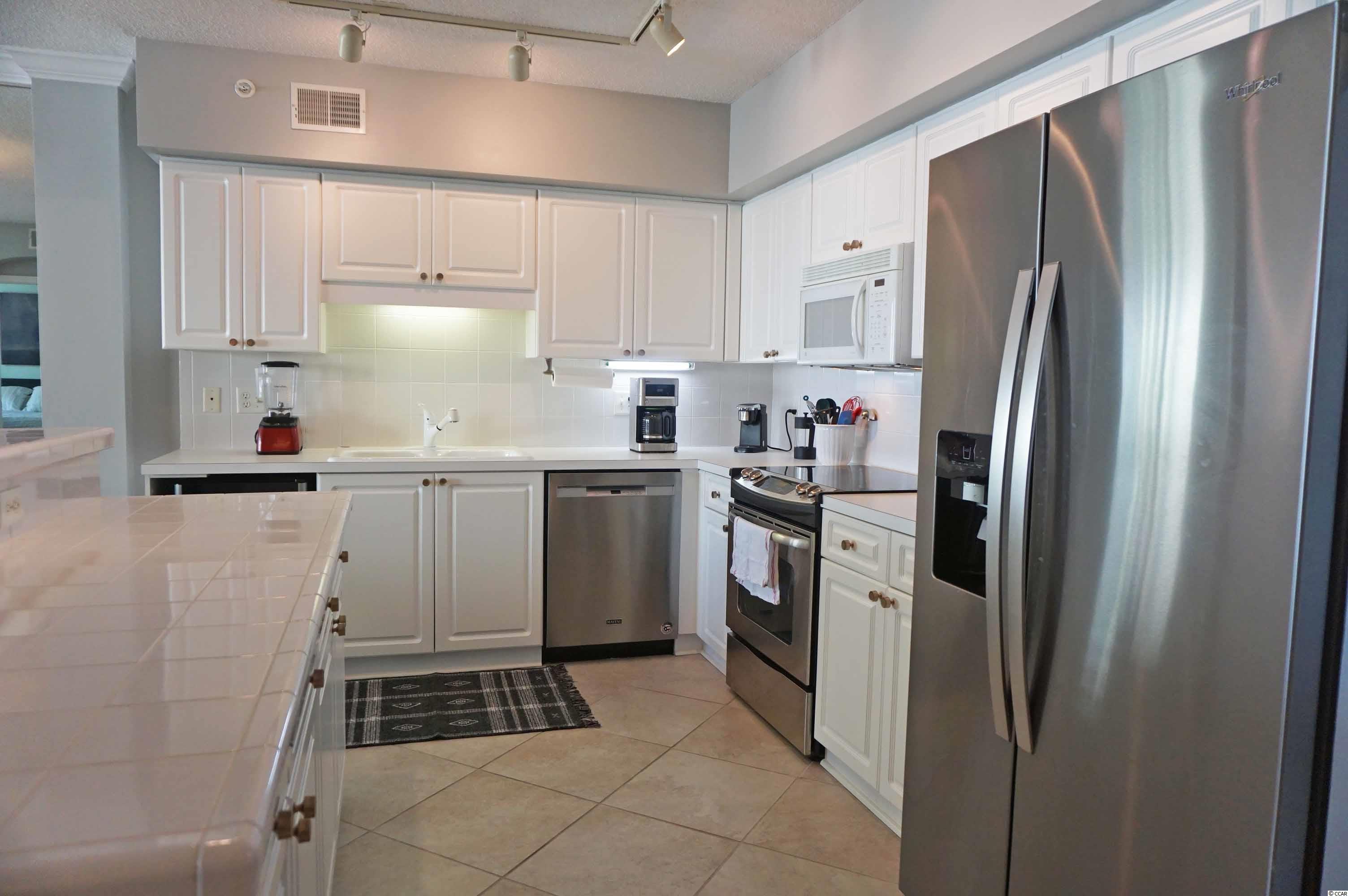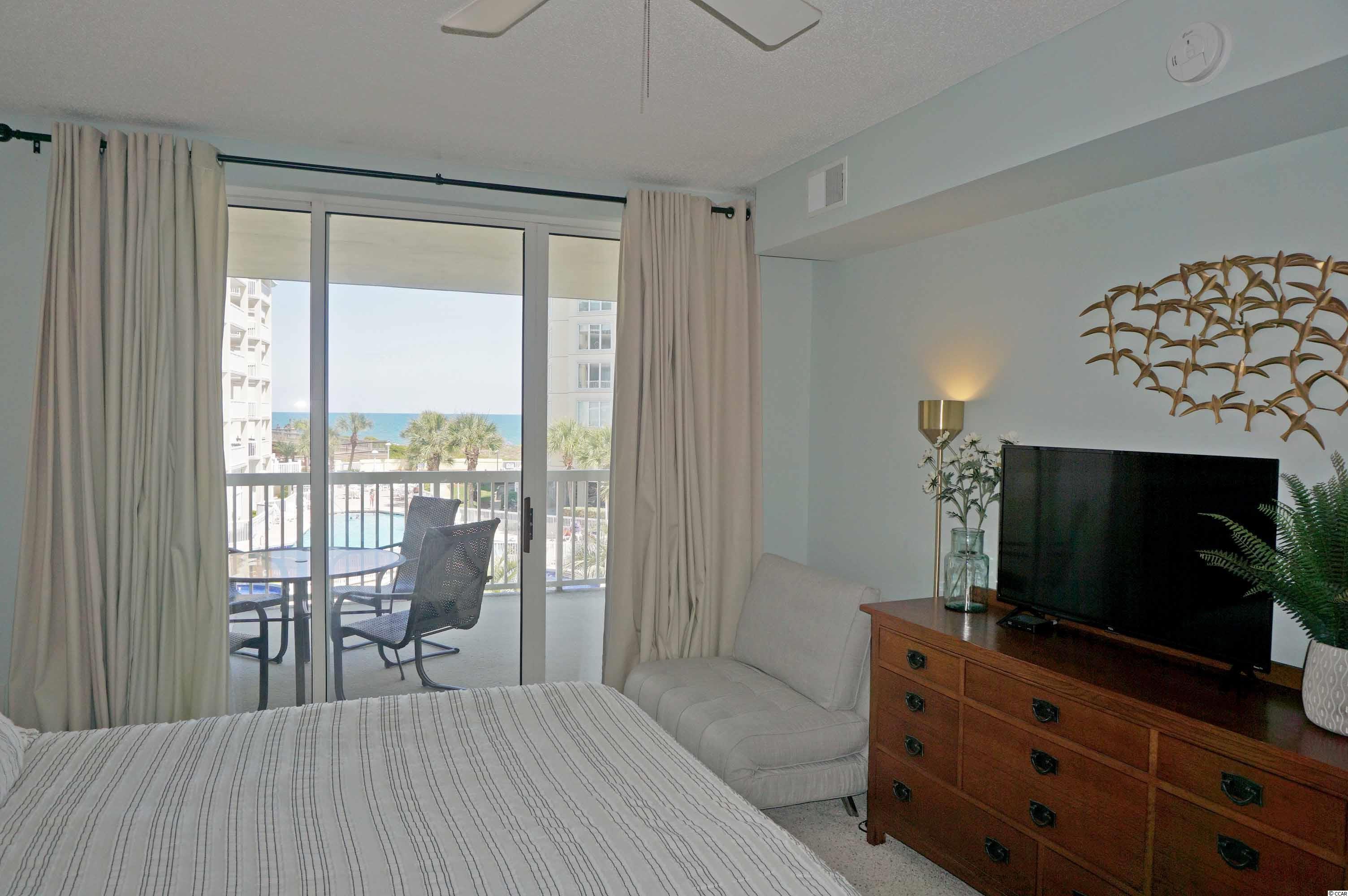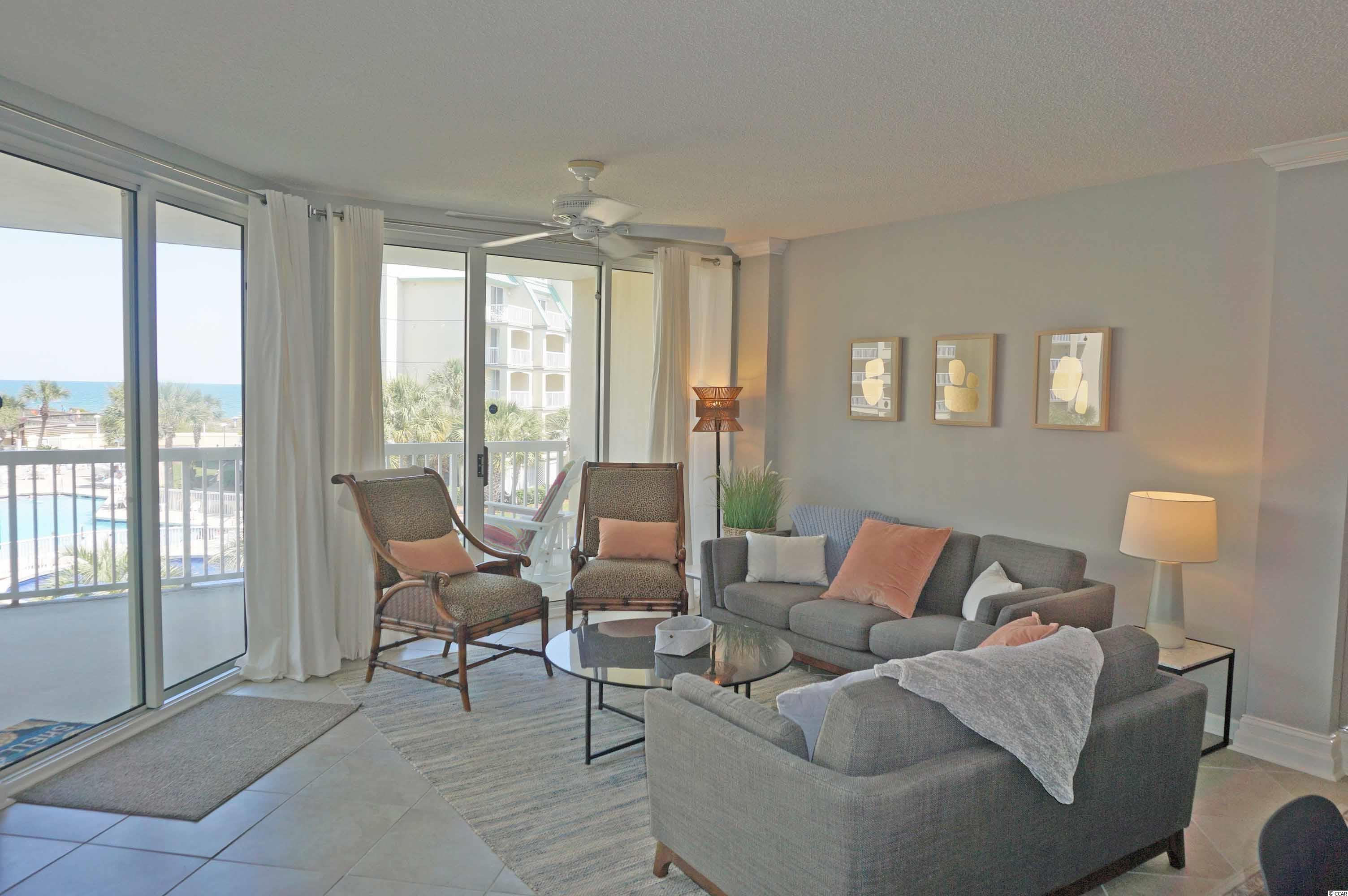 Ocean view at Litchfield by the Sea from this 3 bedrooms, 3 bath condo. Freshly painted, newly furnished and beautifully decorated in 2021 with chic contemporary style furnishings and all new appliances within the last two years. Whitney Parrish 202 is a delightful condo for your beach home or investment property. Designed with an open floor plan, the living area features a wall of glass windows and sliding doors that open to a covered balcony and view of fountains, pool and out to the ocean. The dining area has a table that seats 6 comfortably. Along with seating at the breakfast bar, there is a table with chairs on the balcony for your morning coffee and favorite afternoon snacks and beverages. Bedroom 1 has a king bed, a futon chair, TV and sliding door that opens to the balcony and view. The private bathroom has a vanity with two sinks, a garden tub and walk-in shower. Bedroom 2 has a king bed, and a bath with a tub/shower combination. Bedroom 3 has 2 single beds, a futon chair and bath with a tub/shower combination. Whitney Parrish is part of Somerset community with access to multiple pools and hot tubs. There is ramped access to the beach. Whitney Parrish has assigned, covered parking under the building, a private storage closet for your beach gear, and a lobby with an elevator. Along with Somerset community amenities, Litchfield by the Sea amenities include tennis, miles of beautiful beach, walking/jogging/bike paths, marsh overlook with floating dock, fishing lake with bulkhead pier, 24 hour security gate.