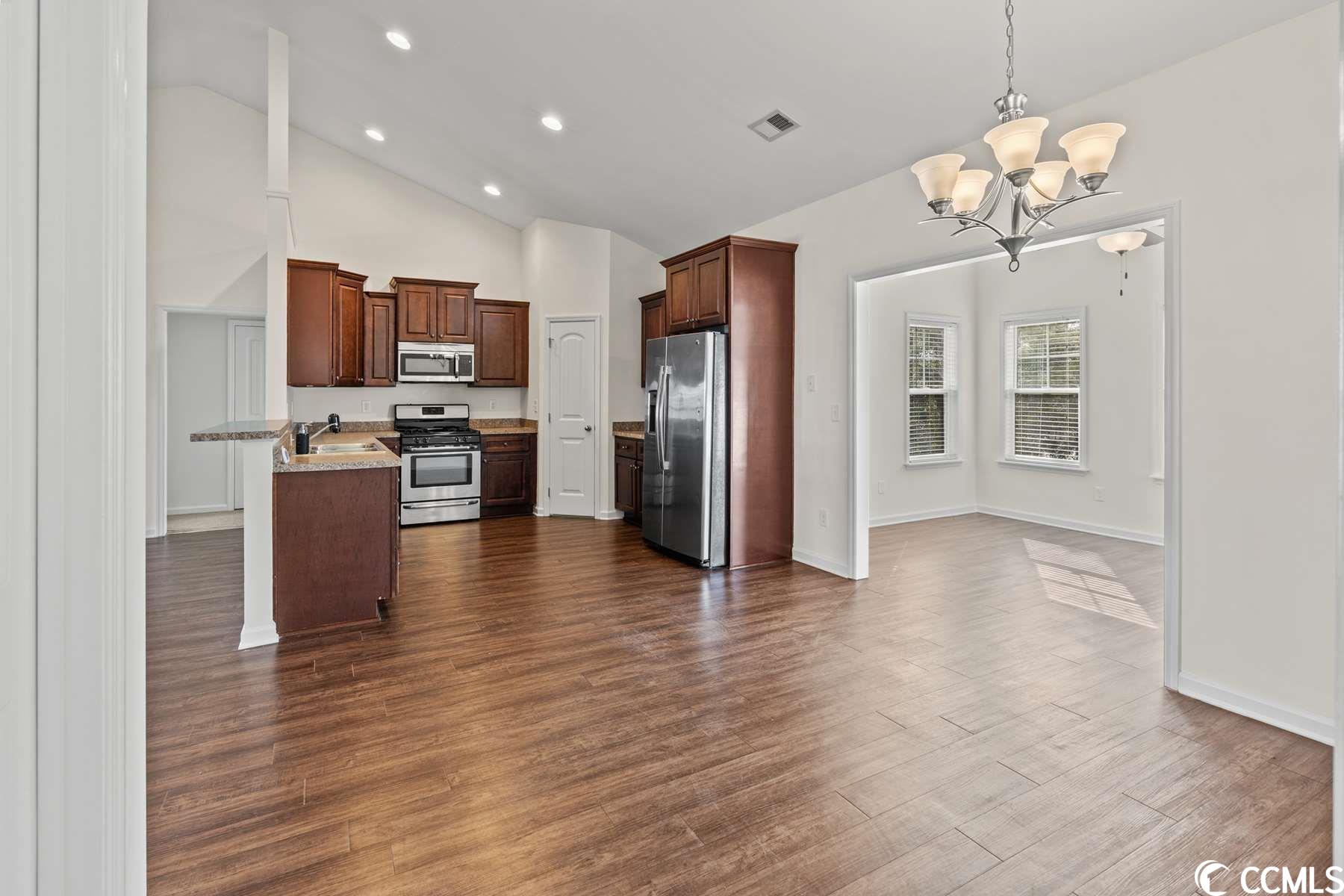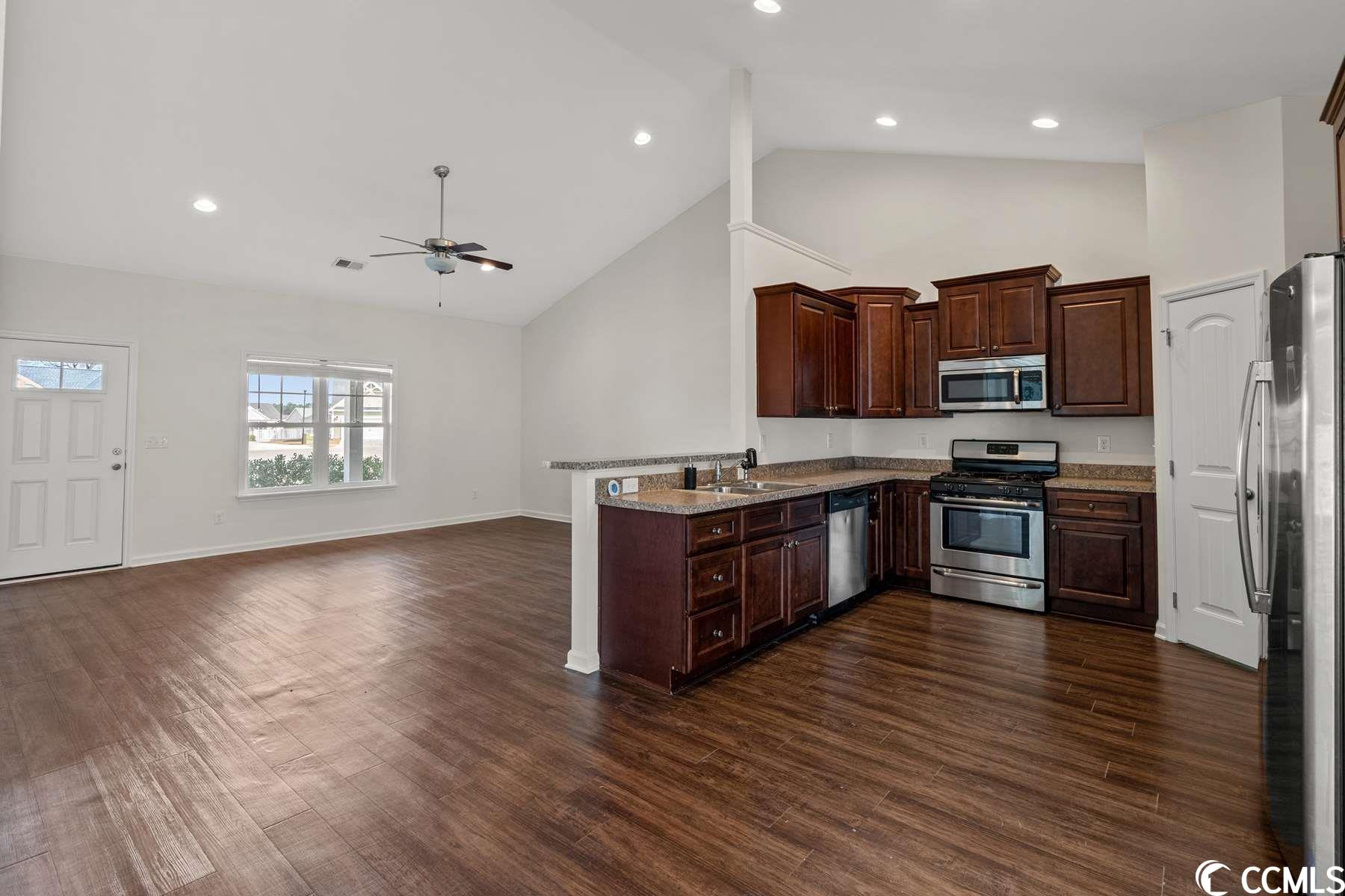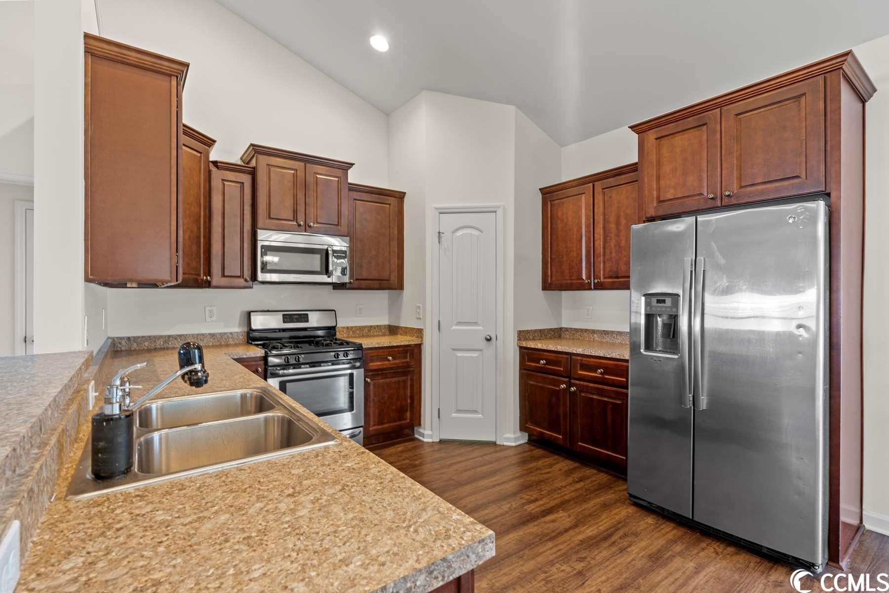 Welcome home to this move-in or rental-ready 3 bedroom, 2 bathroom home in the quiet community, Tiger Grand, located in the heart of Conway. This home features tall vaulted ceilings and updated LVP flooring throughout the main living areas. The kitchen is equipped with all stainless steel appliances, plenty of cabinet and counter space, a pantry for extra storage, and a dining area with room for the whole family. A Carolina room just off the kitchen and dining areas would make the perfect office, play room, or additional living area. Each bedroom includes a ceiling fan, plenty of closet space, and easy access to a bathroom, while the master also includes a tray ceiling, walk in closet, double sink vanities, and a walk in shower! Enjoy afternoons relaxing on your back patio with a view of the pond, or at the many attractions close by. Tiger Grand is perfectly situated close to schools, grocery, and all of the Grand Strand's finest dining, shopping, golf, and entertainment attractions. You won't want to miss this. Schedule your showing today!
