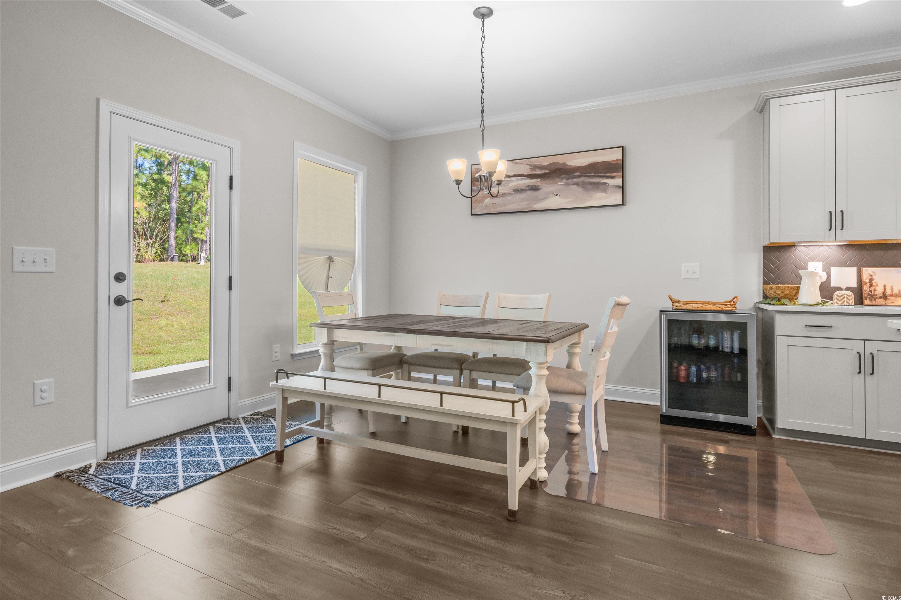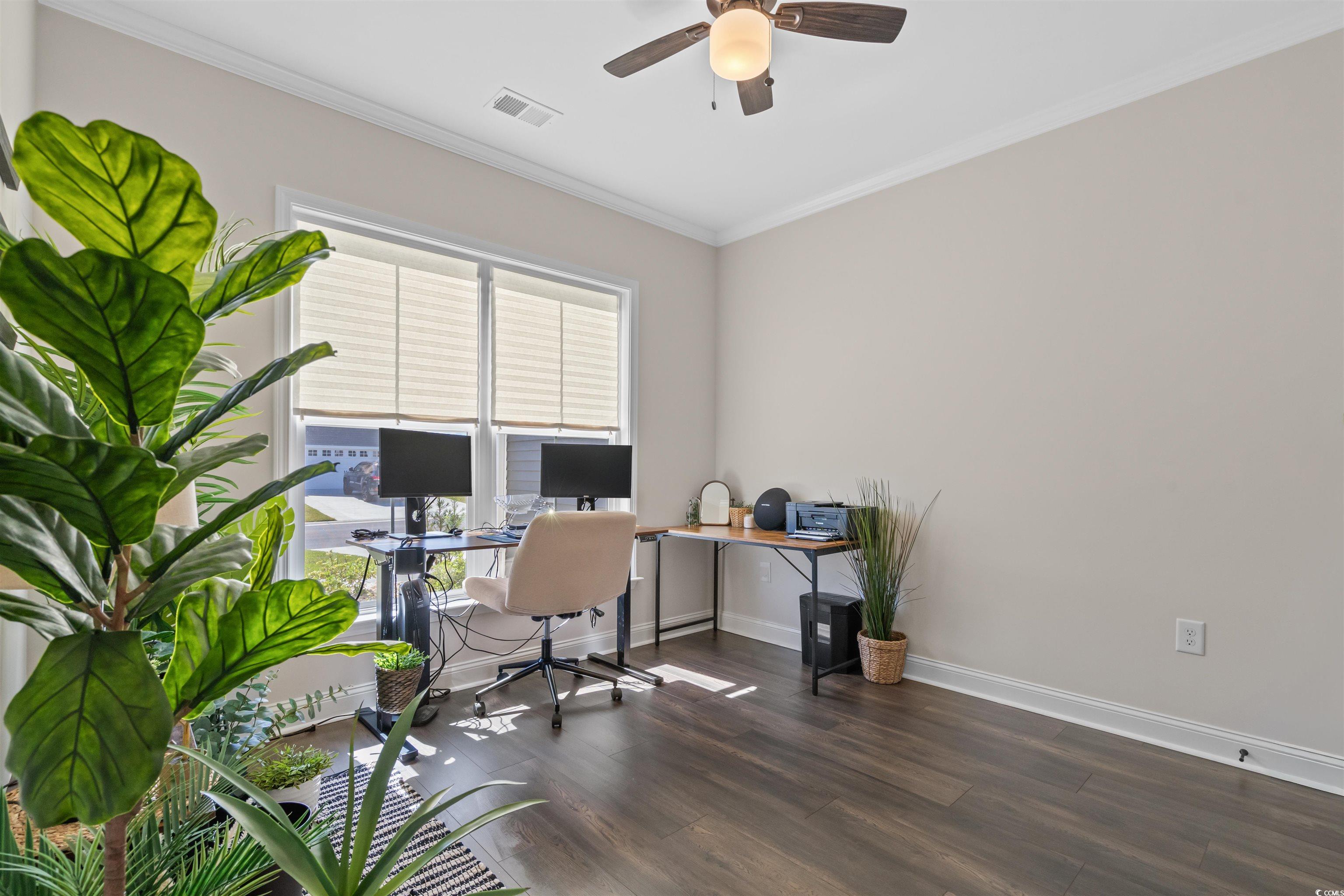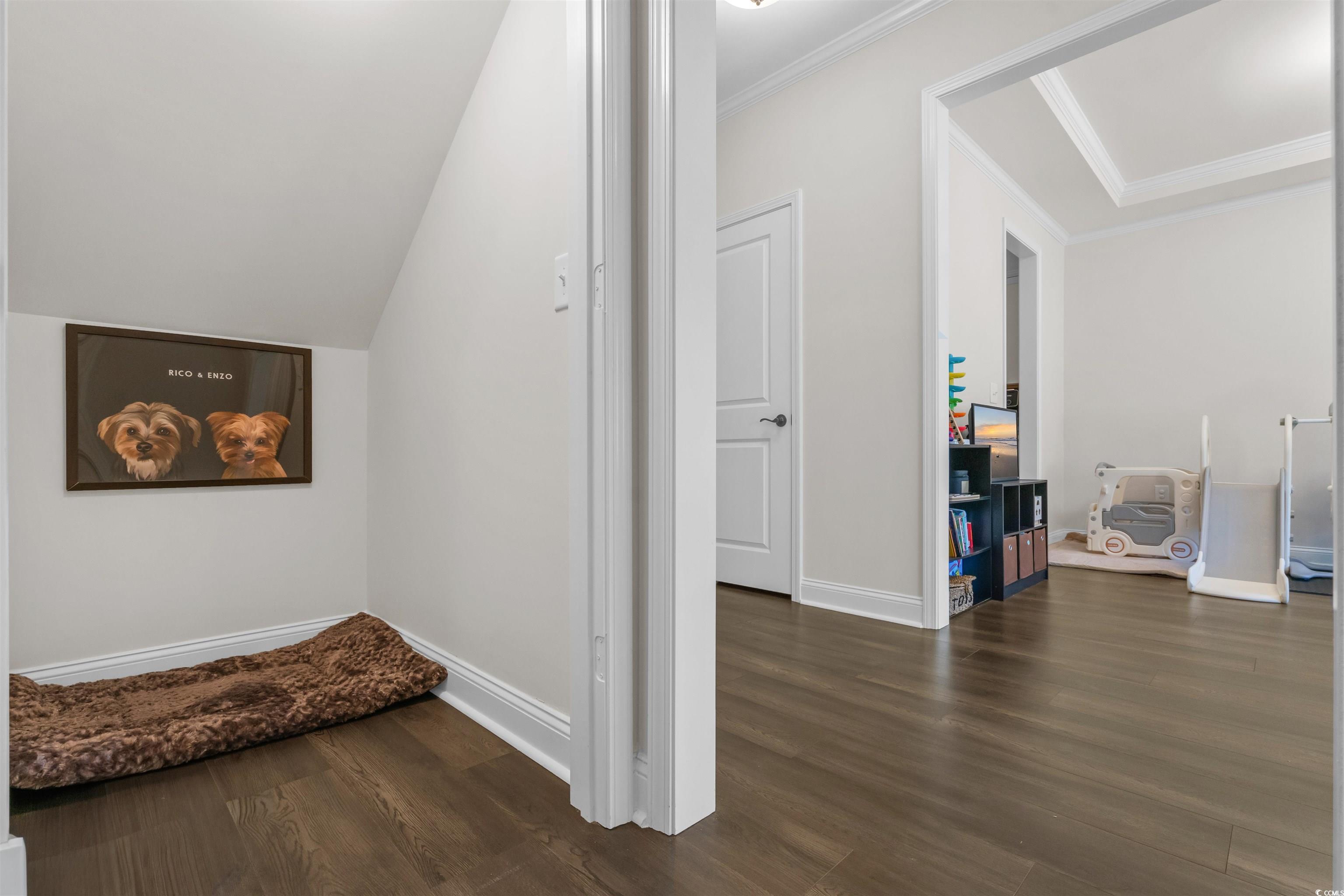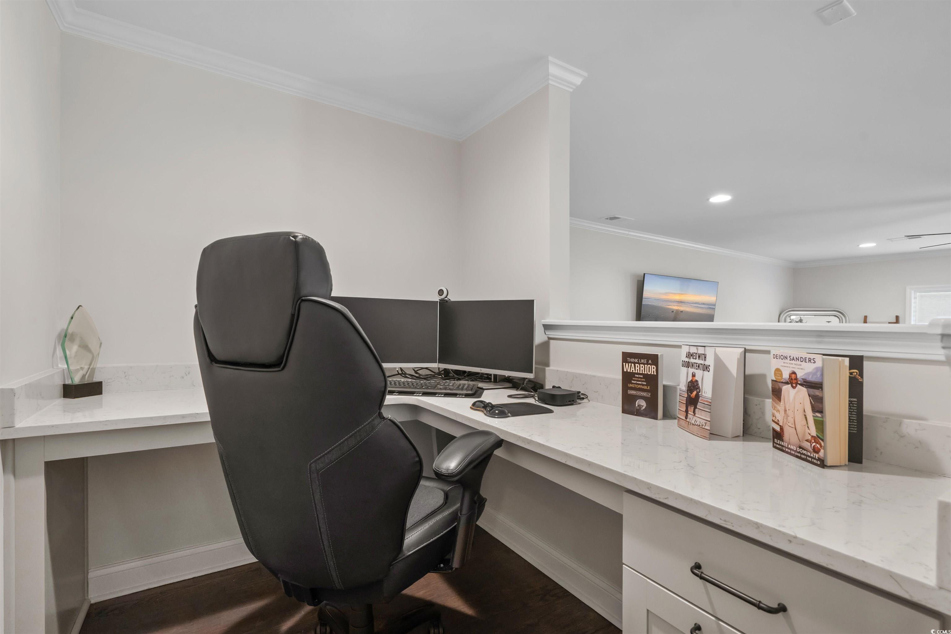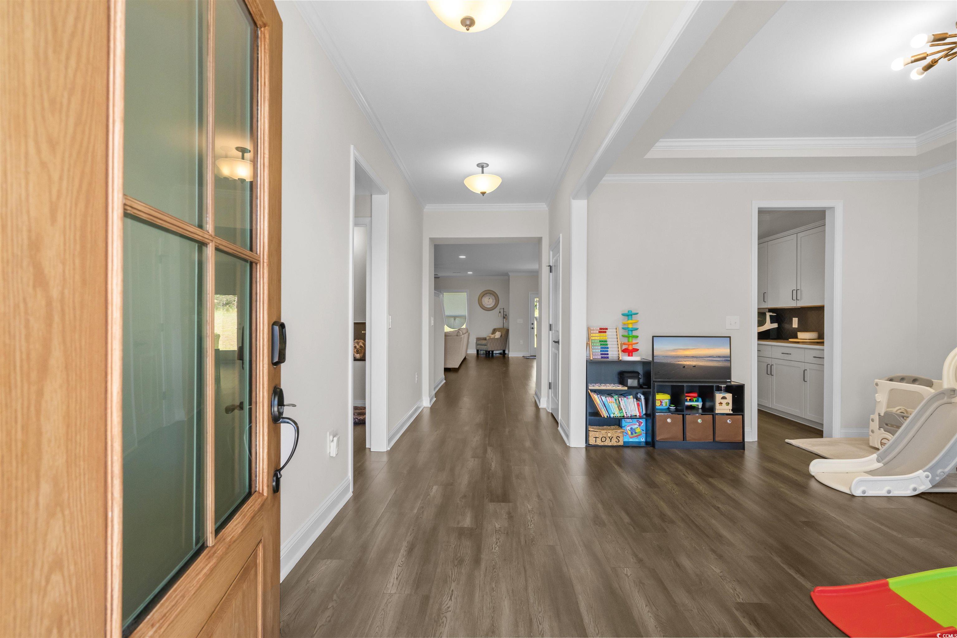 Welcome to this remarkable 4-bedroom, 3.5-bathroom home located in the highly desirable Berkshire Forest community in Carolina Forest! Boasting a spacious and thoughtfully designed layout, this home offers comfort, functionality, and elegant details throughout. As you arrive, youll be greeted by beautiful landscaping and a charming front porch, perfect for enjoying quiet mornings. Step inside to find a formal dining room with elegant tray ceilings to your rightcurrently used as a playroomand a private office with a stylish glass door to your left. The heart of the home is the chef-inspired kitchen, fully equipped with stainless steel appliances, a work island, an expansive walk-in pantry, and abundant cabinet spacea true dream for any culinary enthusiast! The master suite is a serene retreat, featuring tray ceilings, a double-sink vanity, walk-in shower, garden tub, and a massive walk-in closet. Upstairs, you'll find a spacious loft-style living area, a second office/flex space, and three additional bedrooms. Step out onto the second-story balcony overlooking the front yarda perfect spot to unwind. The yard includes a new irrigation system to make lawn care effortless. But the home is just the beginningBerkshire Forest offers resort-style amenities including: multiple community pools, clubhouse & recreation center, tennis courts, playground, fitness center, and a scenic lake with walking trails for peaceful strolls and relaxation! This is more than just a homeit's a lifestyle. Dont miss your chance to be part of this vibrant and welcoming community. Schedule your showing today!