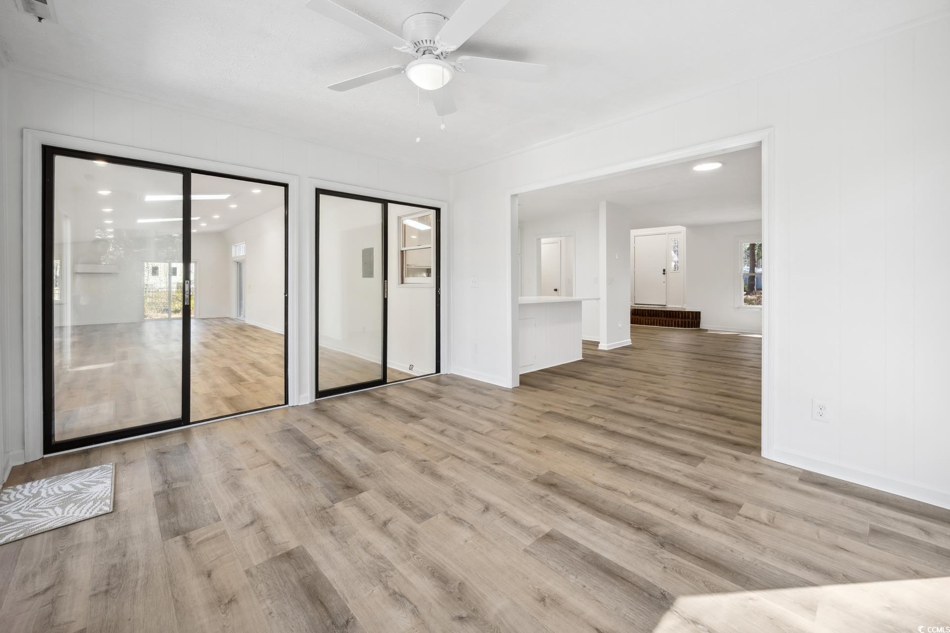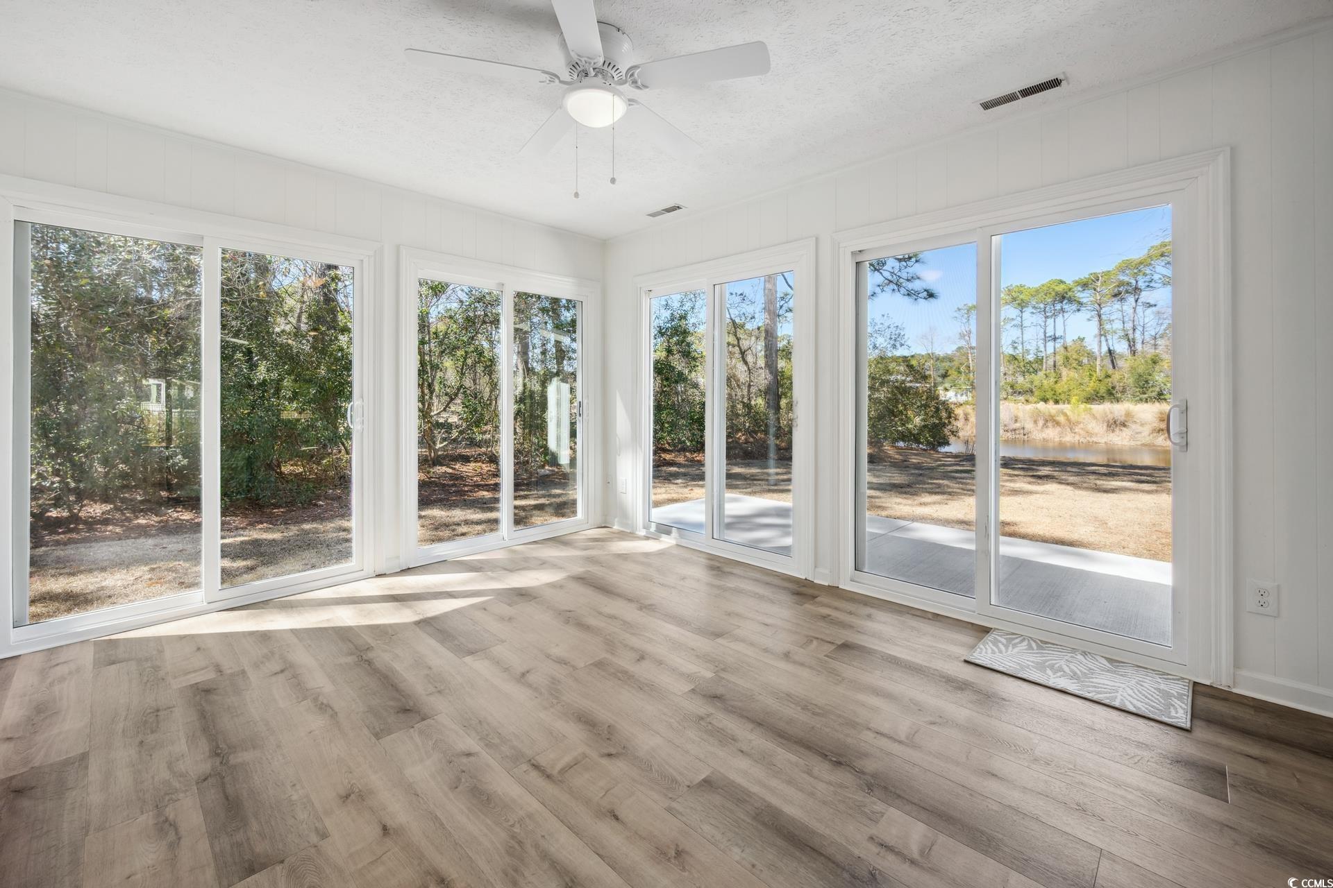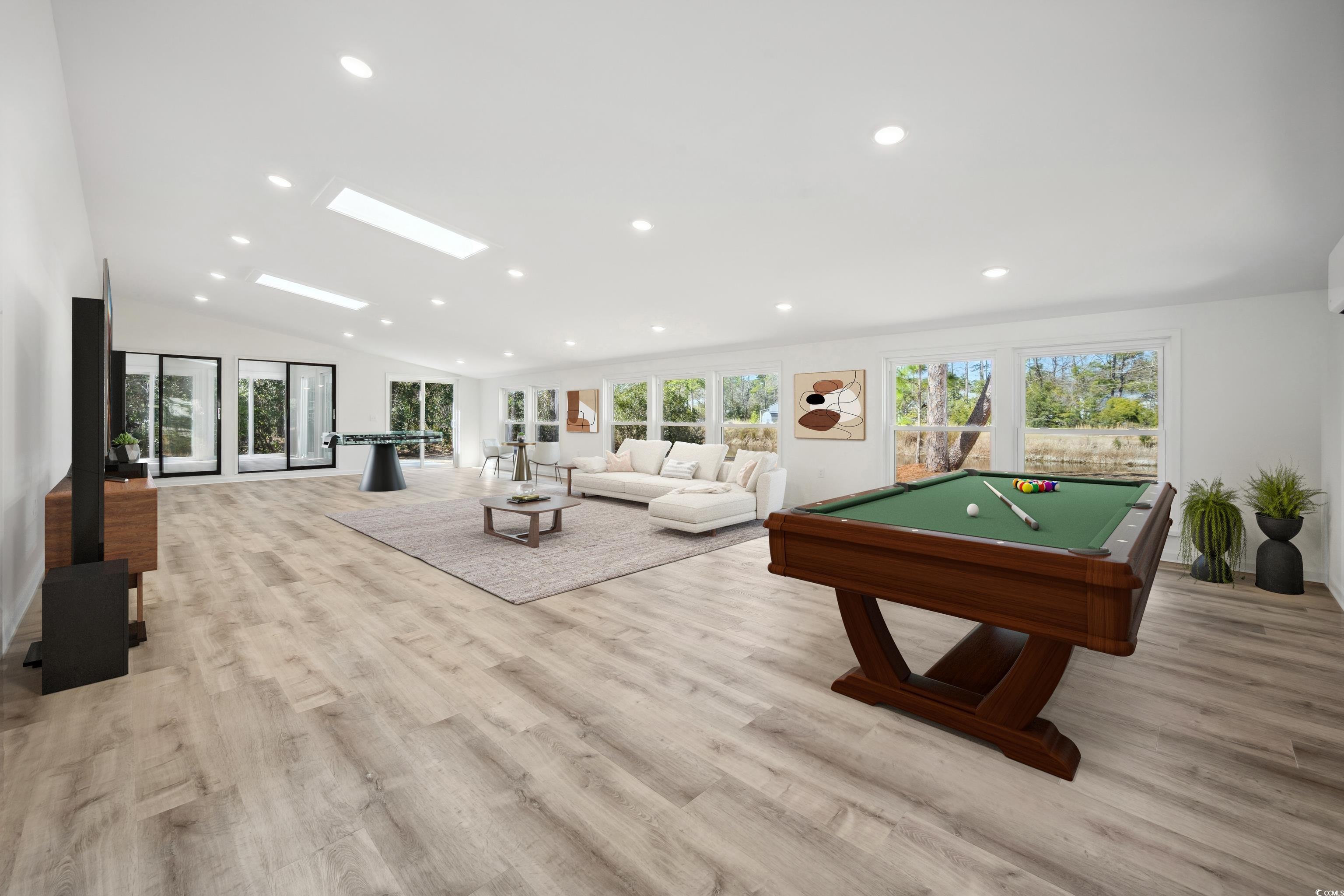 Discover this Mid-Century Modern feeling home in Hagley Estates, now available under five hundred fifty thousand. With a range of recent upgrades, this residence features a brand-new metal roof, new HVAC systems, new windows, sliding glass doors, and beautiful luxury vinyl plank flooring. The expansive 800 square foot Carolina Room overlooks a tranquil pond, providing a wonderful space to relax and unwind. Weve included staged photos to help you visualize the potential of this unique area. The layout includes the primary bedroom and bath on the first floor, while two additional bedrooms upstairs share a well appointed bathroom with dual vanities, perfect for family living. Set in the welcoming community with a voluntary HOA, this home is conveniently located near the Waccamaw River, Hagley Boat Landing, and the stunning beaches of Pawleys Island. Local shops and restaurants are just a short drive away, making it easy to enjoy the best of the area. This property offers a fantastic opportunity for those seeking a cozy family home or a potential investment in one of Pawleys Island's desirable neighborhoods. Dont miss your chance to make it your own!