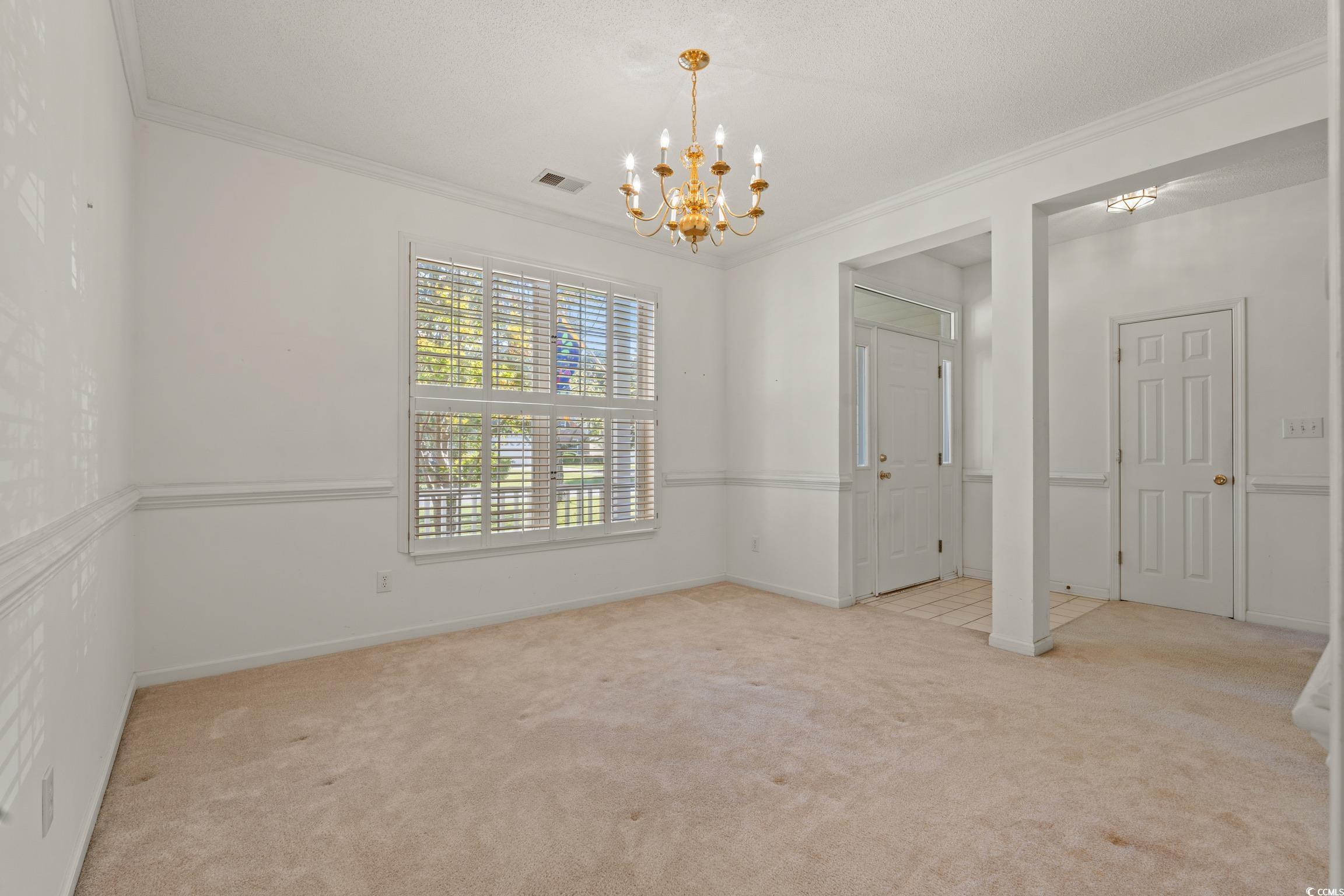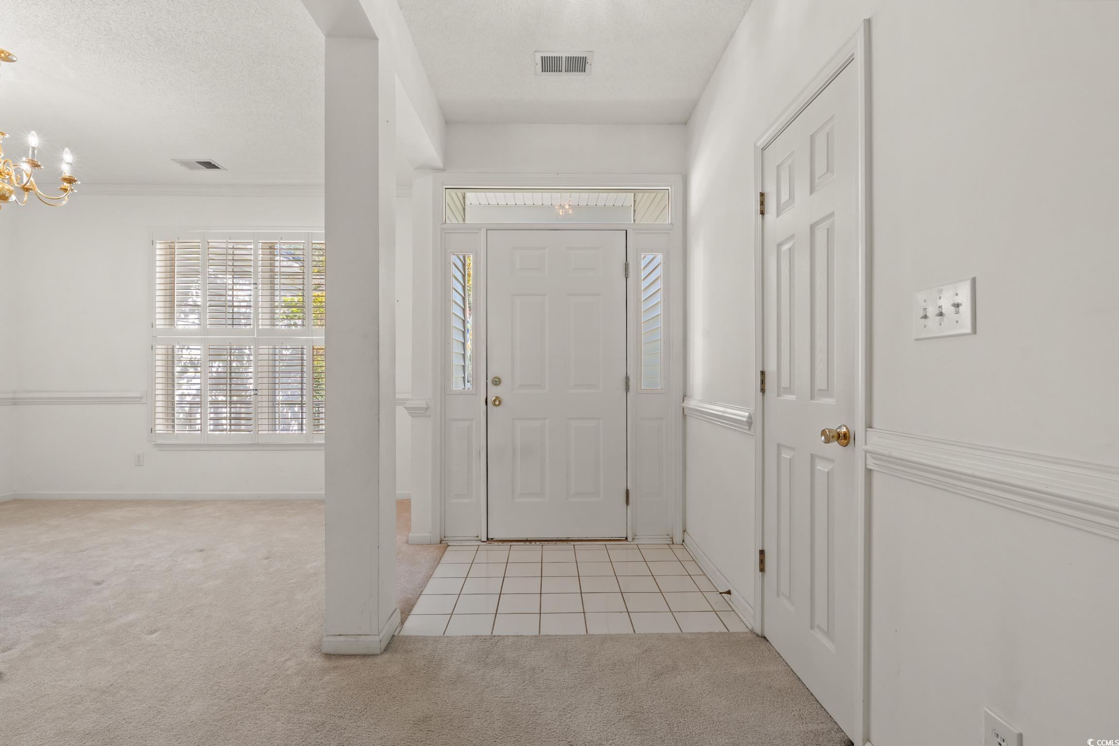 This spacious single-level ranch home in the desirable Indigo Creek community of Murrells Inlet is full of potential. Overlooking the 16th fairway, this 3-bedroom, 2-bath property offers a split-bedroom layout, a vaulted living room ceiling that opens up the main living space, a formal dining room, and an enclosed Carolina room with tranquil views of the golf course and lots of natural light. The primary suite is generously sized, with vaulted ceiling and ample room for a sitting area in addition to bedroom furnishings. The home also features an attached two-car garage and a newer hot water heater (replaced in November 2022). While being sold AS-IS and in need of updating, the solid structure and functional floor plan provide an excellent foundation for personalization and improvements. Whether youre seeking a primary residence, vacation home, or investment property, this is a rare chance to create your own vision in a well-established golf course community close to many attractions along the Grand Strand.