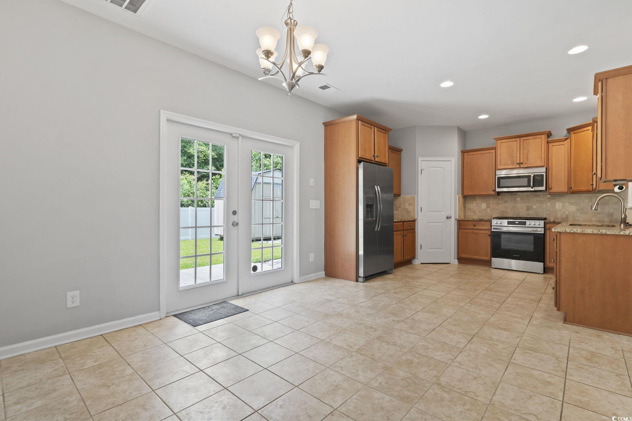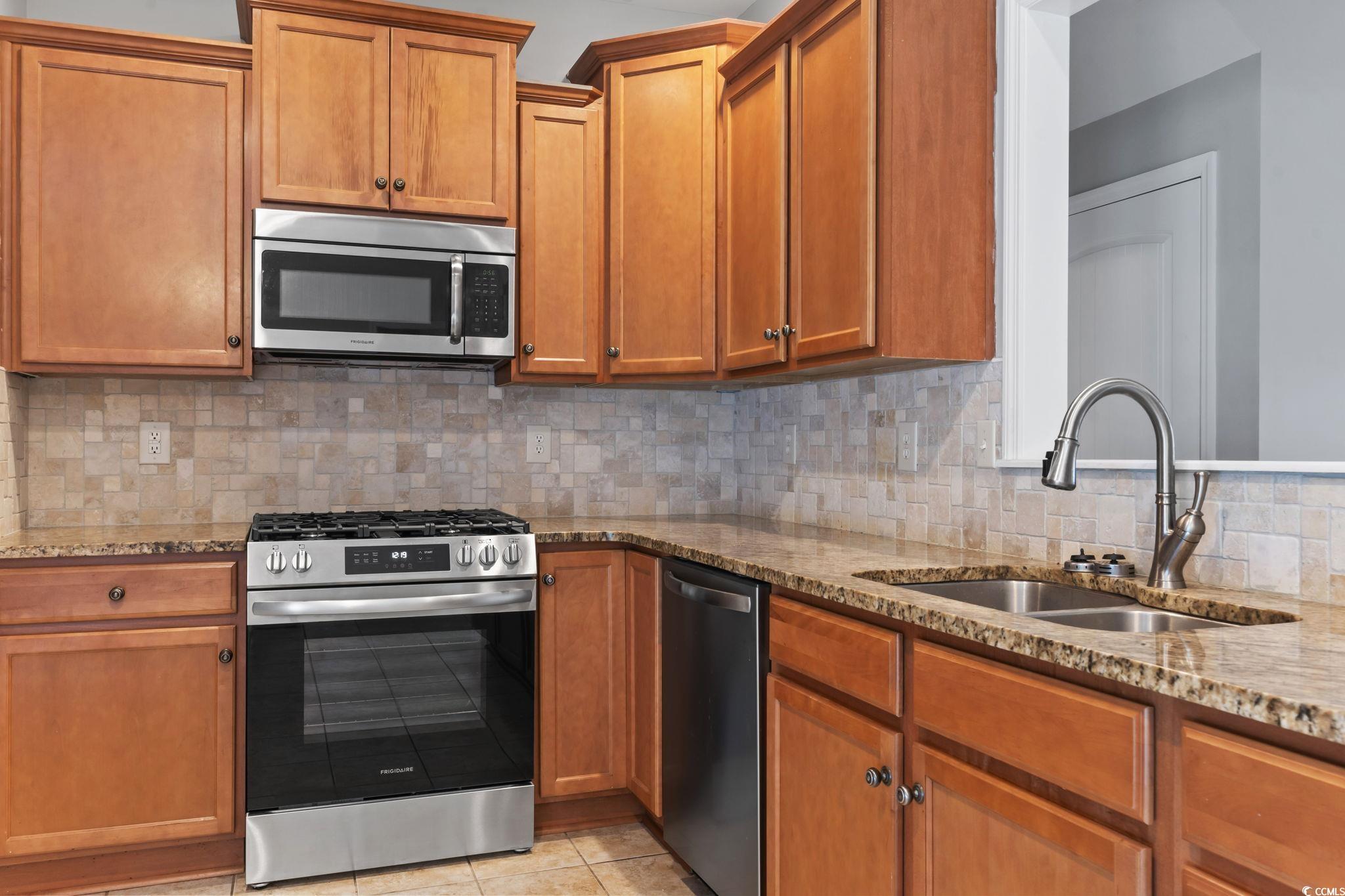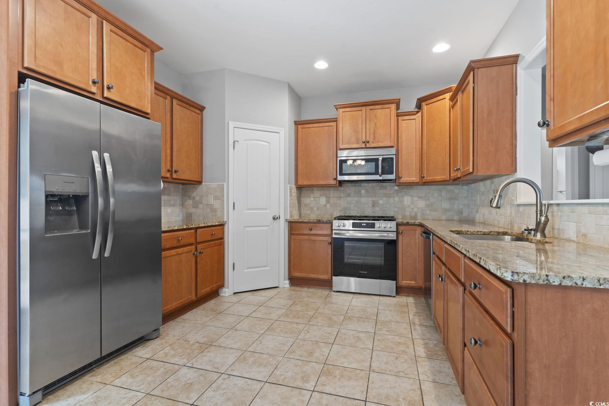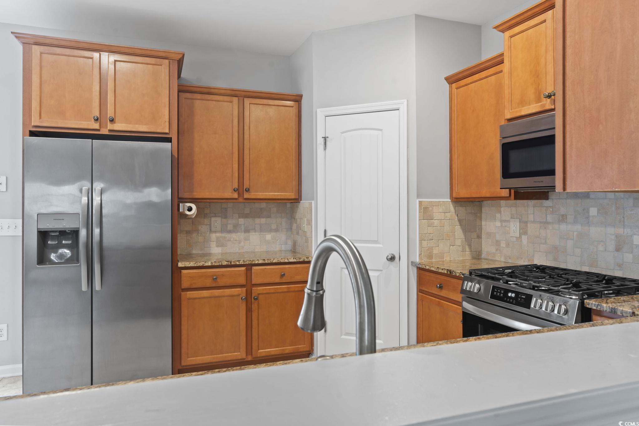 Upgraded 5BR Home with Private Wooded Backyard One of the Most Secluded Lots in Rivertown Row Welcome to one of Rivertown Rows most private retreats a 5-bedroom, 3-bath home that backs directly to wooded land with no rear neighbors, offering over 2,200 heated sq ft of thoughtfully upgraded living space just minutes from historic downtown Conway. Inside, the open-concept layout is filled with natural light and designed for flexible living. The kitchen blends style and function with honey-oak cabinetry, Venetian gold granite countertops, a travertine tile backsplash, and brand-new Frigidaire stainless steel appliances ideal for everything from casual meals to weekend gatherings. The main-level primary suite offers comfort and privacy with a walk-in closet, dual sinks, fiberglass shower, and built-in linen storage. Two more bedrooms and a full bath complete the first floor, while upstairs youll find two additional bedrooms, a third full bath, and a spacious 21x13 bonus room perfect for a home office, guest suite, gym, or media room. Step outside to a peaceful, fenced backyard framed by trees and protected land. Sip coffee on the patio, store your gear in the 10x10 shed, and take advantage of dual side gates for easy access to yard tools, kayaks, or outdoor toys. Upgrades include waterproof London Sky Oak LVP flooring, fresh paint throughout, a Rinnai tankless water heater, solar panels, and efficient natural gas service all adding comfort, savings, and long-term value. Rivertown Row offers scenic walking trails, tranquil ponds, and sidewalks all close to Conways riverfront restaurants, coffee shops, and boutiques, with Myrtle Beach just a short drive away. If youve been searching for space, seclusion, and move-in-ready style youll find it here. (Listing Agent is Owner | Some photos virtually staged)